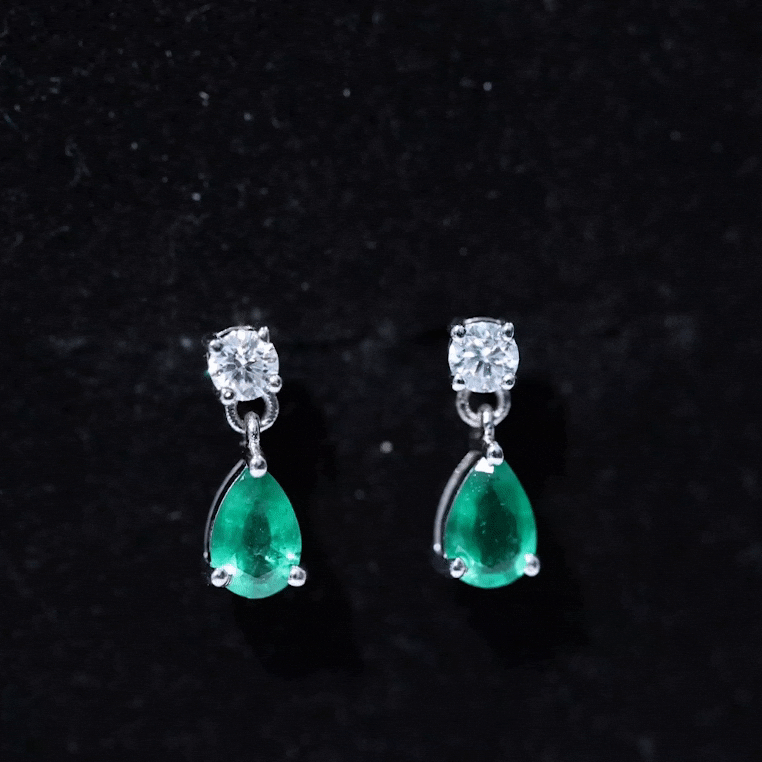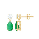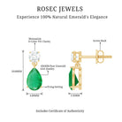 Natural Emerald and Moissanite Bridal Teardrop Earrings