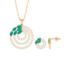 Natural Emerald and Moissanite Cocktail jewelry Set in Gold