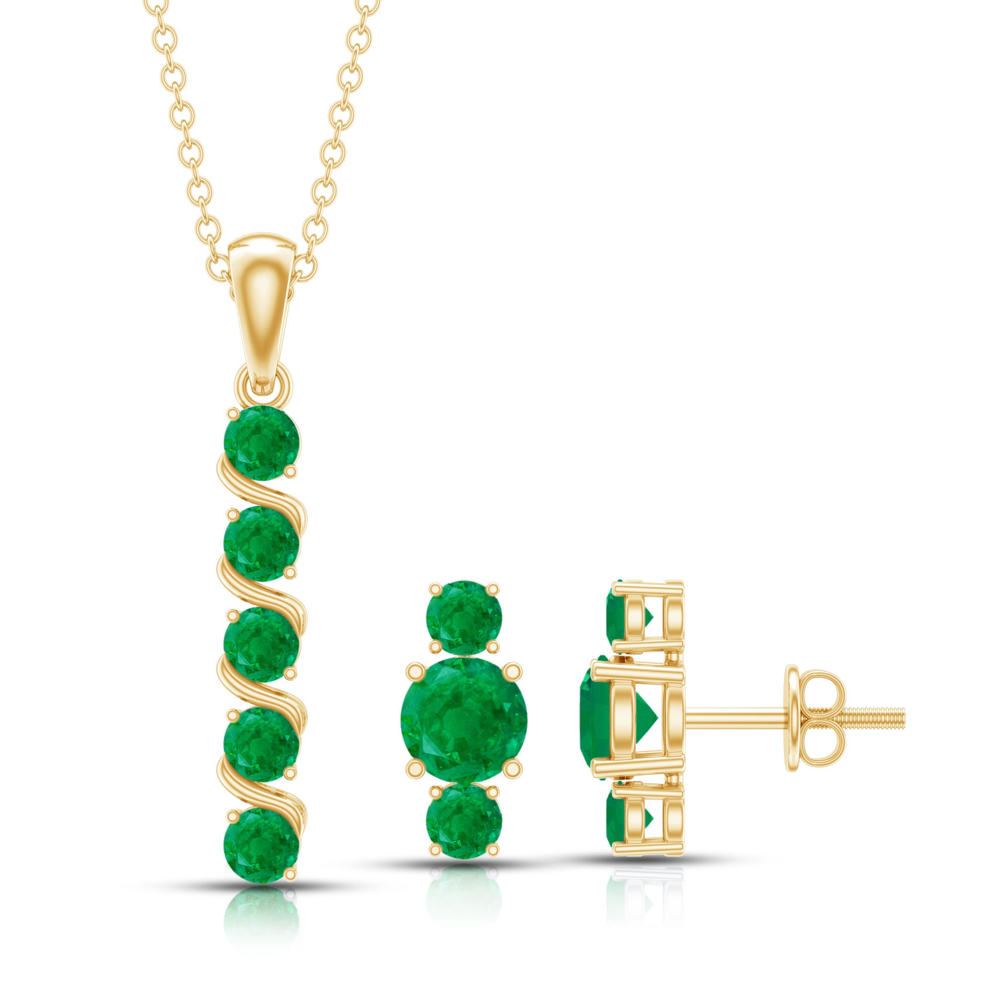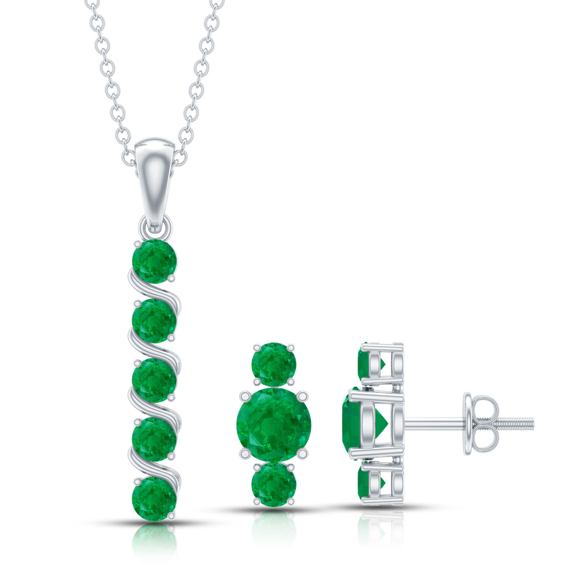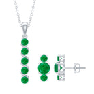 Natural Emerald Bar Pendant Necklace and Stud Earring Set