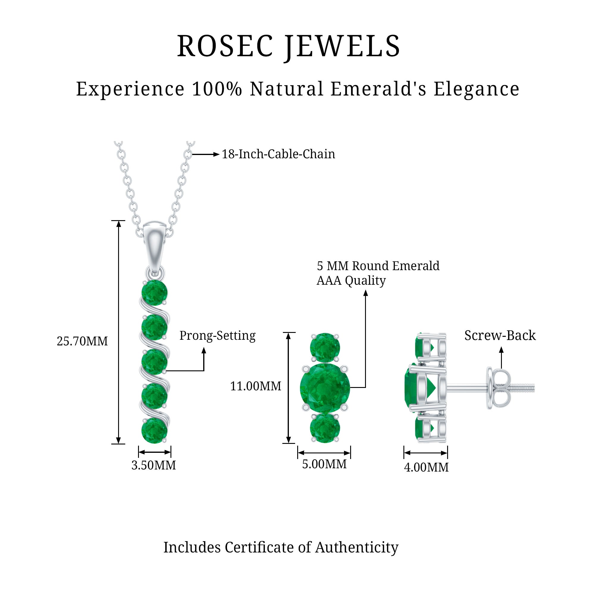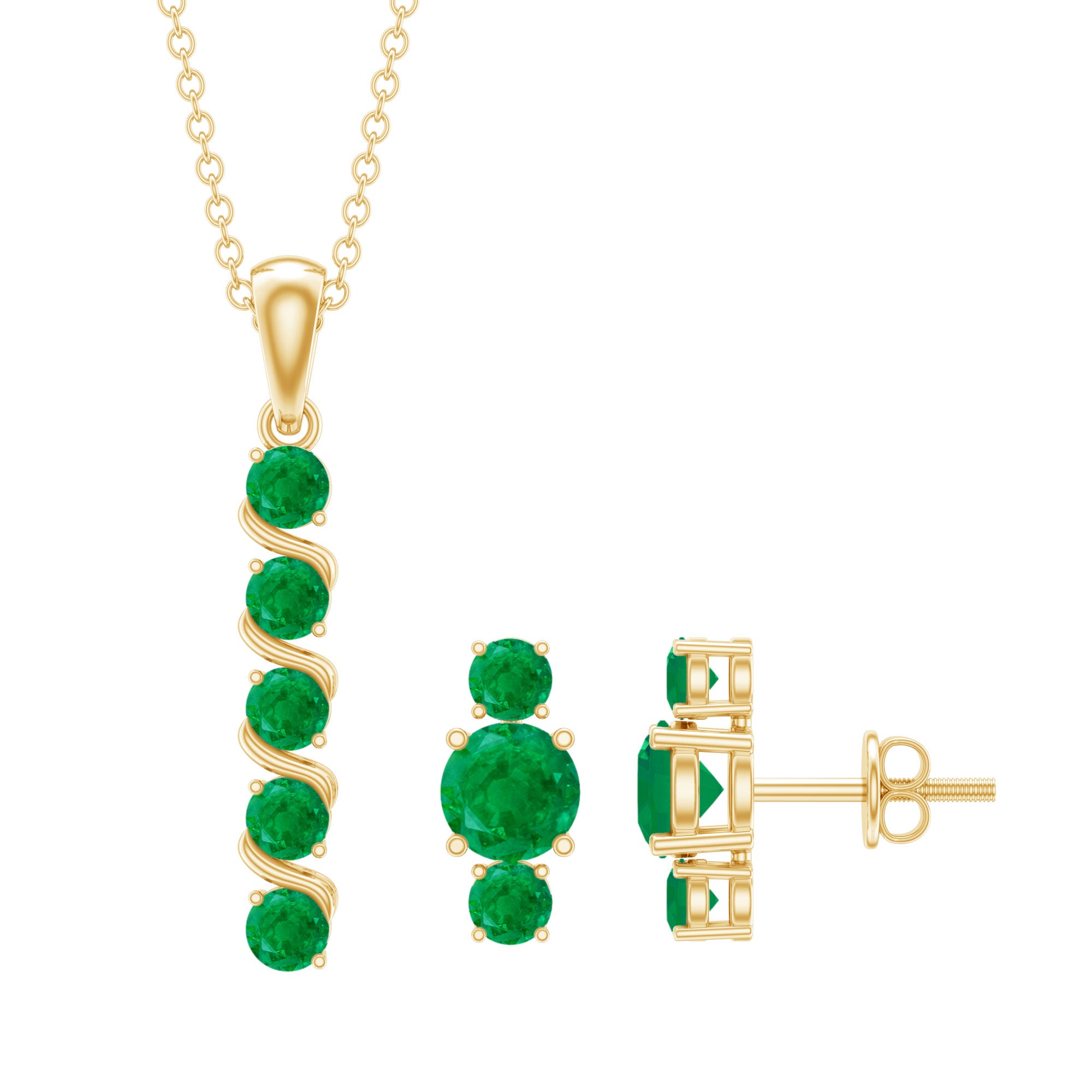 Dazzle around in this Bar Jewelry Set studded with Round Shape Emerald a perfect gift for ladies born in the month of may as this Pendant Earring Set is embellished with May Birthstone.