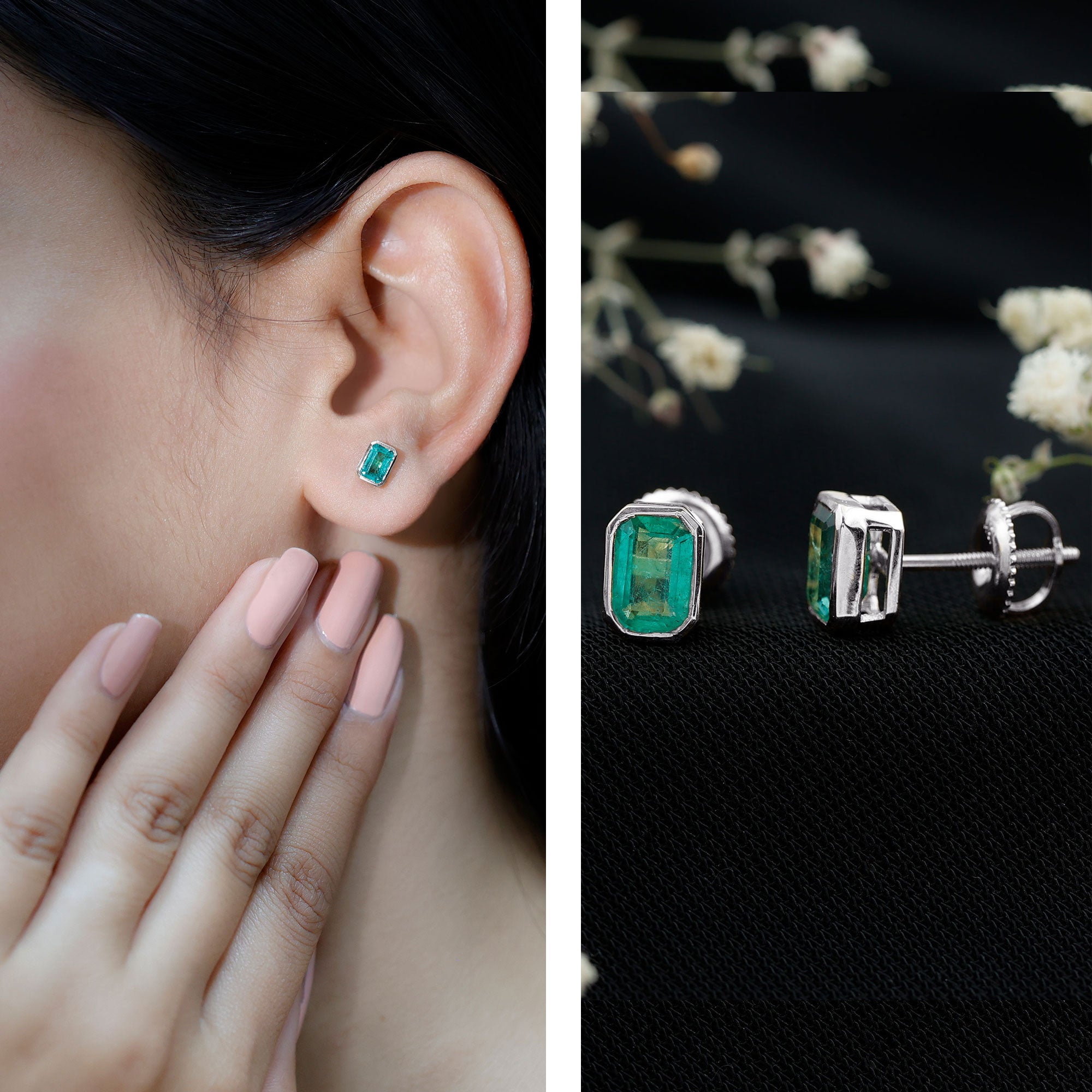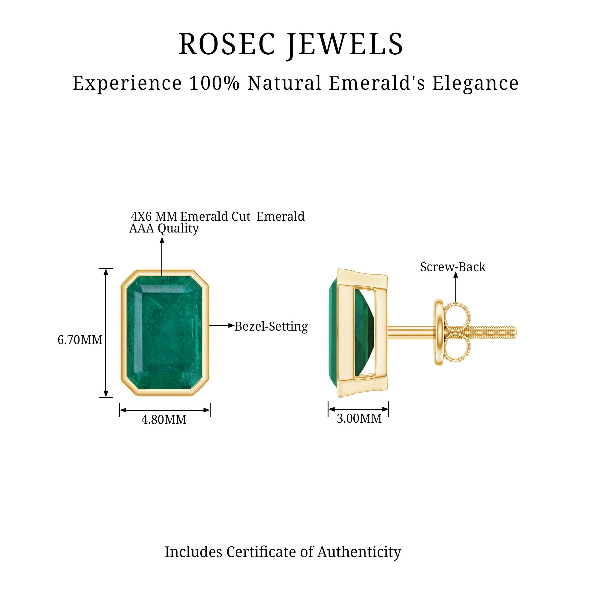 Add a hint of calmness to your look with these Green Emerald Stud Earrings. These May Birthstone Earrings feature a 4X6 MM emerald cut natural emerald securely placed in bezel setting. These Solitaire Earrings invoke love, loyalty, wisdom, healing, protection, and even wealth and prosperity. They dazzle with the classic shine of AAA Quality Emerald, which makes them perfect to complete the look for a special event. These Emerald Cut Emerald Earrings can be an ideal gift option for the May-borns. Style them regularly to add a pop of color to your everyday fits or take compliments by wearing them on special occasion, these Earrings with Screw on Backs surely take your look to the next level. Delivered to you in a premium quality jewelry box, ensuring secure storage when not in use, with a certificate of authenticity.