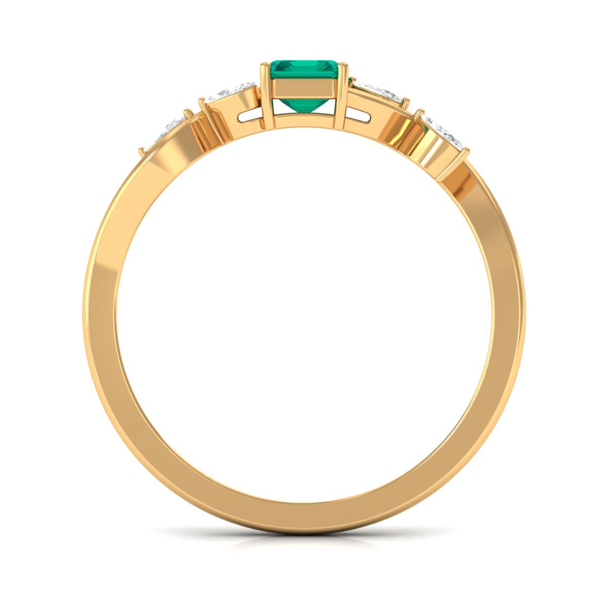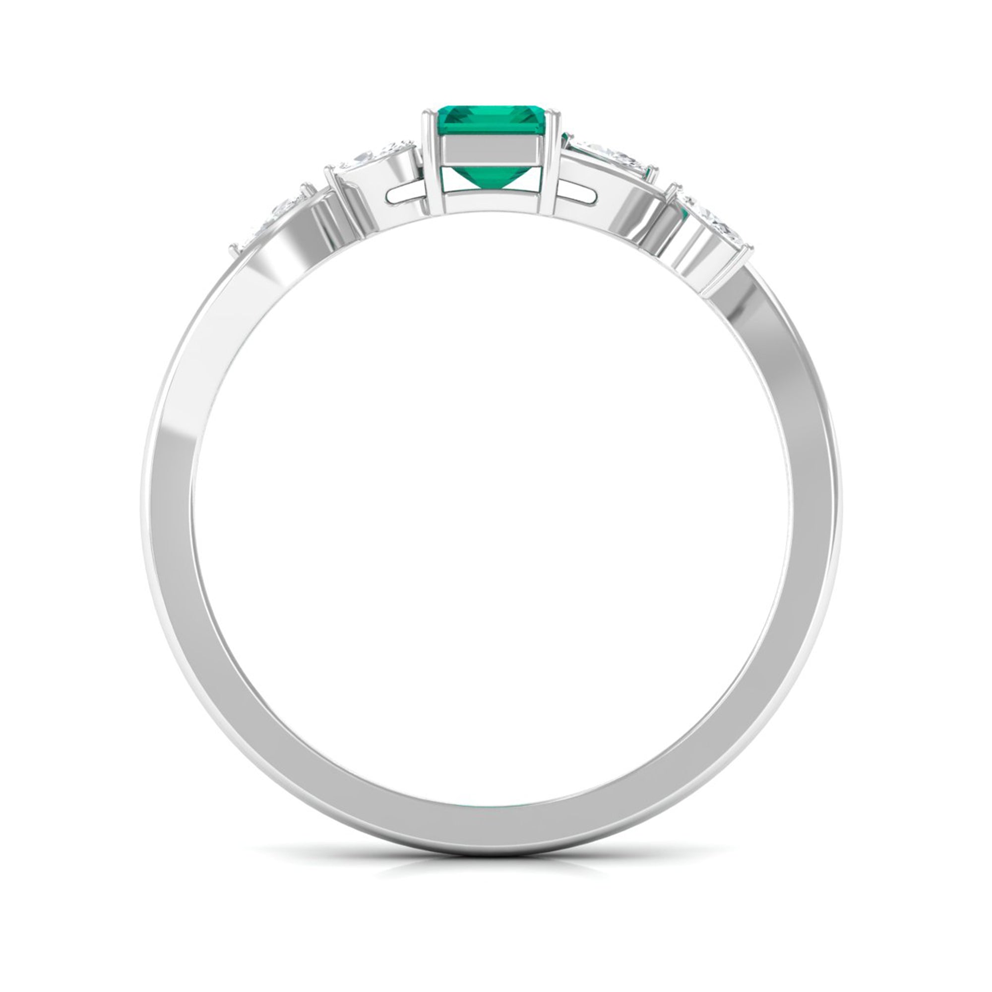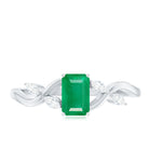 Natural Emerald Cut Emerald Designer Engagement Ring with Diamond