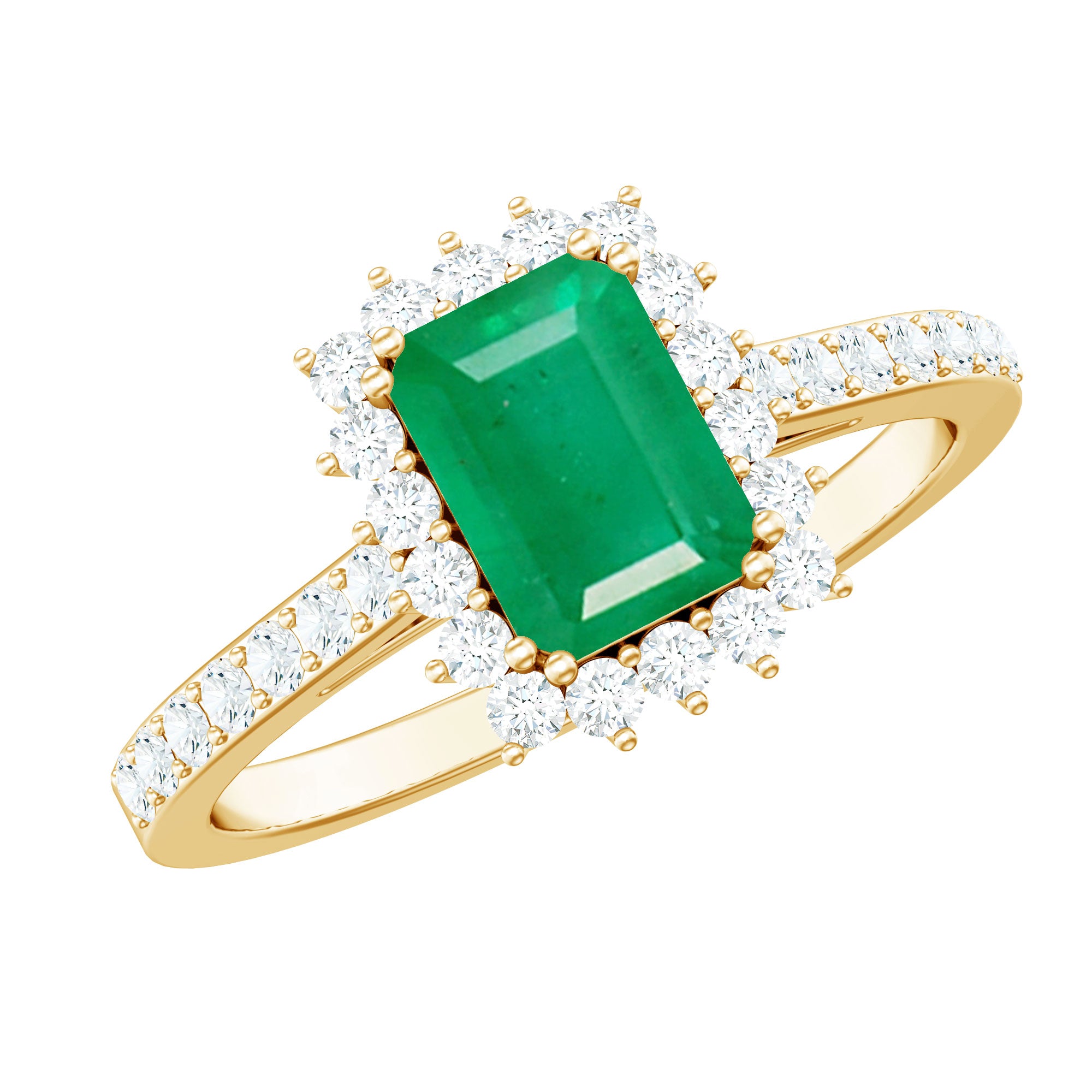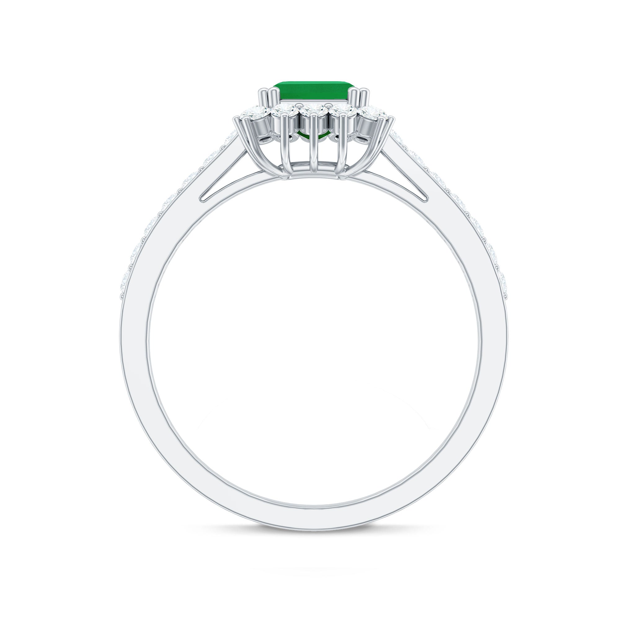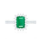 Natural Emerald Cut Emerald Engagement Ring with Diamond Halo