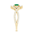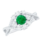Natural Emerald Diamond Antique Style Engagement Ring with Crossover Shank