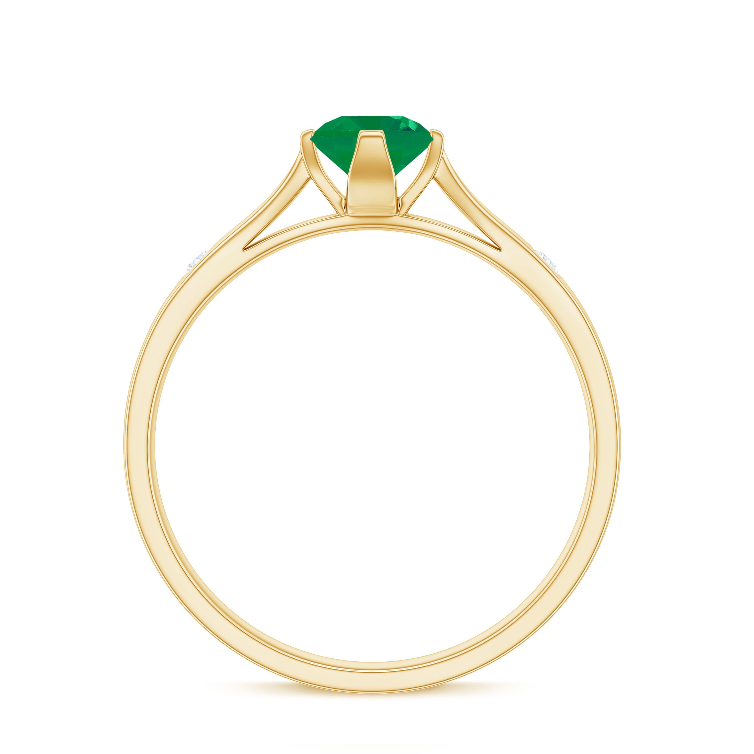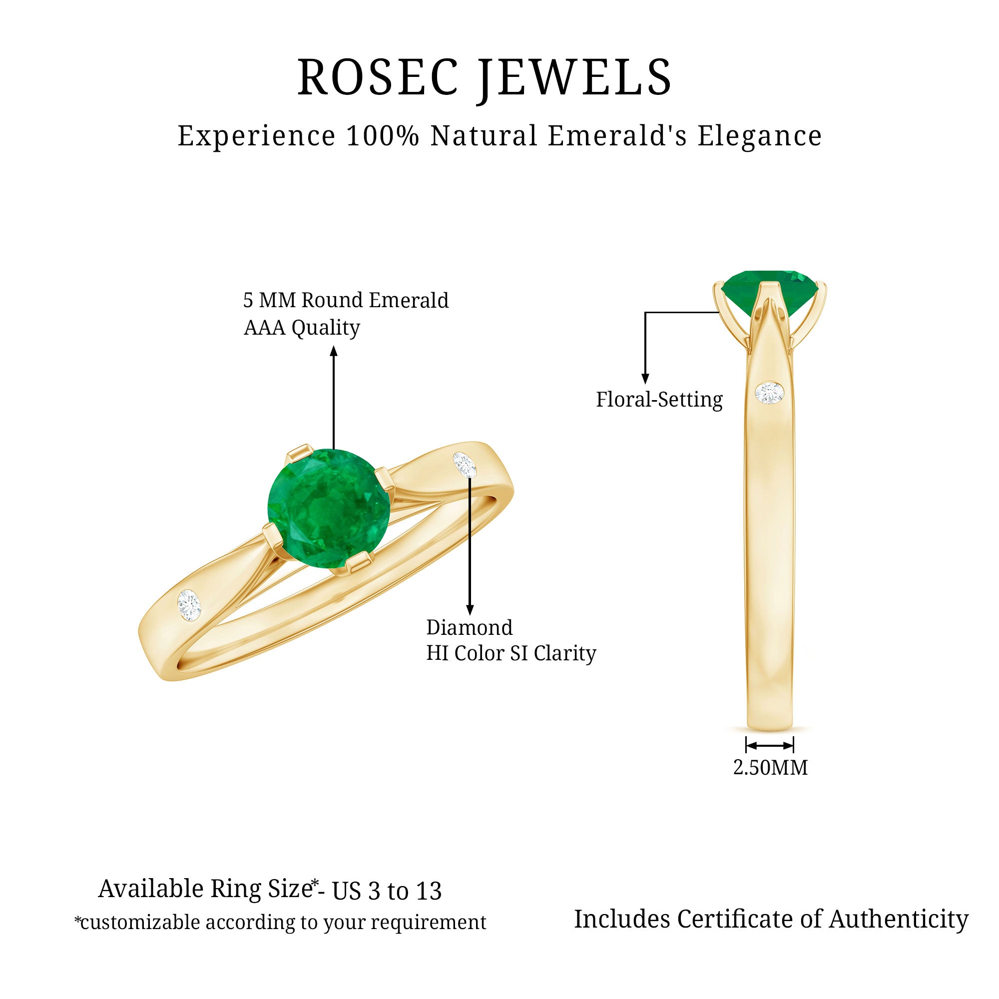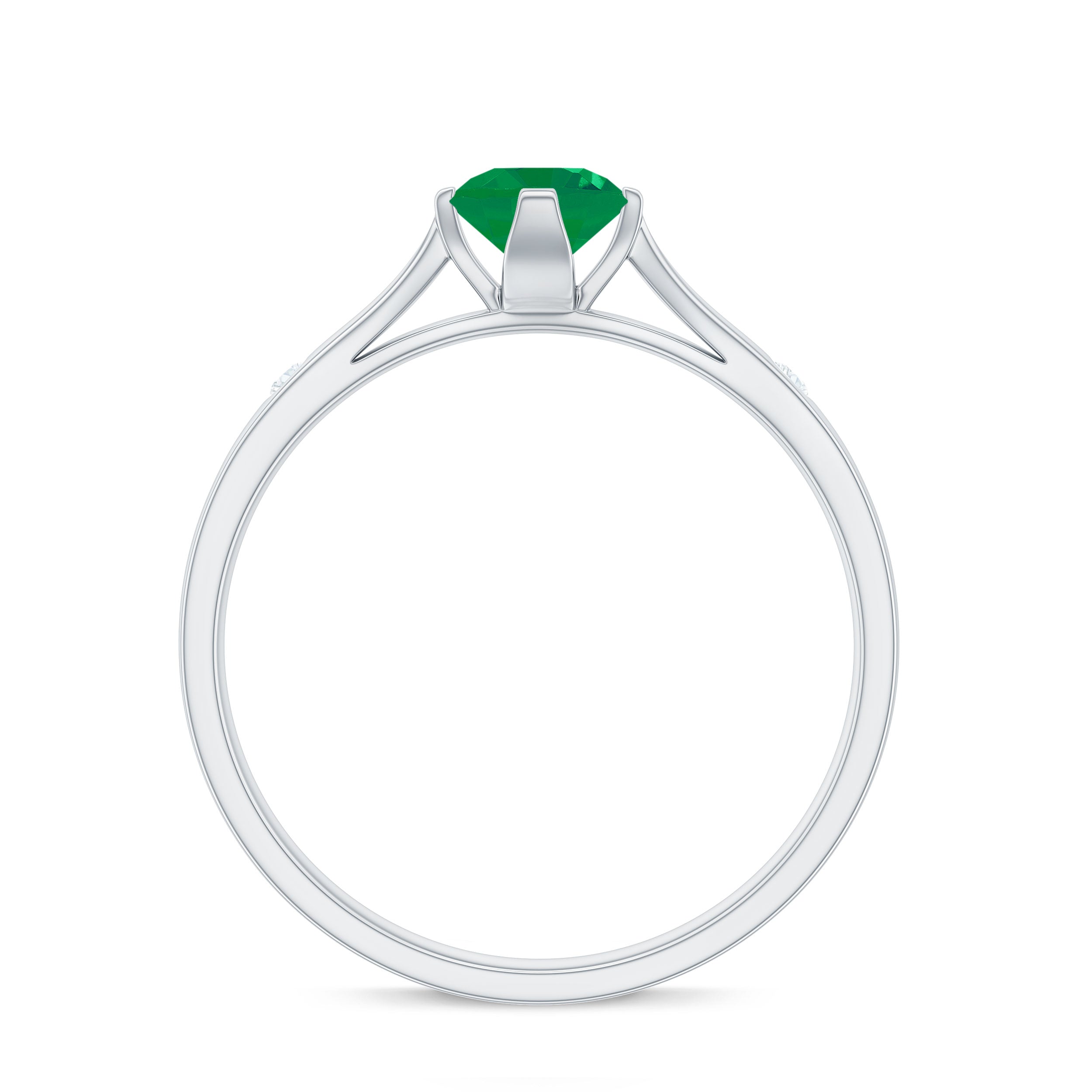 Seal your promise of love with a touch of elegance with this stunning Emerald Promise Ring, a design that beautifully blends simplicity, sophistication and heartfelt sentiment. At its center rests a vibrant 5 mm Round Shape Emerald that symbolizes growth, harmony and devotion. On either side, a sparkling Diamond accentuates the center stone, adding brilliance and a sense of timeless elegance to the piece. The Pinched Shank creates a graceful, modern design that highlights the stones while providing a delicate touch, perfect for expressing a commitment that is both personal and enduring. Every detail of this Emerald Diamond Ring is crafted to celebrate a love story that is unique and everlasting. Presented in a signature jewelry box and available in multiple ring sizes, this Commitment Ring is ready to mark a special moment, a milestone or a meaningful vow shared between two hearts.