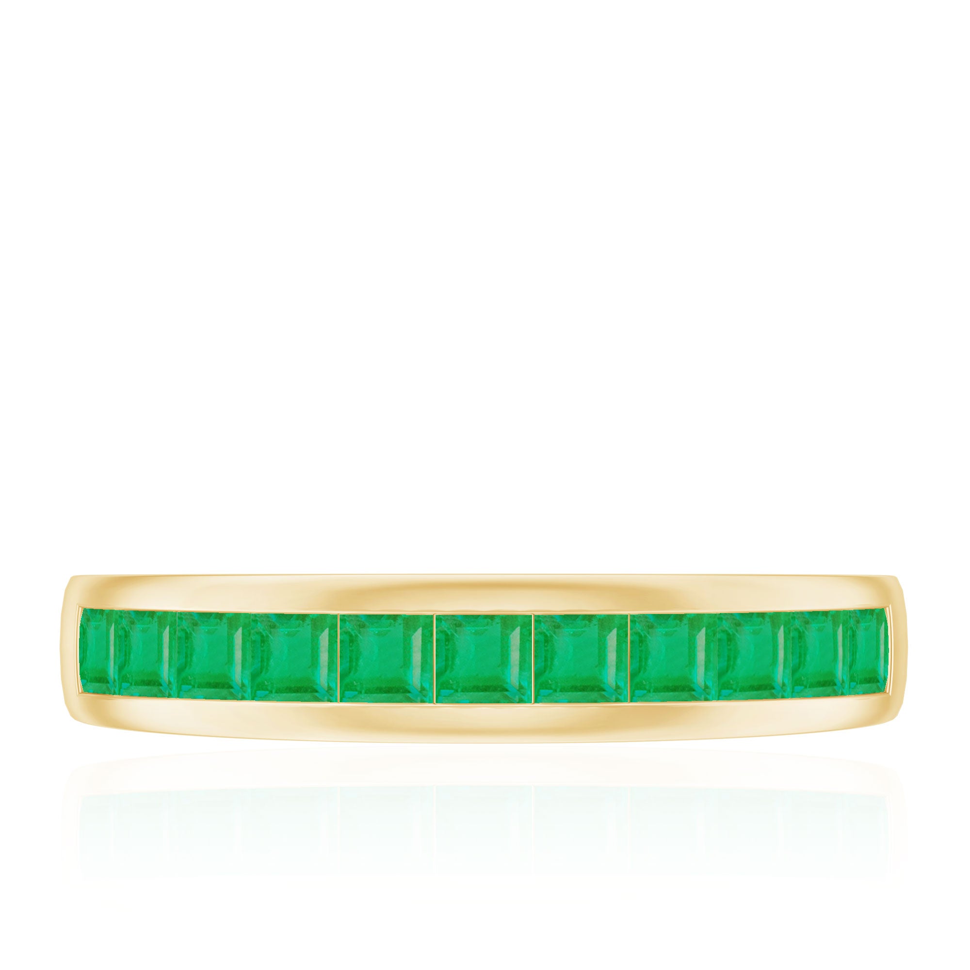 This exquisite Emerald Half Eternity Band embodies timeless elegance and modern sophistication. With its Princess Cut Emerald in Channel Setting, this Band Ring creates a striking yet understated aesthetic. The vivid green hue of the Natural Emerald is showcased beautifully, radiating luxury and charm by the Emerald Wedding Band. Whether worn alone as a standalone statement piece or stacked with another ring for a layered effect, this versatile Emerald Stackable Band is certain to enhance any ensemble. The understated glamour and timeless beauty of this Emerald Anniversary Band Ring make it a must-have addition to any jewelry collection. Additionally, the association with the birth month of May makes it a stunning present for your loved ones.