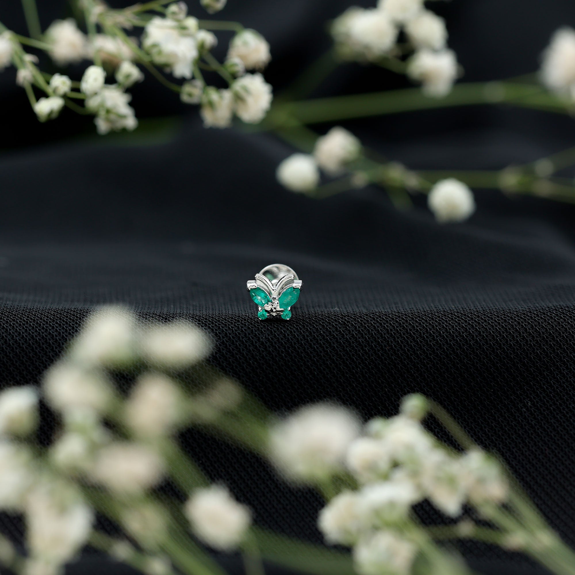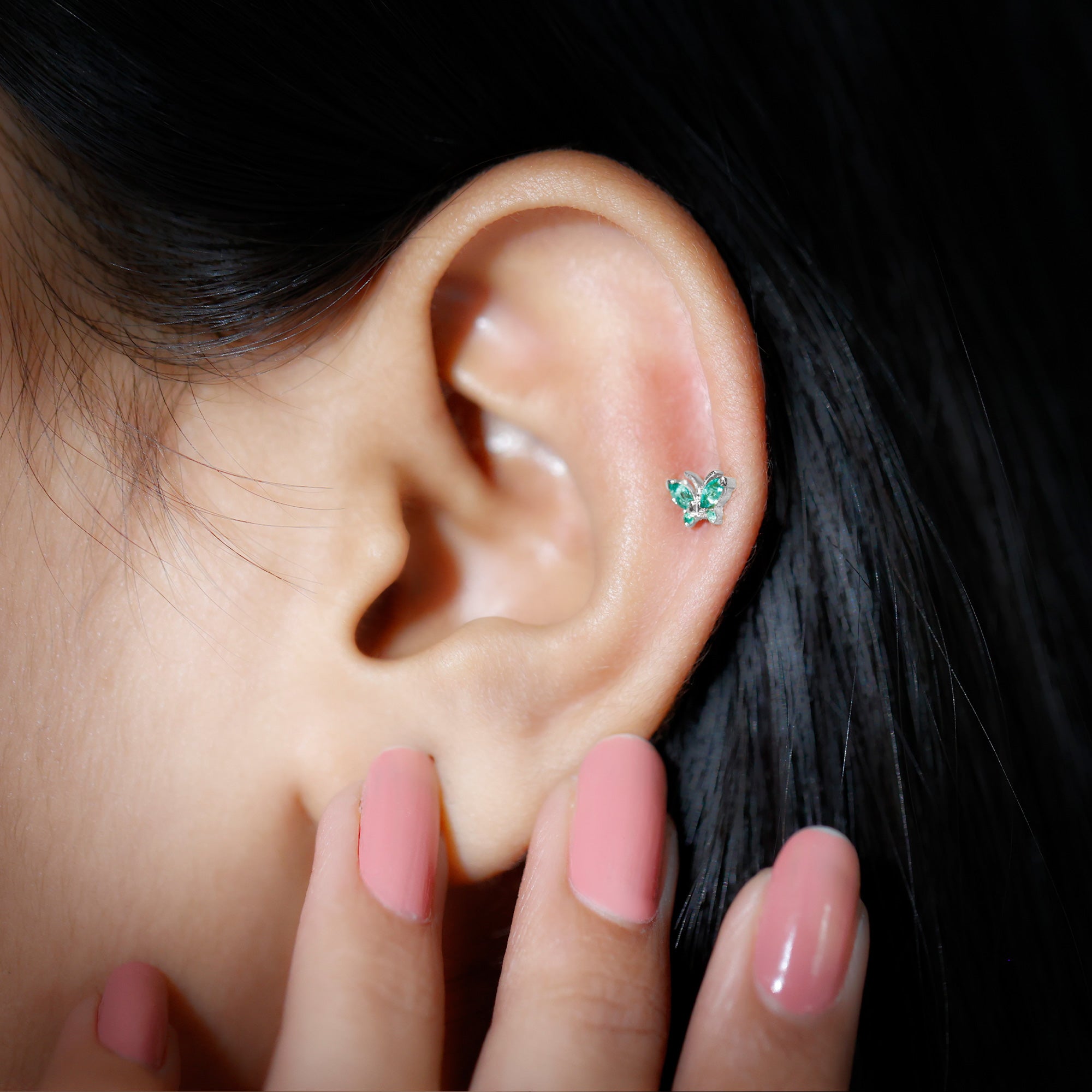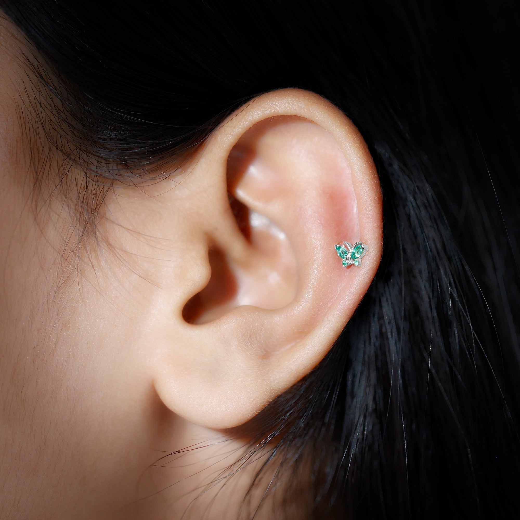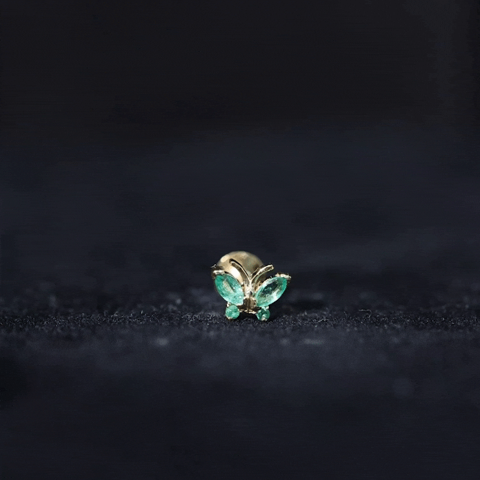 Natural Emerald Gold Butterfly Earring for Cartilage Piercing