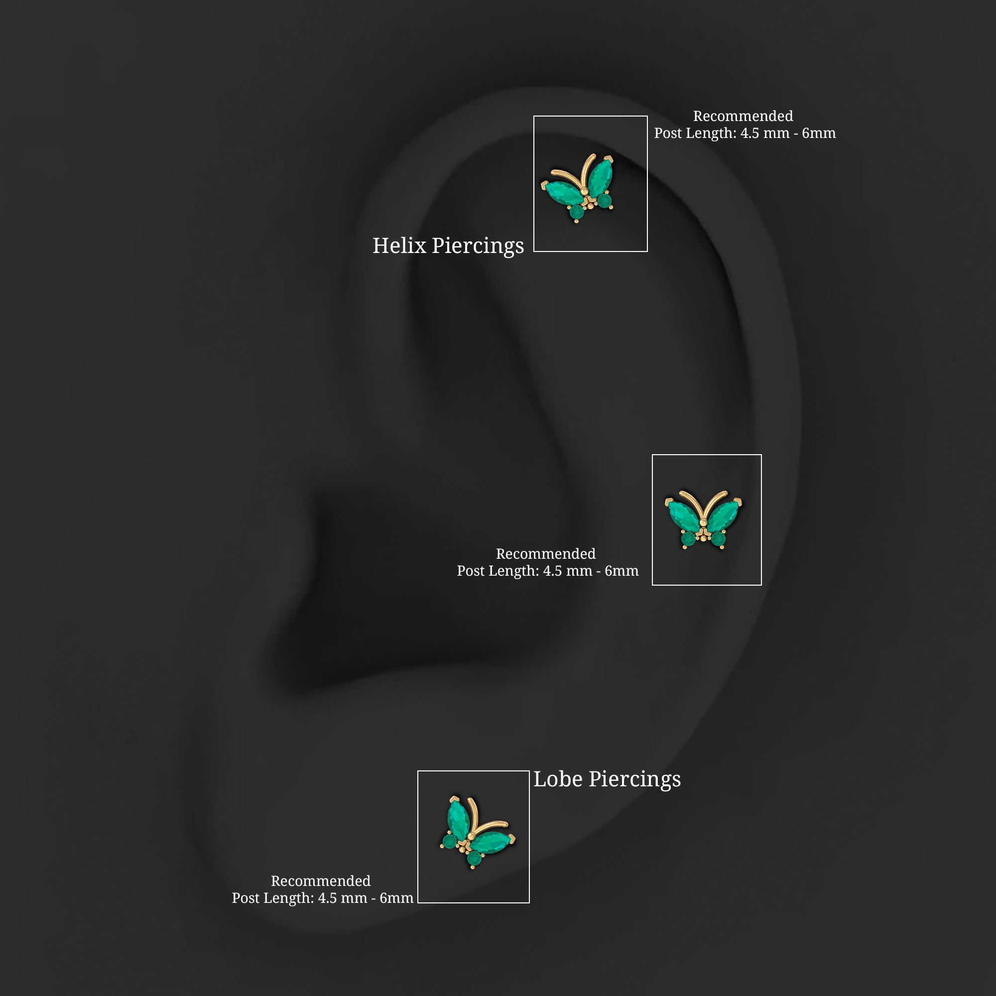 The elegant and beautiful Emerald Butterfly Earring, featuring Marquise and Round Cut Emerald assembled in a Butterfly design, composed of shiny Gold Metal. You can style this Cute Earring on your multiple piercings like Helix, Cartilage, Conch, Tragus, or Upper Lobe Piercing. This Minimalist Earring is the perfect gift for her, whether its for a Birthday, Anniversary, or any other special occasion. It is a beautiful and thoughtful way to show someone you care.