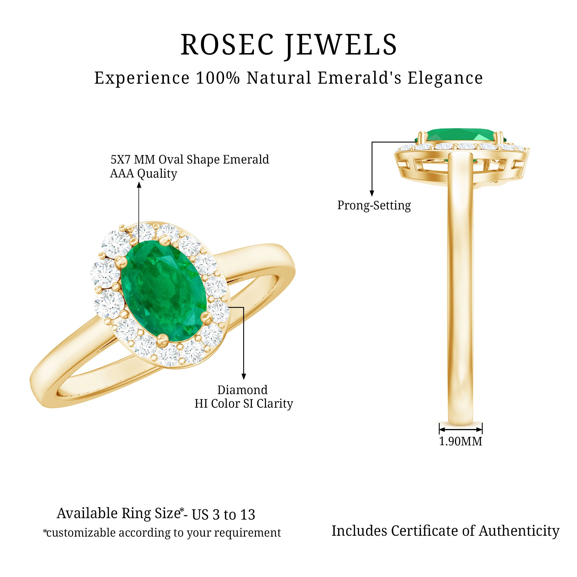 Radiating elegance and emotion, this Oval Engagement Ring is a breathtaking symbol of love that knows no end. At its center lies a vivid 5X7 mm Oval Shape Emerald, a gemstone known for its deep green glow and timeless charm, representing harmony, hope and everlasting affection. Surrounding it, a dazzling Halo of sparkling Diamond stones enhances its natural beauty, creating a stunning play of light that captures every glance and every heartbeat. The graceful design embodies both classic sophistication and modern romance, making this Oblong Engagement Ring the perfect ring for the one who holds your heart. Thoughtfully presented in an elegant jewelry box and available in a variety of sizes, this Halo Engagement Ring with Emerald is sure to turn heads. Whether you are planning the perfect proposal or celebrating a once-in-a-lifetime love, this Emerald Diamond Engagement Ring is destined to become an heirloom of the heart, a radiant reminder that true love grows stronger with every sparkle.