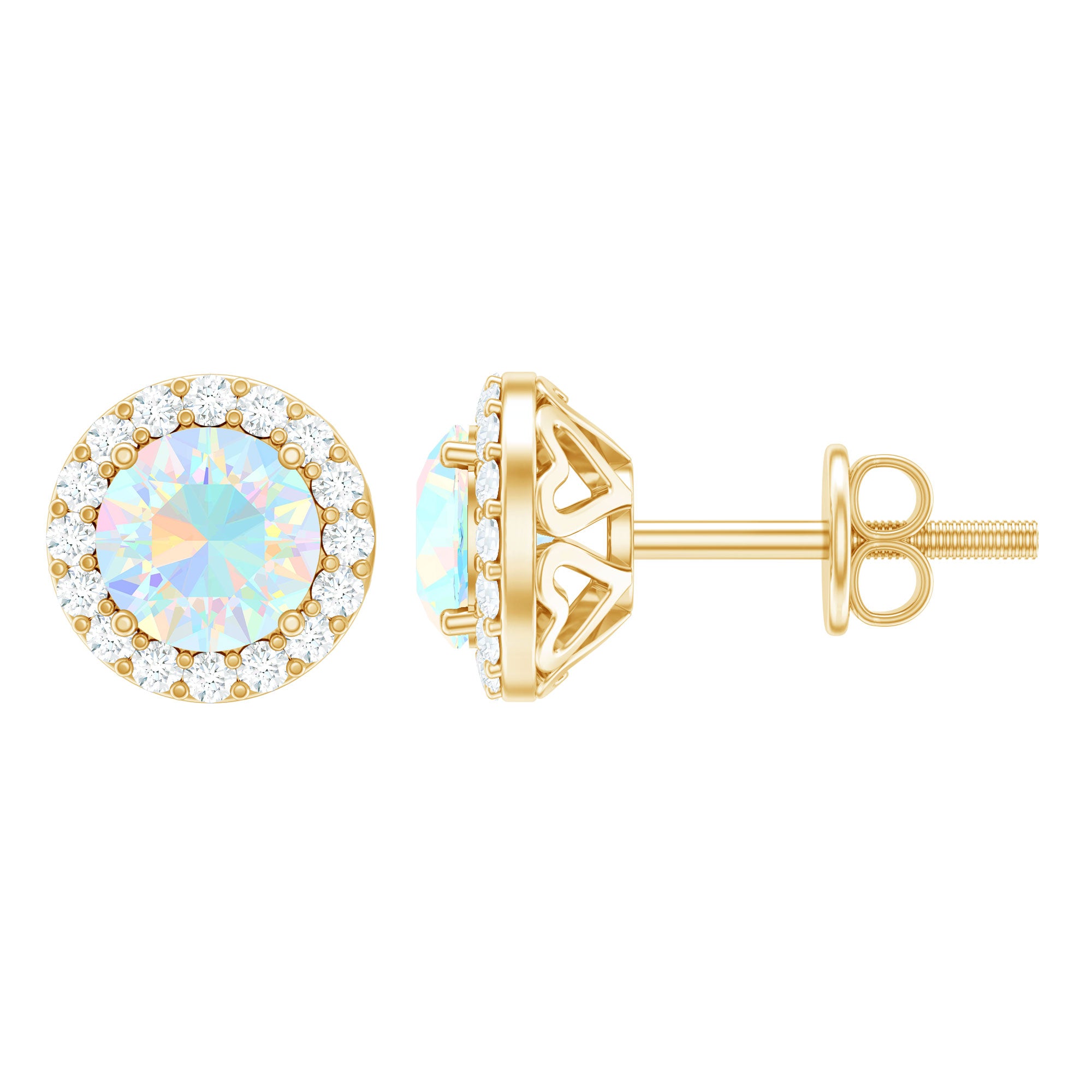 Natural Ethiopian Opal and Moissanite Halo Stud Earrings