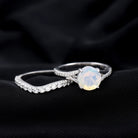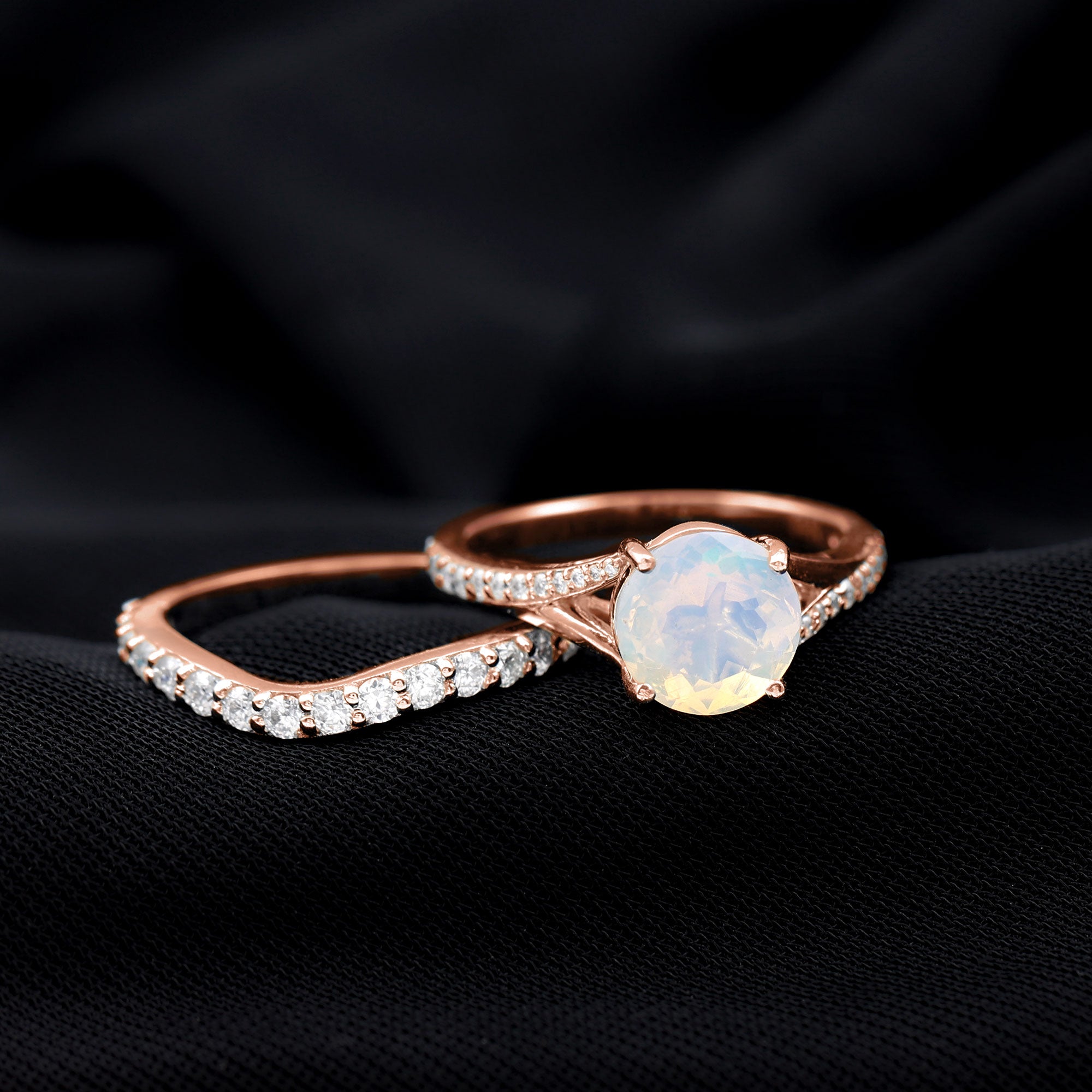 Say forever with luminous elegance in this Wedding Bridal Ring Set, a dreamy duo designed to captivate. At the center of the Solitaire Engagement Ring, a glowing 8 mm Round Shape Ethiopian Opal set in Prong Setting steals the spotlight, shimmering with magical flashes of color that shift with every movement. The Split Shank Band, adorned with sparkling Moissanite stones, adds layers of sparkle and sophistication, giving the ring a modern yet ethereal feel. Paired perfectly with a curved Moissanite Wedding Band, this Opal Engagement Ring Set creates a stacked look that sparkles from every angle and feels effortlessly romantic. This Split Shank Engagement Ring with Wedding Band is perfect for the bride who loves timeless style with a unique, celestial twist. Whether it is the iridescent beauty of the Opal or the shimmer of the Moissanite, each detail is designed to reflect your one-of-a-kind love story. Crafted with care and available in various sizes, this Opal Bridal Ring Set comes in a signature jewelry box, ready to gift or treasure forever.