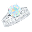 Natural Ethiopian Opal Split Shank Engagement Ring with Wedding Band
