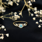 Unveil a love as enchanting as nature itself with this Ethiopian Opal Engagement Ring, a design where elegance blooms in every detail. At the center is a captivating 6 mm Round Shape Ethiopian Opal set in 4 Prong Setting. The unique Crossover Band wraps gracefully around the finger, creating a flowing design that speaks of connection and unity. On each side, delicate Diamond stones frame a flower pattern that blossoms like tiny love stories, sparkling reminders of growth, beauty and the blooming journey you are about to begin. This Opal Diamond Engagement Ring is a poetic expression of a love that is ever-evolving and full of wonder. Designed for the free spirit with a romantic heart, this Crossover Ring merges natural charm with timeless sophistication. Available in a range of ring sizes to ensure the perfect fit and thoughtfully packaged in an elegant jewelry box, this Nature Inspired Engagement Ring is proposal-ready and destined to be treasured. This Opalescent Ring is a breathtaking symbol of your forever beginning.