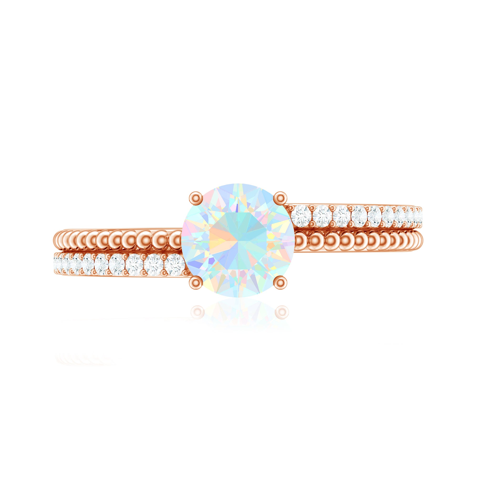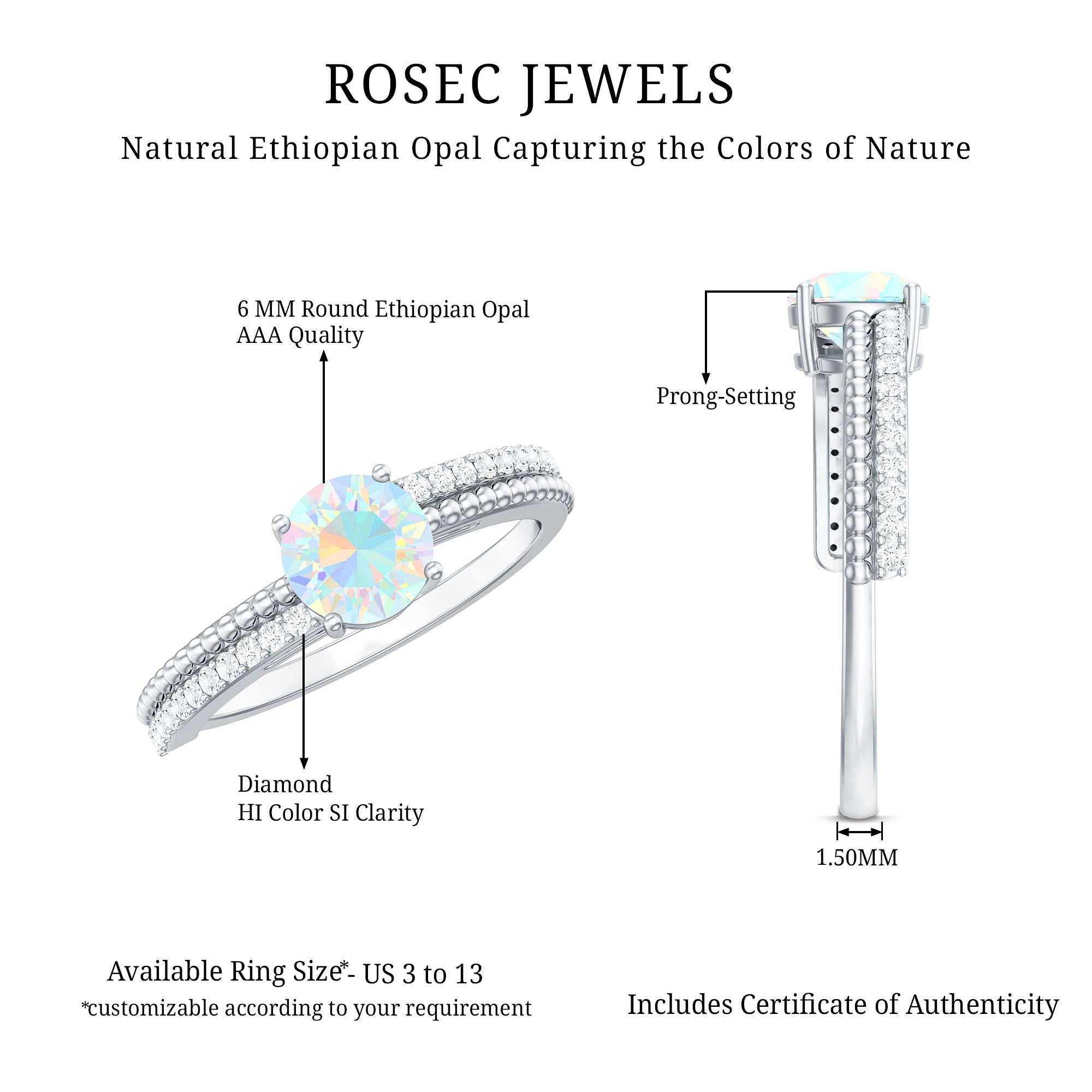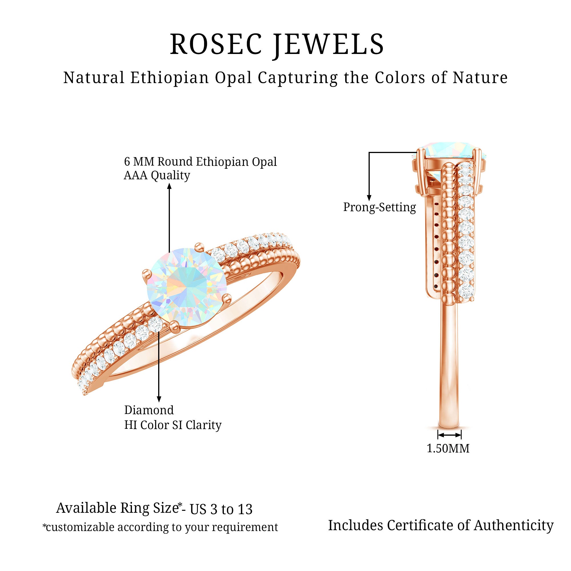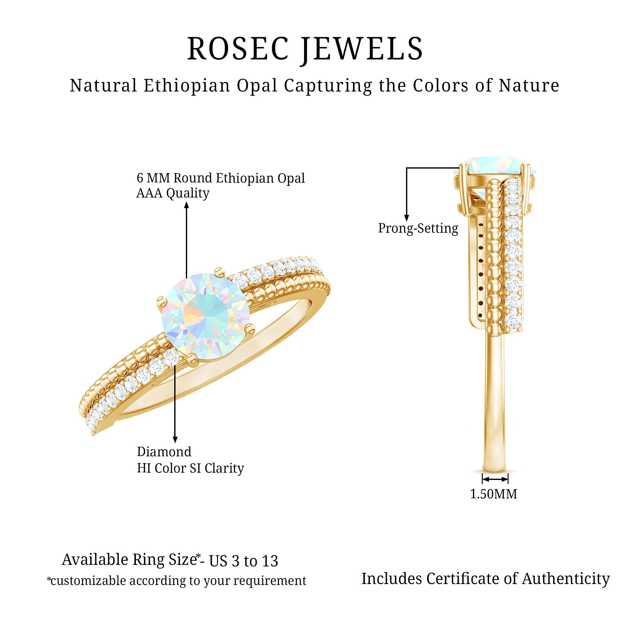 Natural Ethiopian Opal Diamond Solitaire Engagement Ring with Beaded Detailing