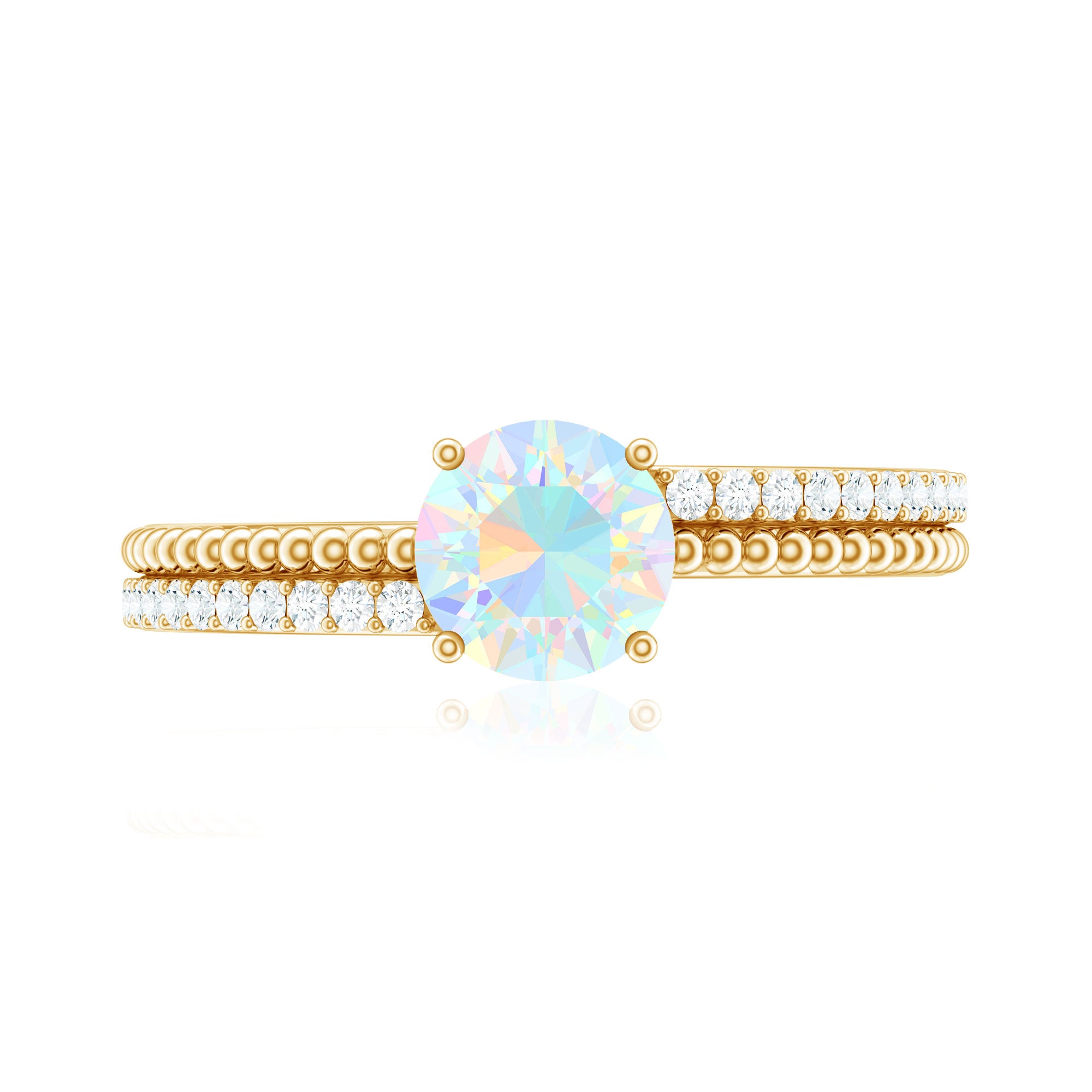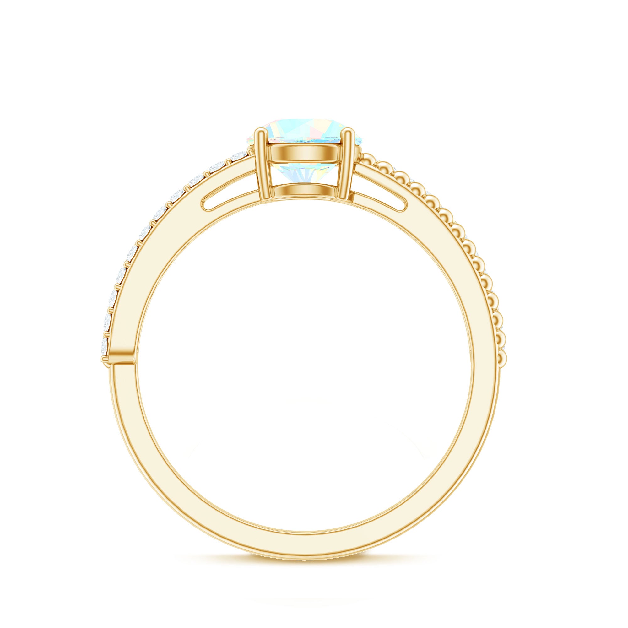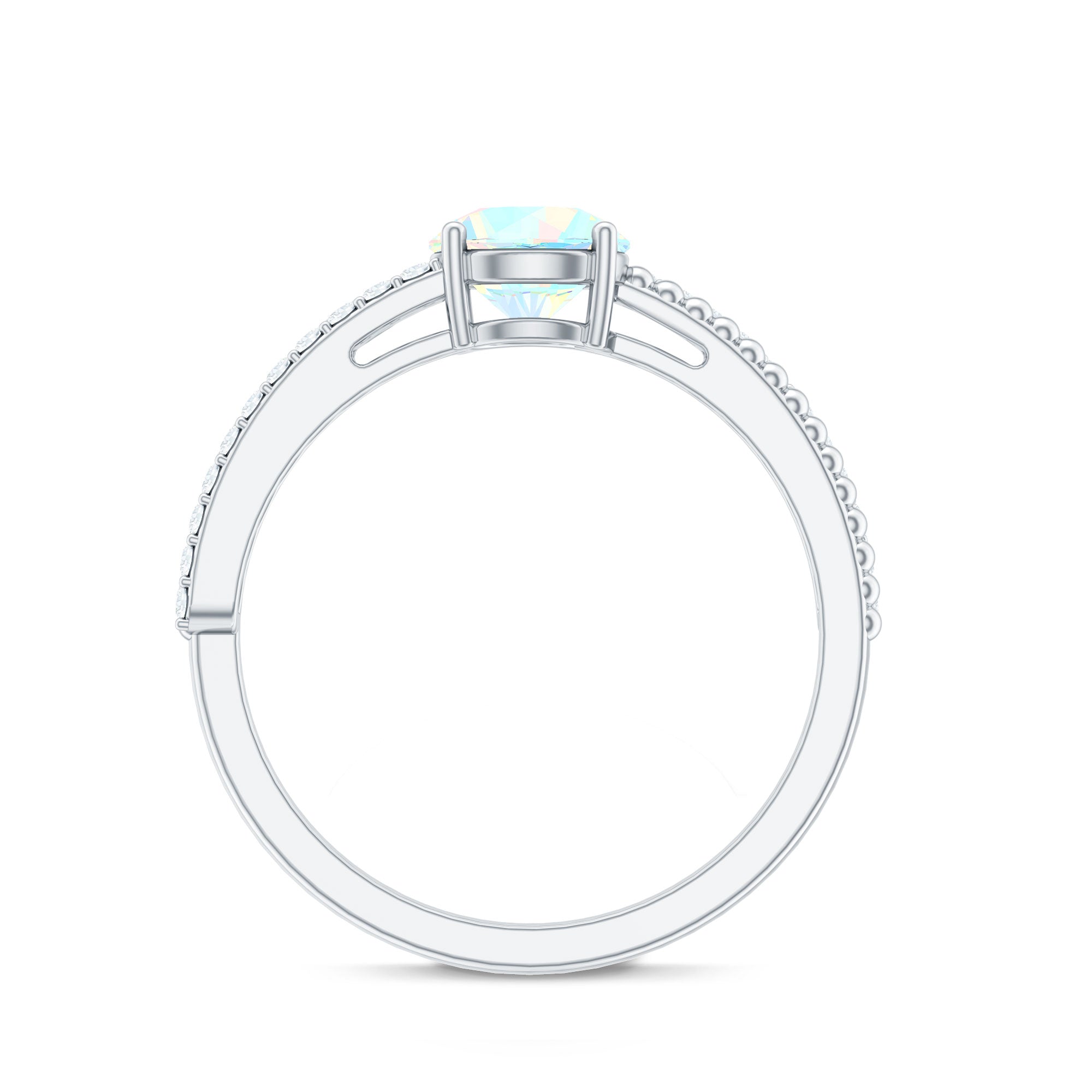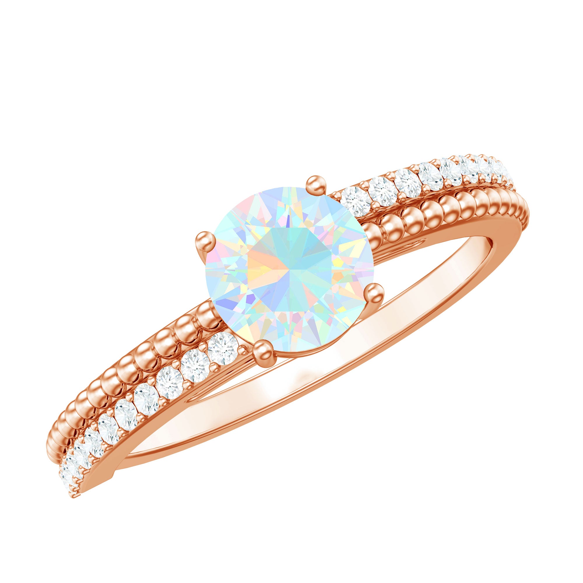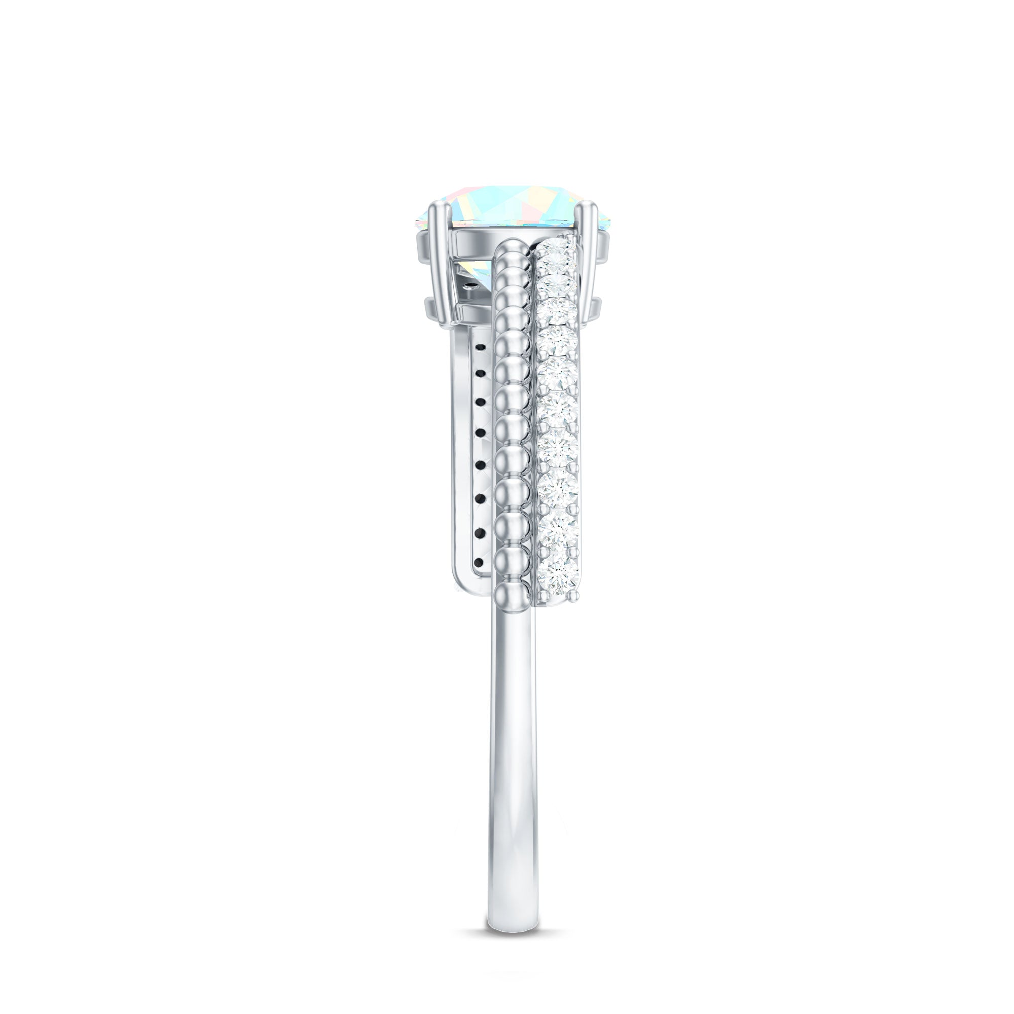 Natural Ethiopian Opal Diamond Solitaire Engagement Ring with Beaded Detailing