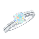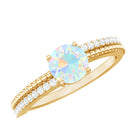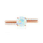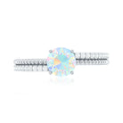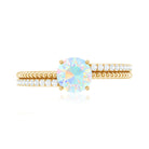 Unveil a love that shines as brightly as your forever with this Opal Solitaire Engagement Ring. At its center lies a captivating 6 mm Round Shape Ethiopian Opal set in 4 Prong Setting, radiating an array of vivid hues, creating a stone as unique and magical as the love it represents. The Opal takes center stage, while sparkling Diamond side stones delicately accentuate its glow, adding a layer of brilliance that never fades. The band of this Opal Diamond Engagement Ring is adorned with intricate Beaded Detailing, a subtle nod to vintage elegance that complements the striking beauty of the opal. Together, the opal, diamond stones, and detailing form a harmonious piece that is both timeless and modern, just like your love. Whether you are about to say I do or already living your happily ever after, this Opal Solitaire Ring for Engagement serves as a perfect reminder of an everlasting commitment. Presented in a signature jewelry box and available in various sizes, this Rainbow Opal Engagement Ring is a promise that your love will shine brighter with every passing day.