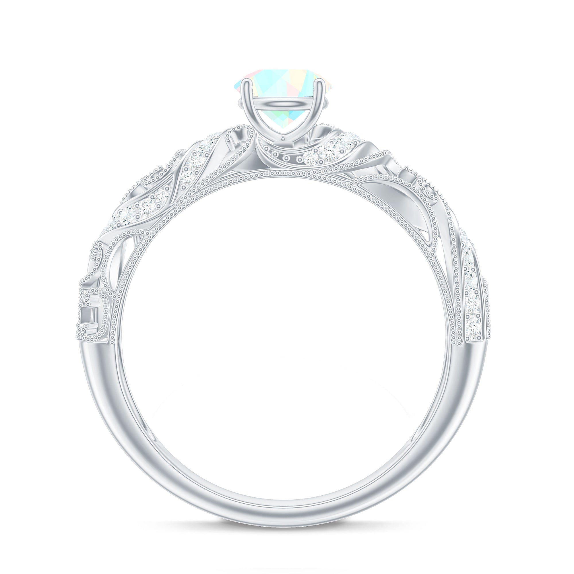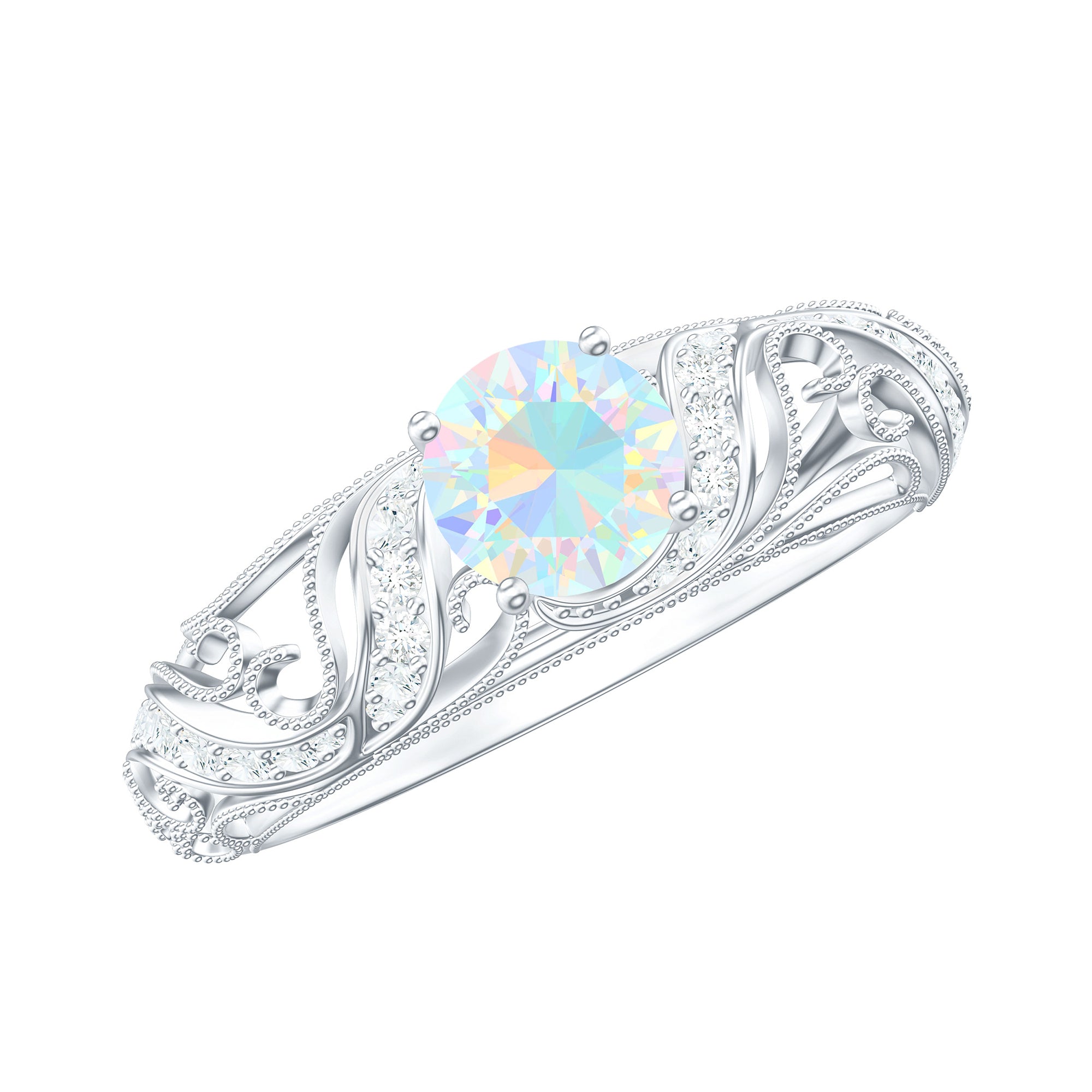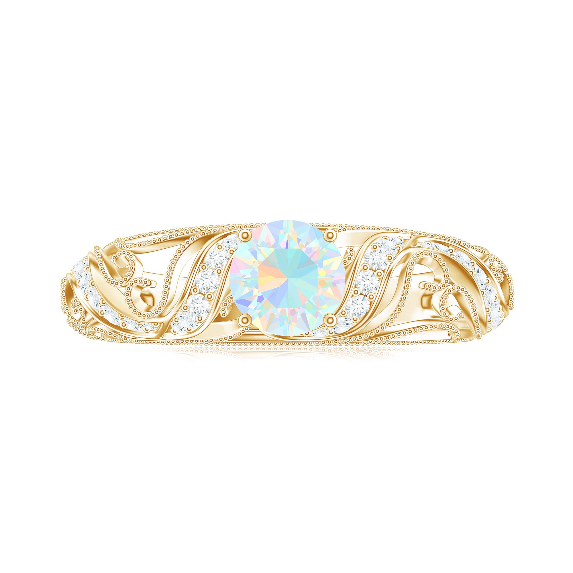Embrace the world of vintage romance with this Vintage Inspired Engagement Ring, a mesmerizing blend of old-soul elegance and modern magic. At the center of this piece lies a captivating 6 mm Round Shape Ethiopian Opal set in Prong Setting. Framed by sparkling Diamond stones and intricate Beaded Detailing, the center stone is beautifully set within a vintage inspired band that echoes the grace of bygone eras. The delicate craftsmanship of band adds depth and texture, making this Opal Diamond Engagement Ring feel like an heirloom from day one. Perfect for the bride who adores classic aesthetics with a unique twist, this Real Opal Engagement Ring offers style and deep meaning. This Vintage Opal Engagement Ring arrives in a signature jewelry box, ready for that unforgettable moment, and is available in a range of sizes to ensure the ideal fit. Whether you are drawn to its antique charm or the glow of the opal, this Real Opal Engagement Ring is a celebration of eternal love.