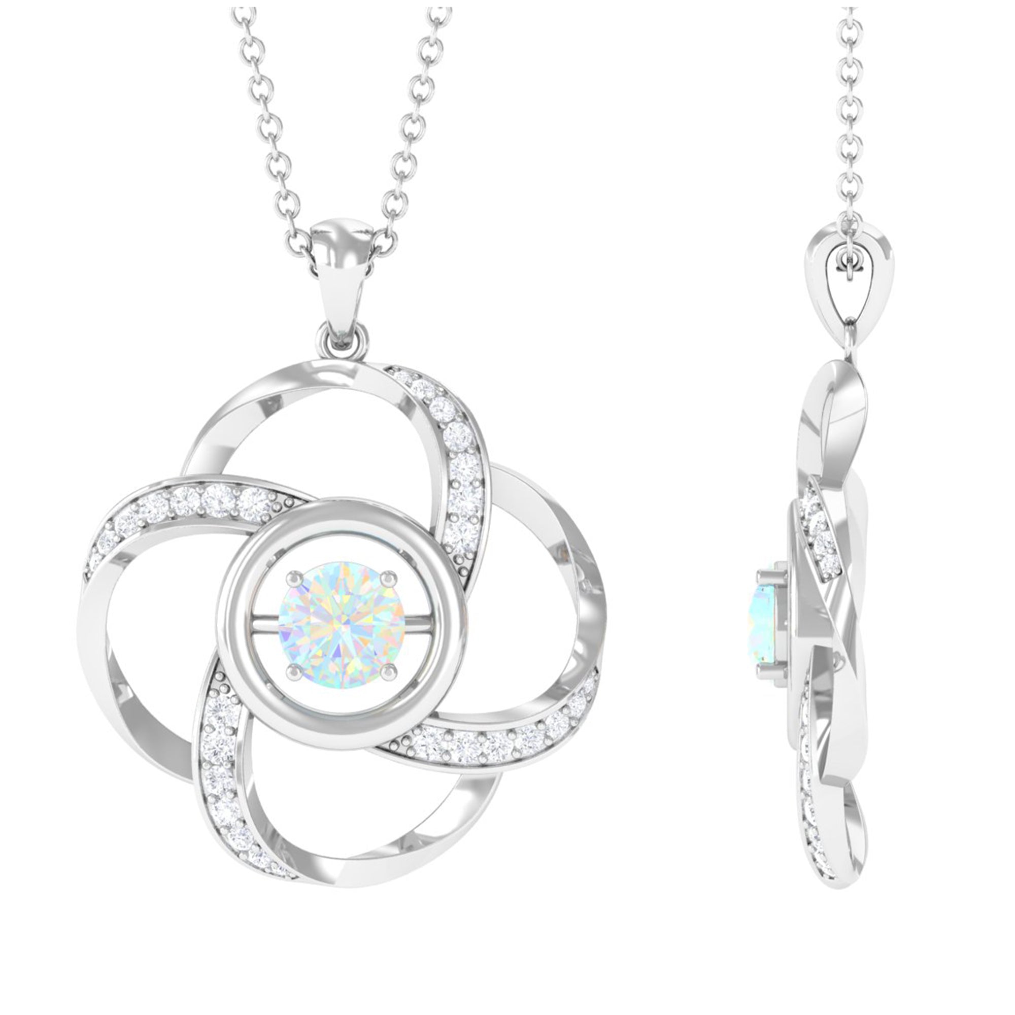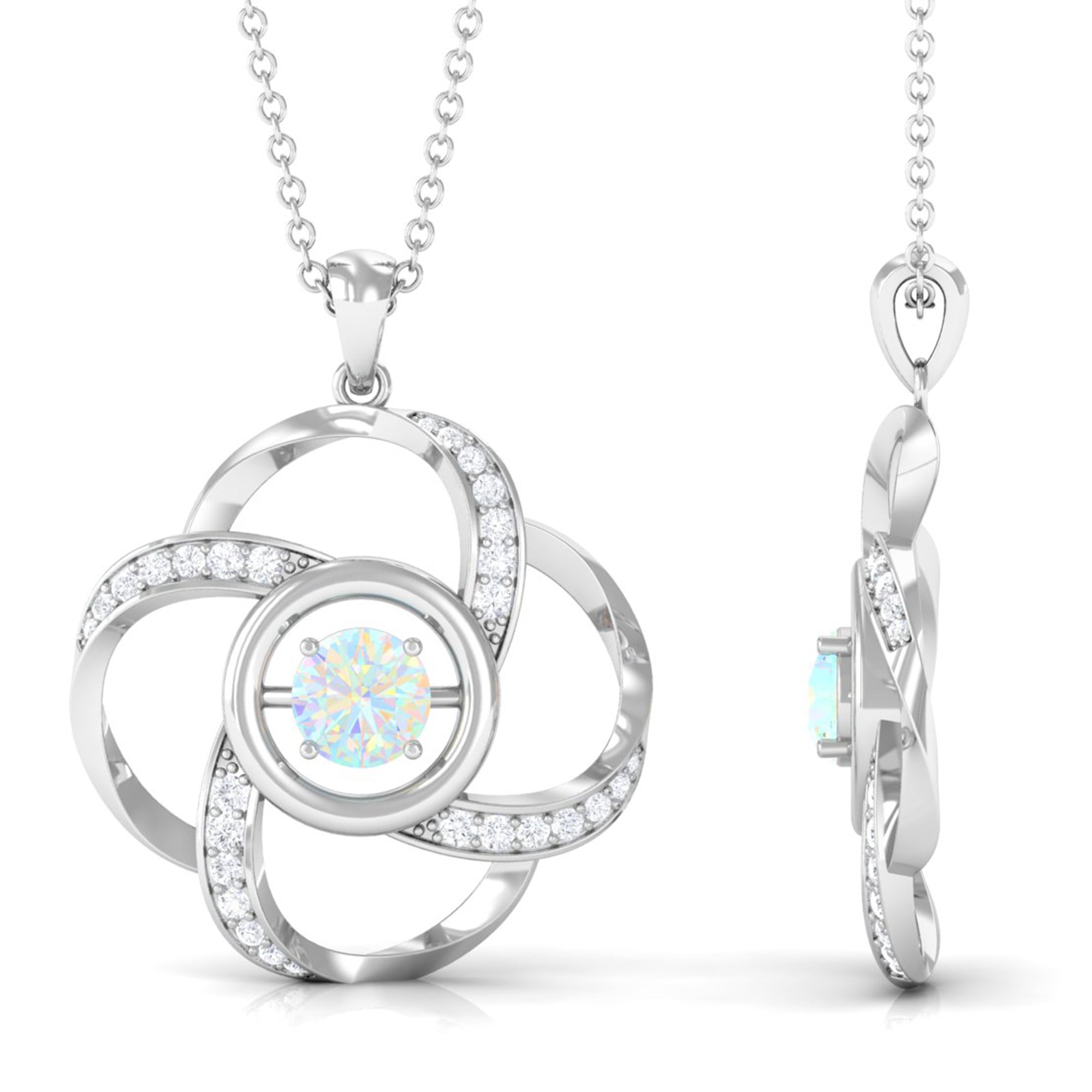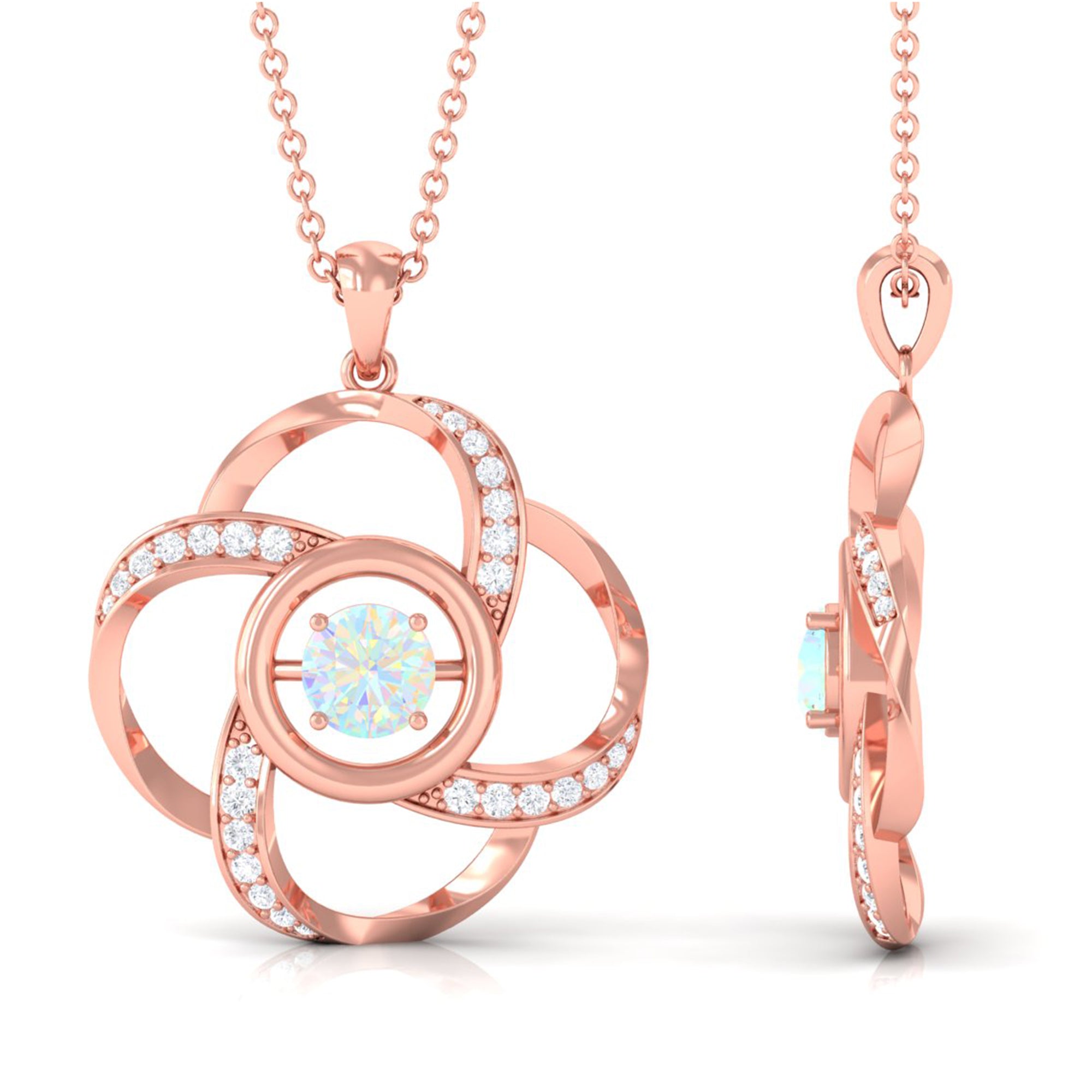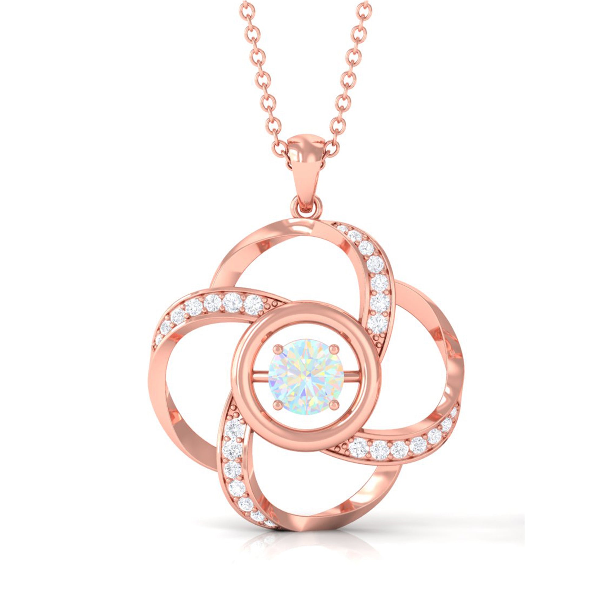 Natural Ethiopian Opal Floral Pendant Necklace with Diamond