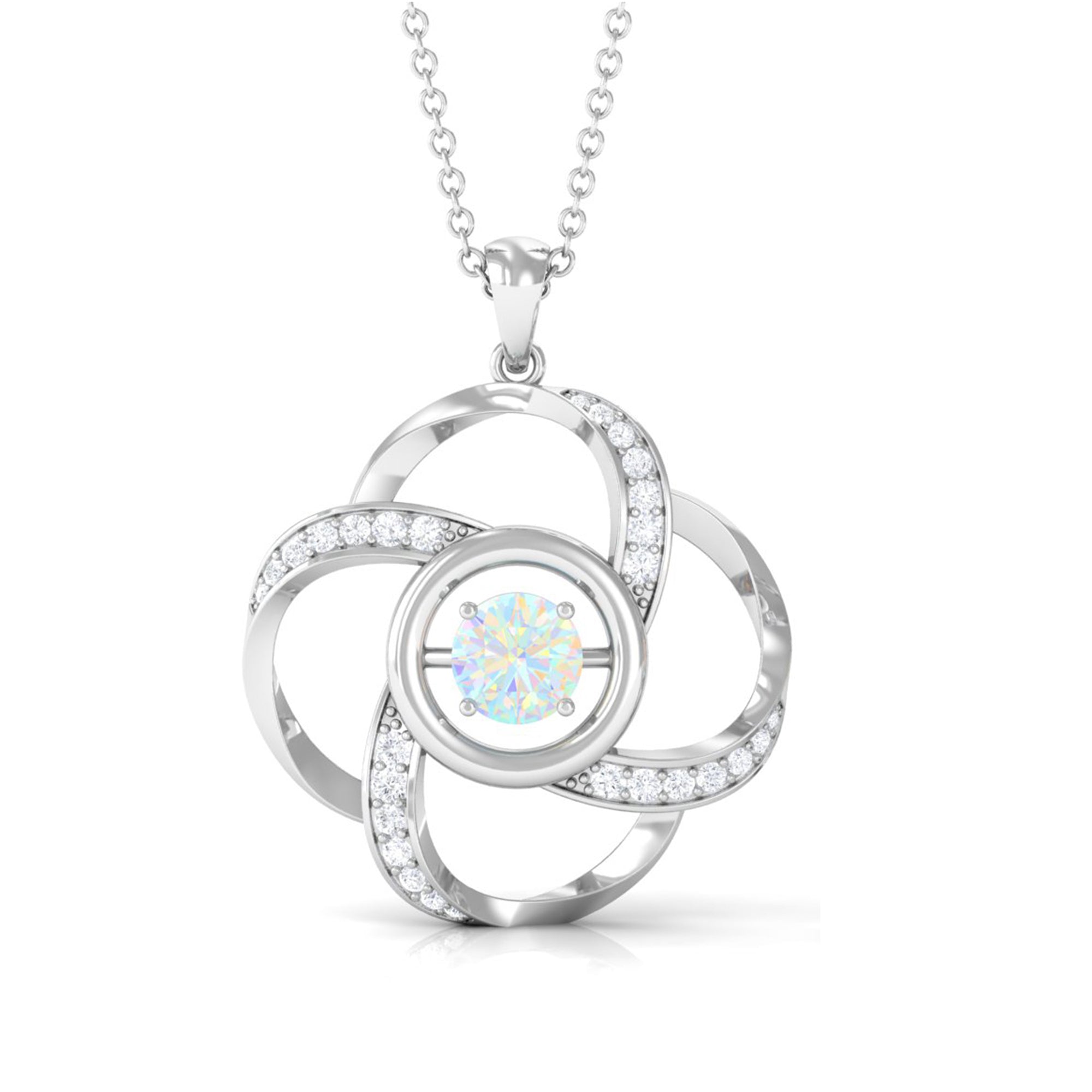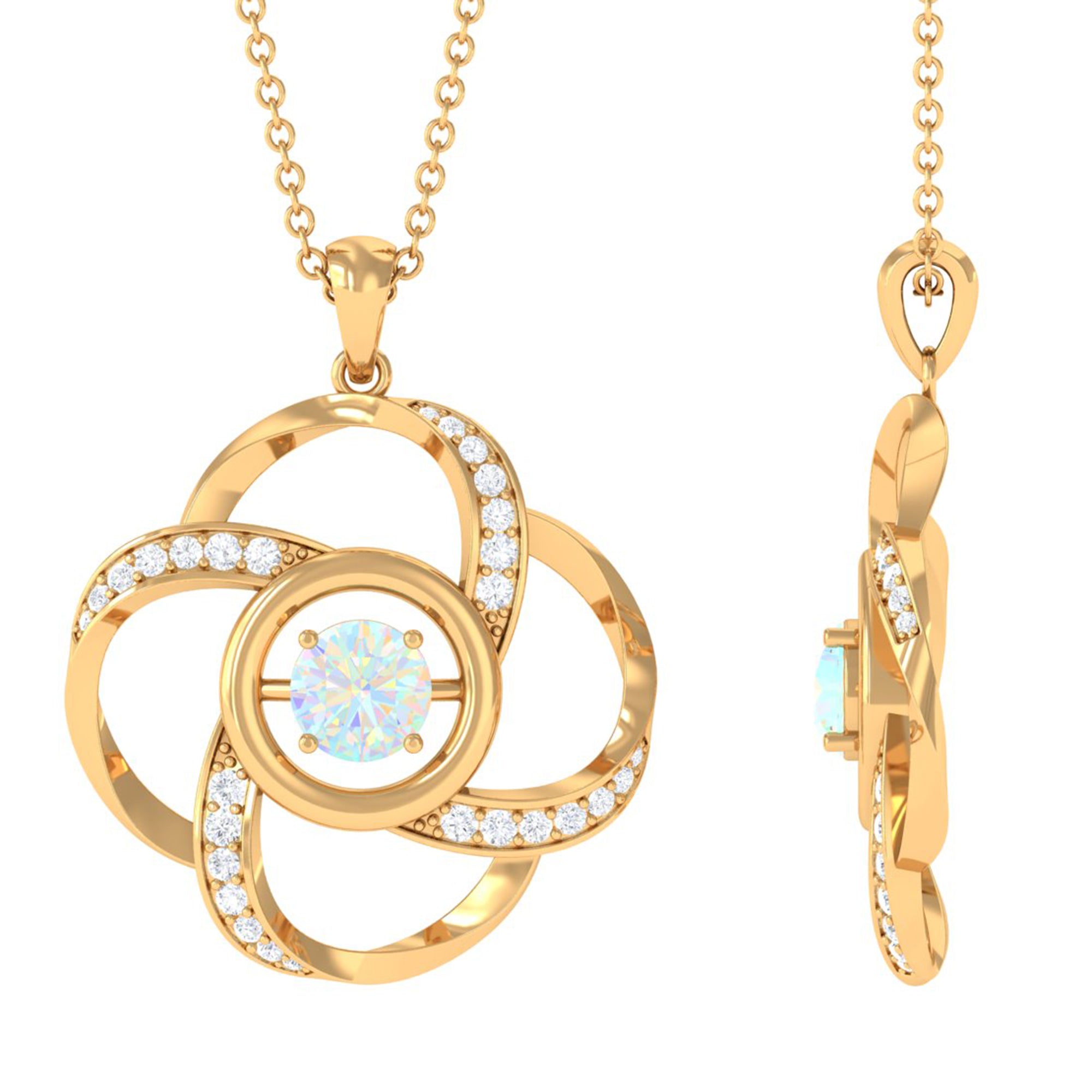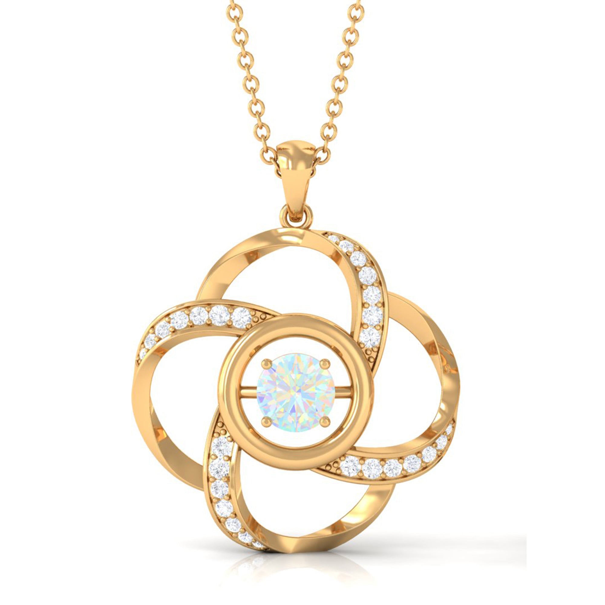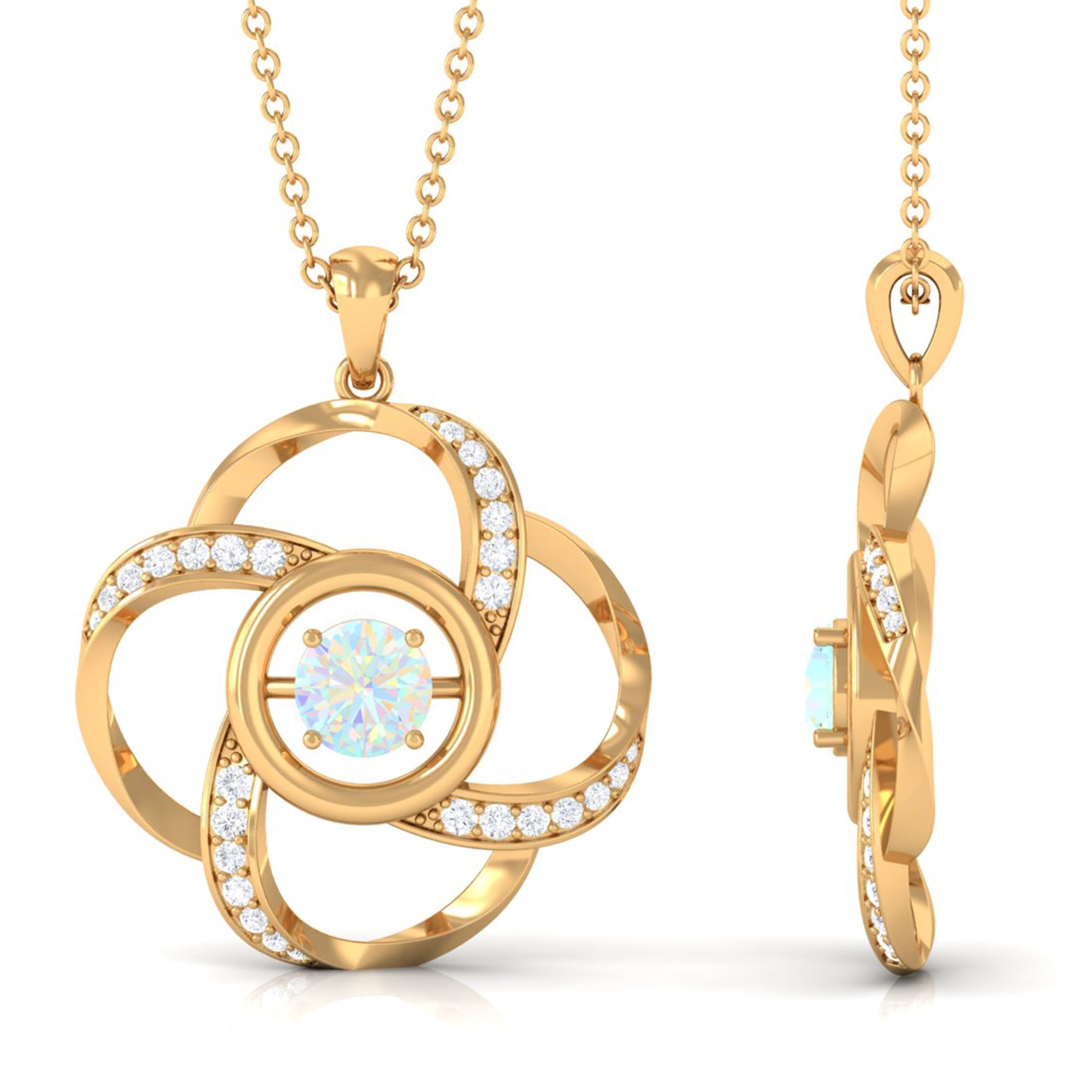 With the stunning piece of this Ethiopian Opal Pendant that is sure to leave you speechless. The Round Shape Ethiopian Opal in Prong Setting with Diamond studded on elegant flower design is a statement jewelry which becomes your everyday staple. This Minimal Pendant Necklace is a perfect jewelry which thereby becomes a perfect jewelry for the nature lovers.