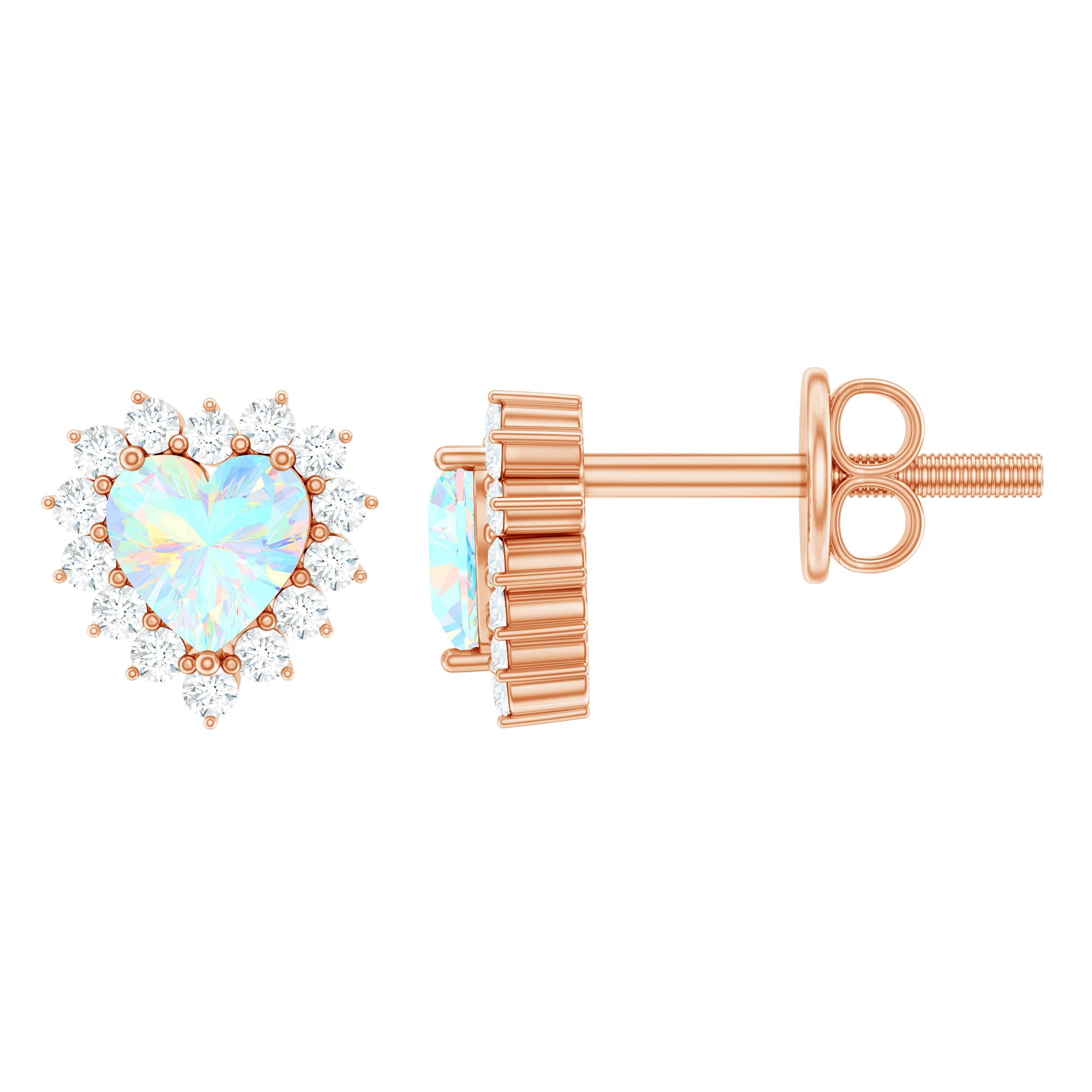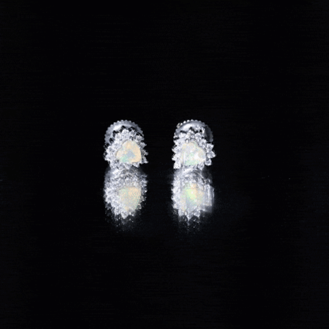 Natural Ethiopian Opal Heart Earrings with Moissanite Halo