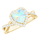Natural Ethiopian Opal Heart Engagement Ring with Diamond Crossover Shank
