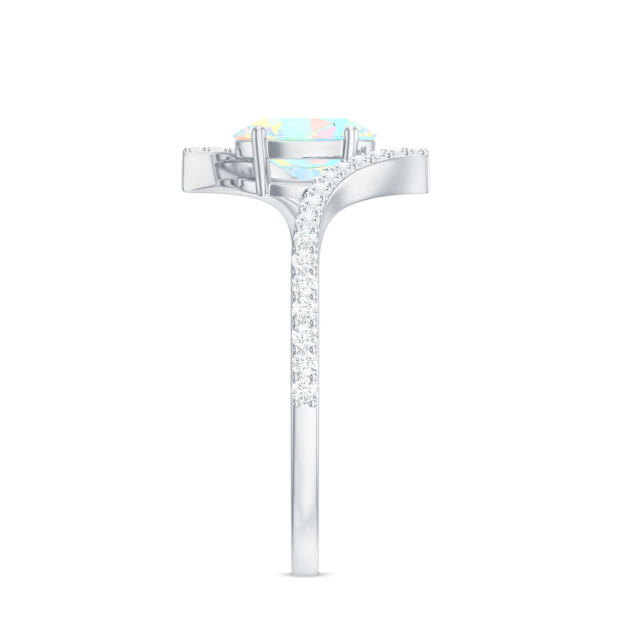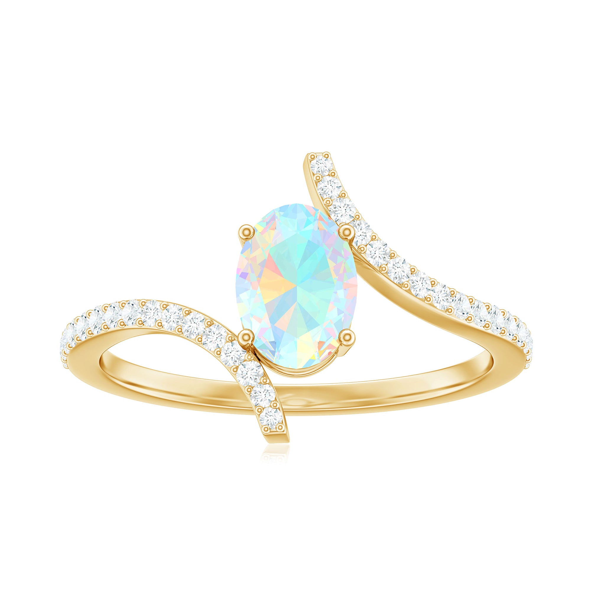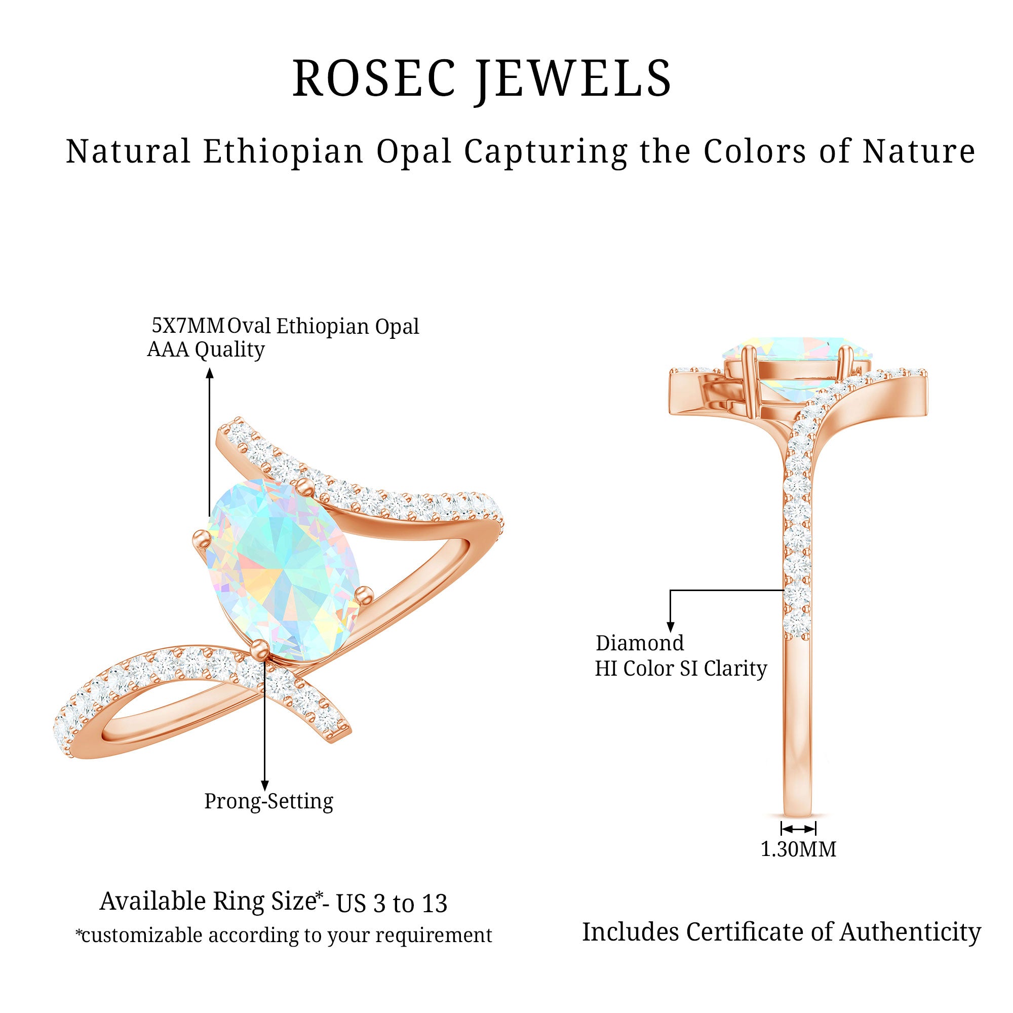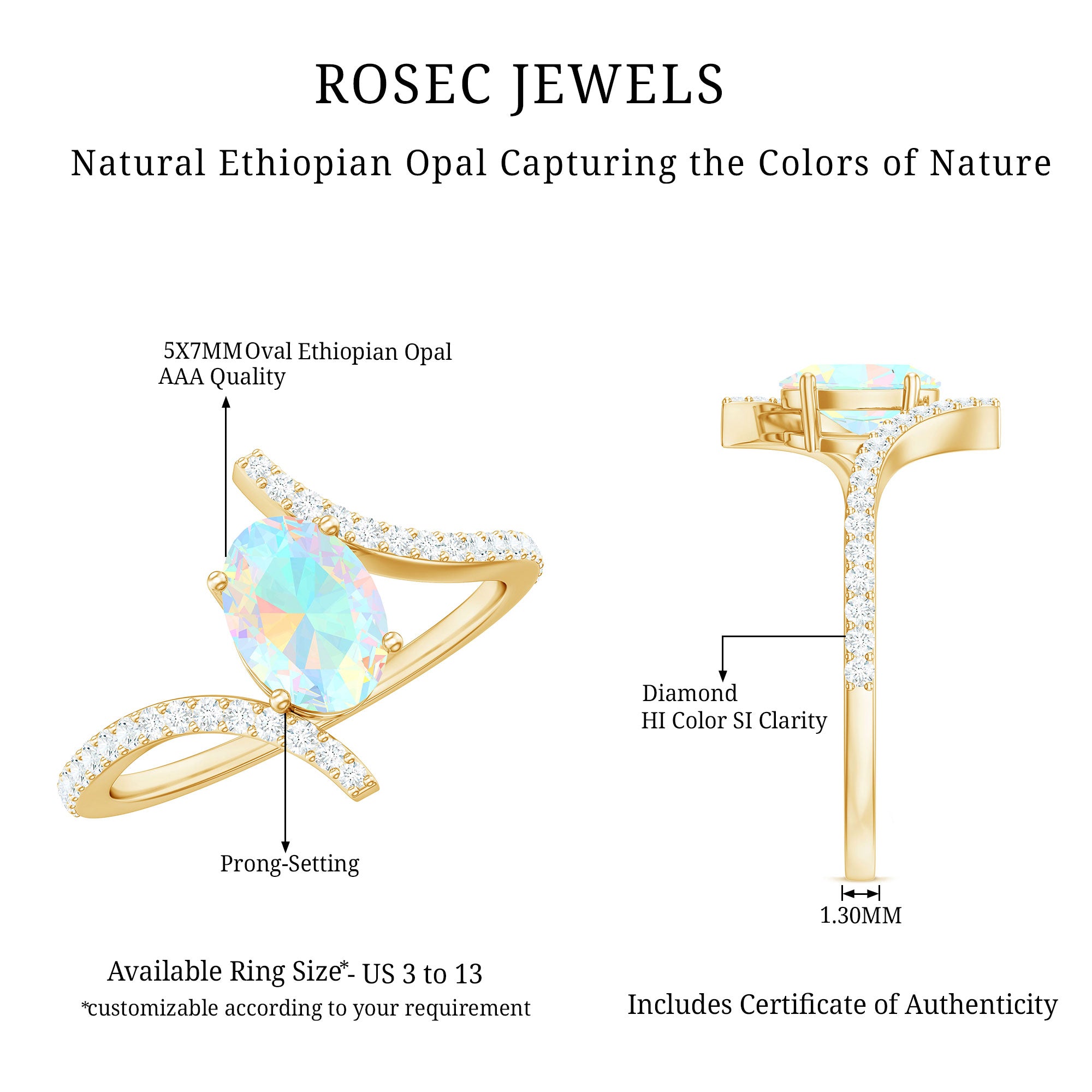 Natural Ethiopian Opal Oval Engagement Ring with Diamond Bypass Shank