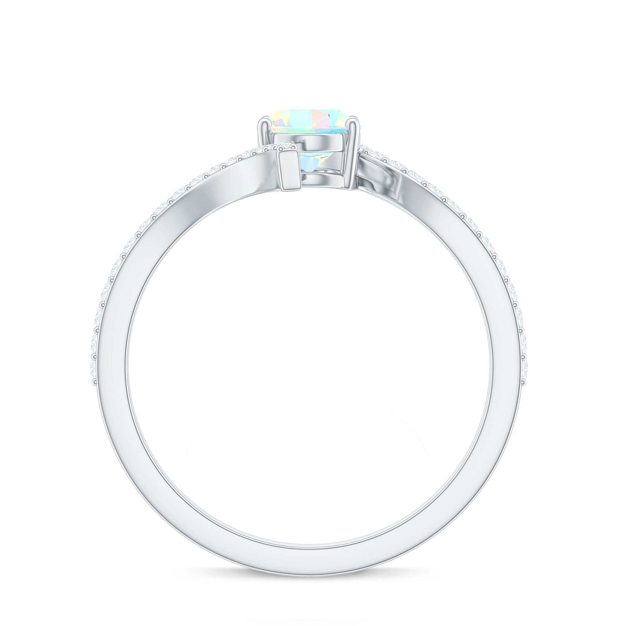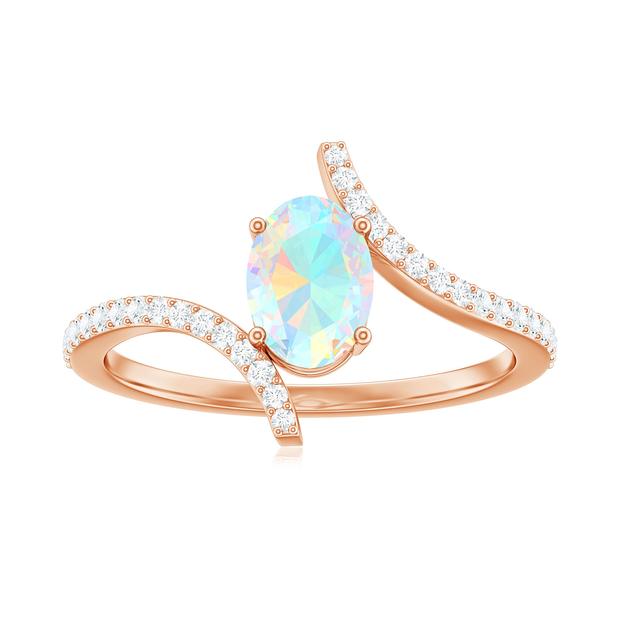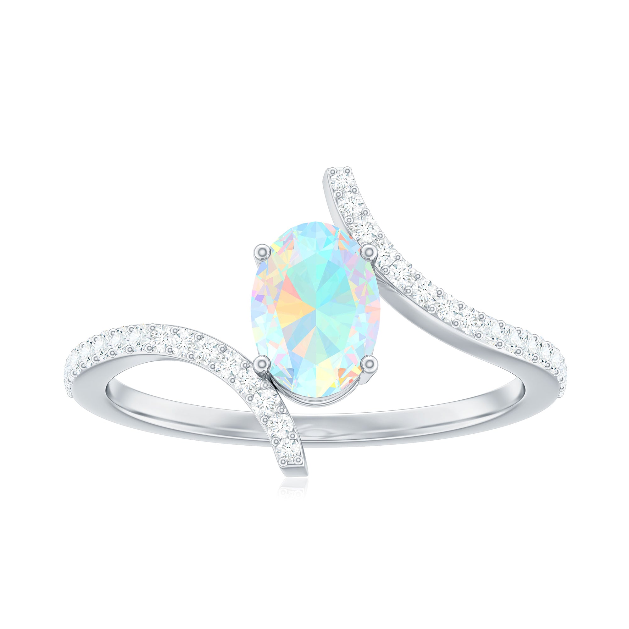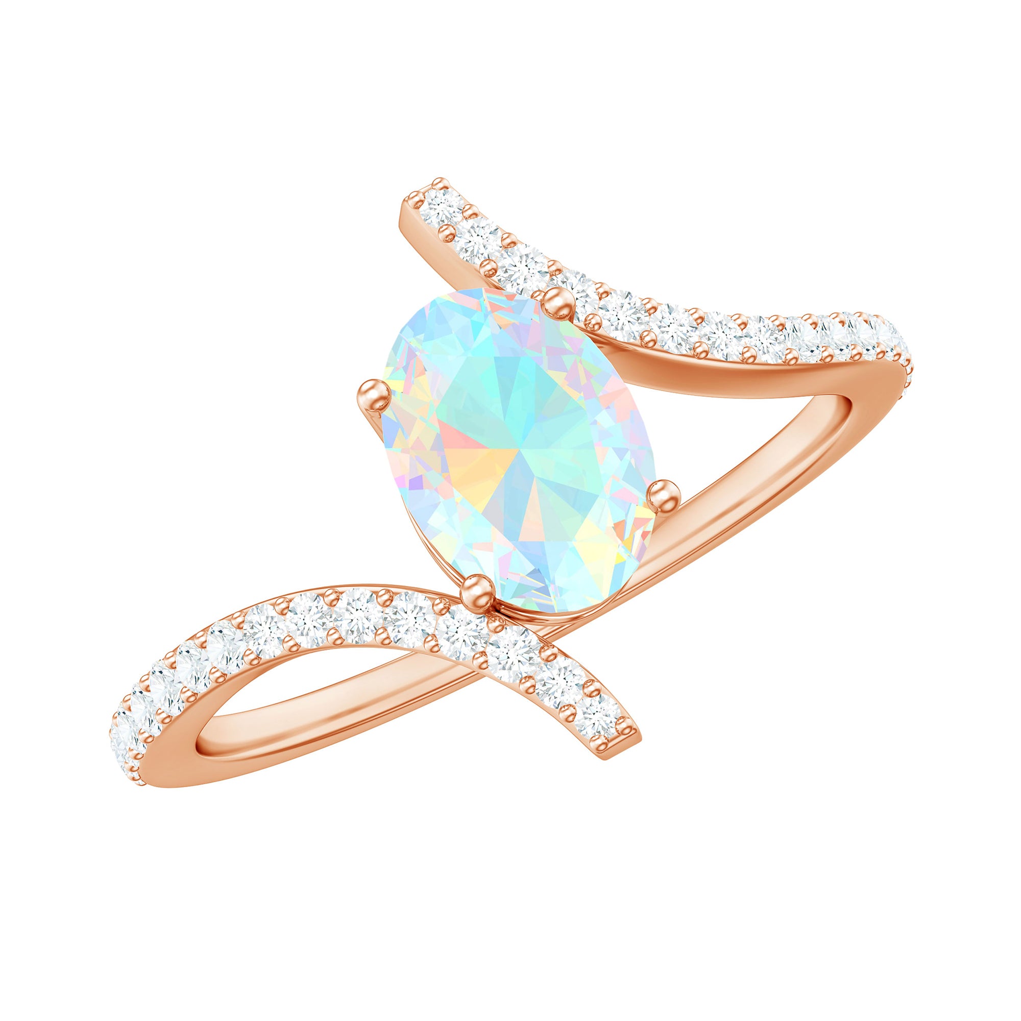 Natural Ethiopian Opal Oval Engagement Ring with Diamond Bypass Shank