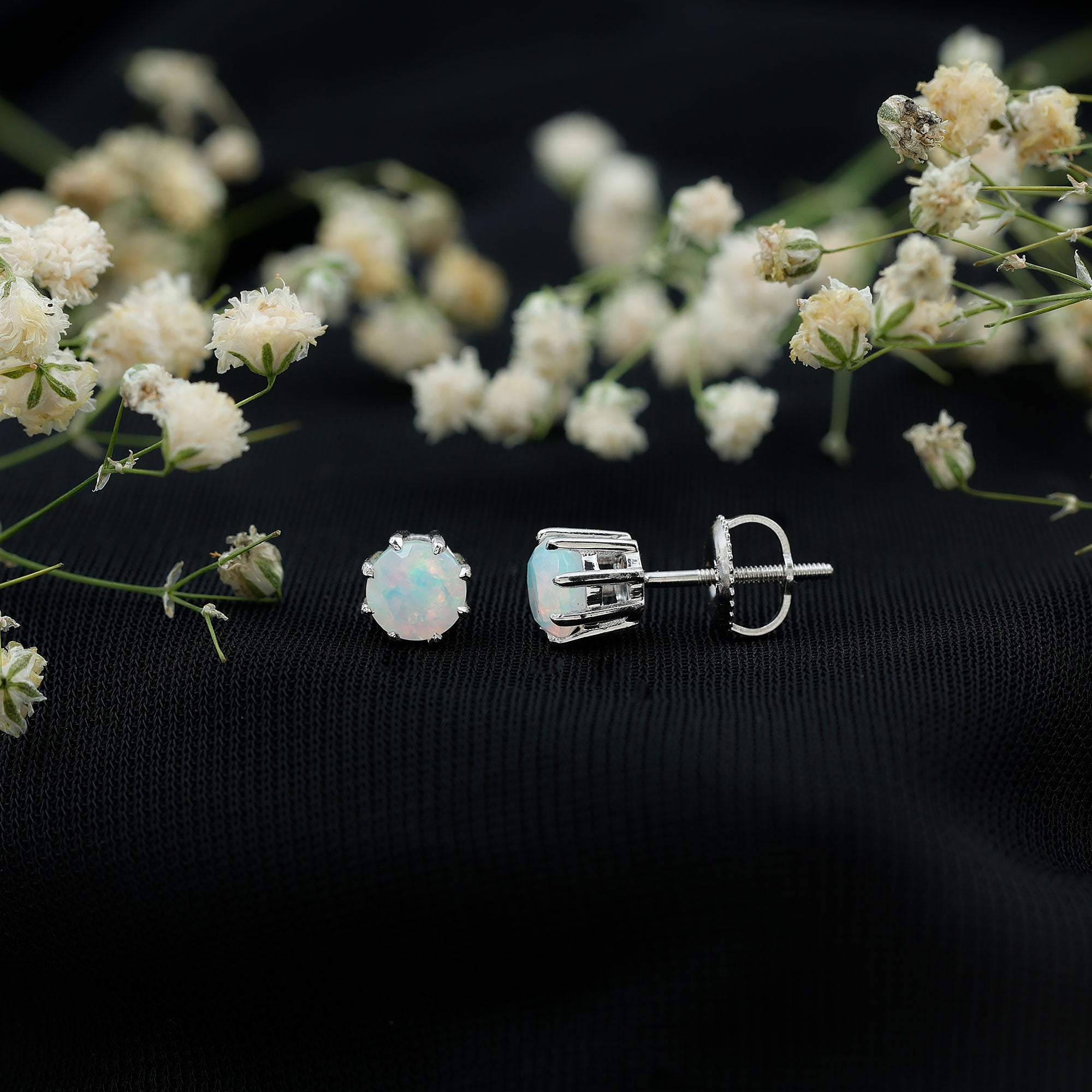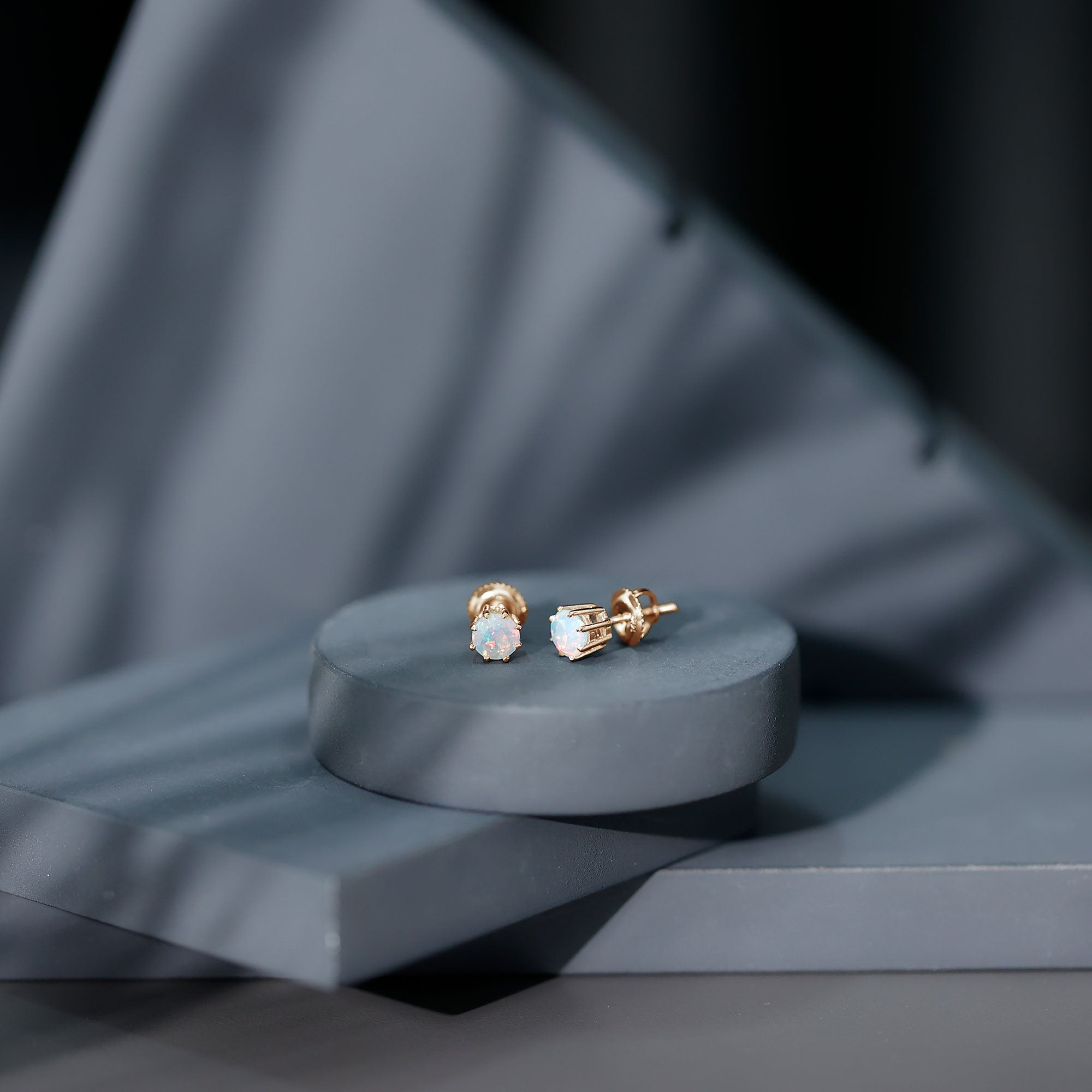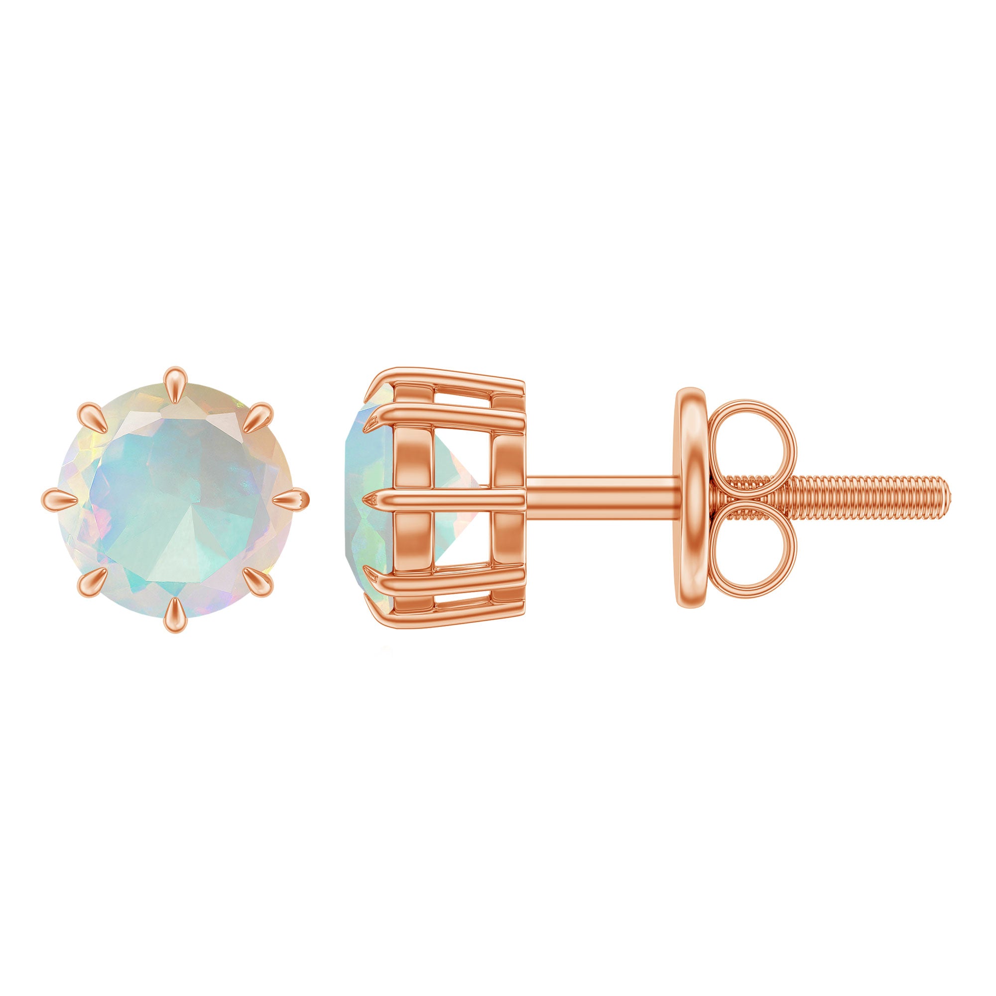 Natural Ethiopian Opal Solitaire Stud Earrings