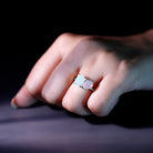 Embrace the enchanting beauty of our Toi Et Moi Ring, a symbol of intertwined love and elegance. The Pear and Emerald Cut Ethiopian Opal gemstones signify unity and connection. Set in a graceful band, this ring captures the essence of ethereal beauty and shared devotion, making it a captivating choice for a meaningful gift.
