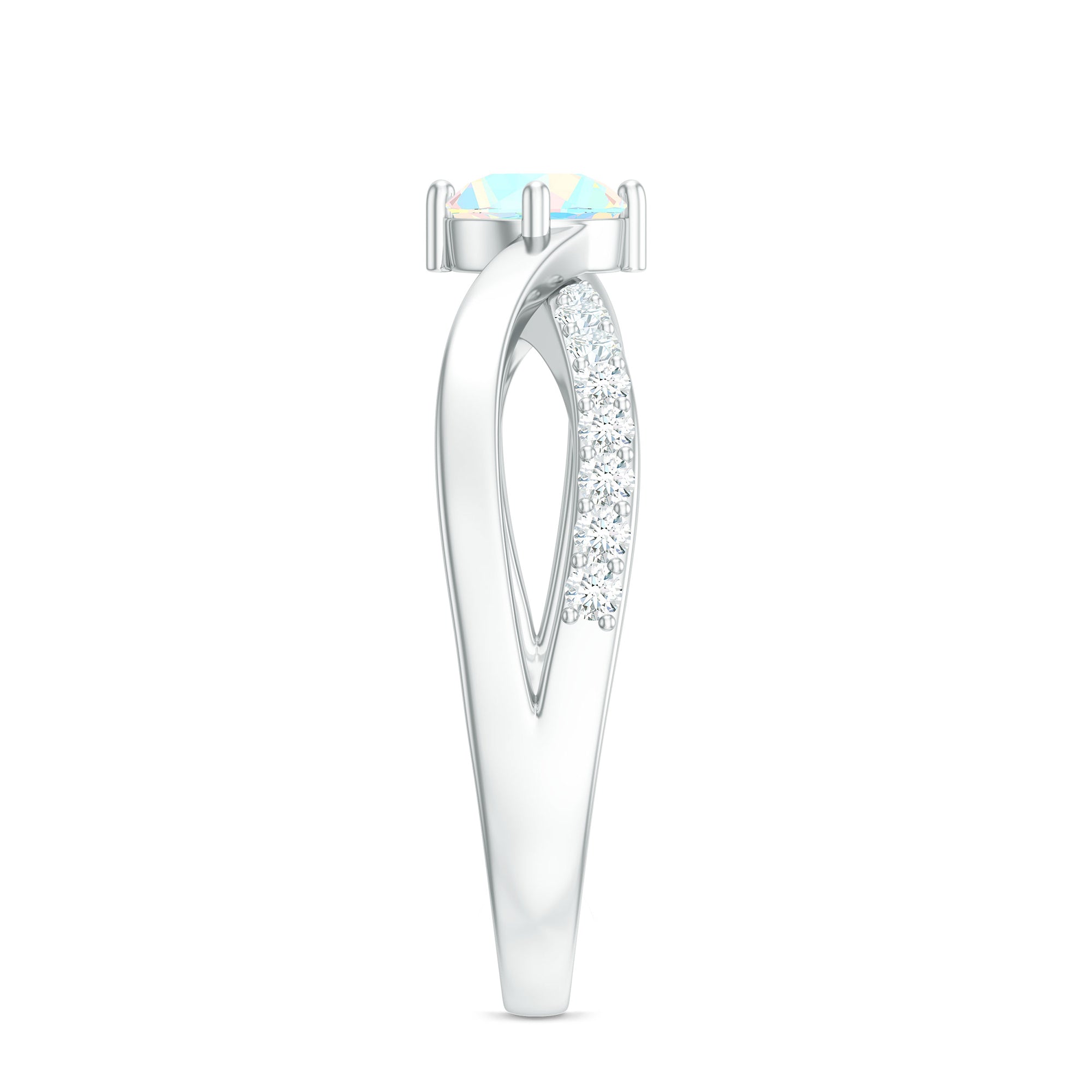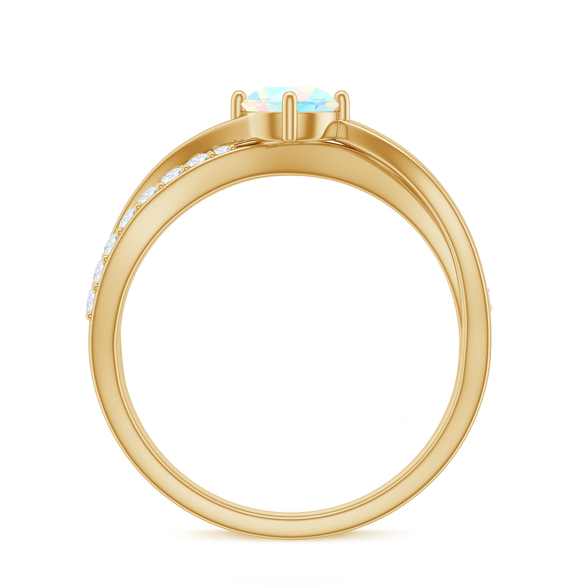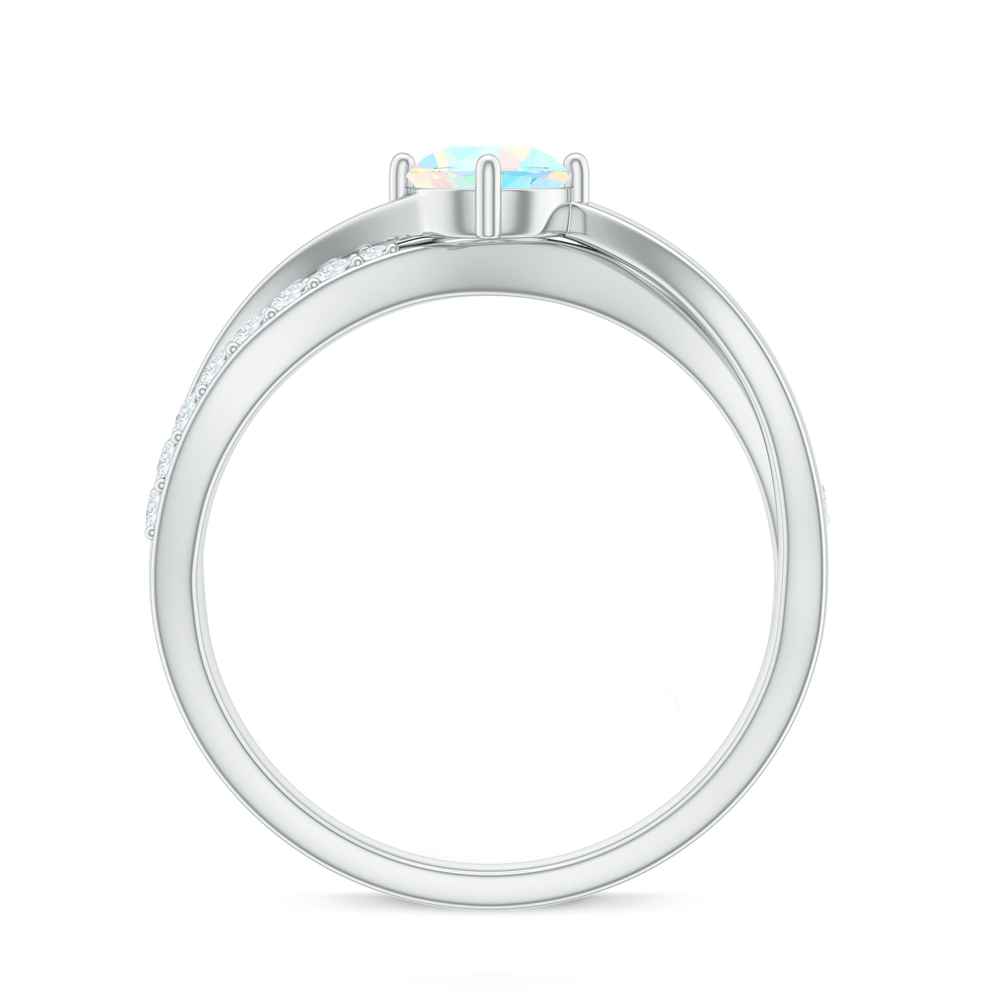 Natural Ethiopian Rainbow Opal Diamond Engagement Ring with Twisted Shank