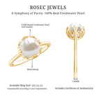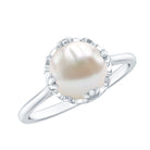 Natural Freshwater Pearl Solitaire Flower Band Ring with Diamond