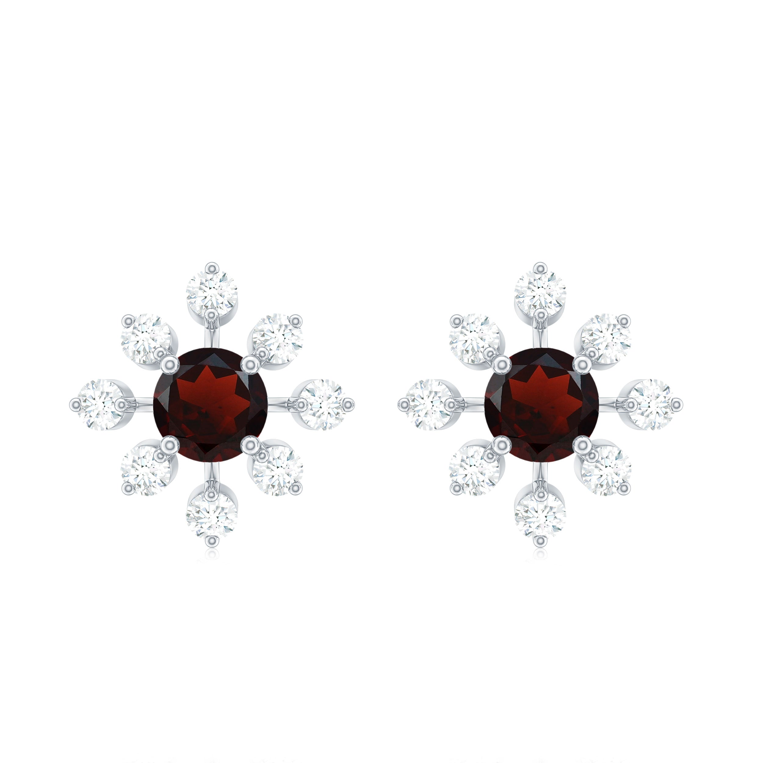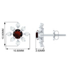 Natural Garnet and Diamond Flower Stud Earrings
