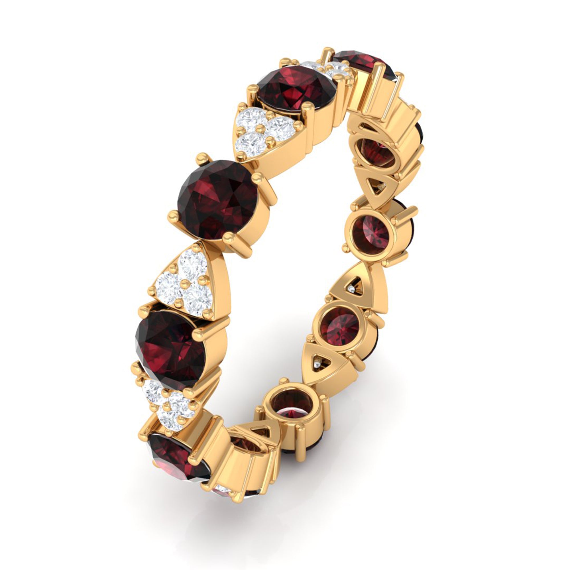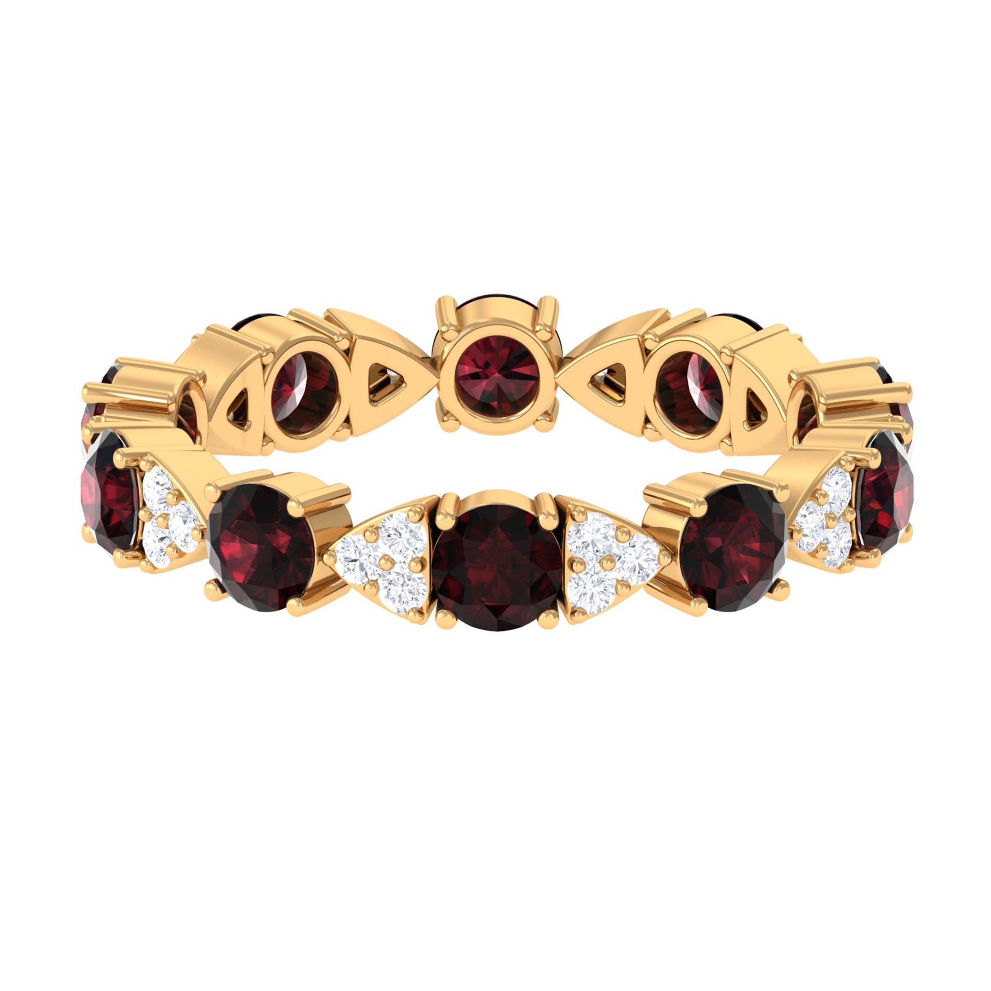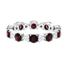 Turn heads and steal hearts with this Fully Eternity Ring, where passion and elegance meet in perfect harmony. Featuring 4 mm Round Shape Garnet stones set in Prong Setting that alternate with dainty trios of sparkling Round Diamond stones, this Eternity Wedding Band captures the eye with its unique rhythm of color and light. The design is both modern and timeless, offering a delicate sparkle that feels effortlessly chic while carrying a message of devotion. Crafted for comfort and style, this Garnet Diamond Ring slips on easily and feels as special as the moments it represents. Arriving in a signature jewelry box, this Garnet Eternity Ring is ready to be gifted as a meaningful token of eternal love, making any occasion unforgettable. Available in a variety of ring sizes, this Red Garnet Ring promises the perfect fit for the person who makes your heart flutter. This eternity ring is a symbol of connection, a reminder of cherished memories, and a sparkling testament to love that lasts forever.