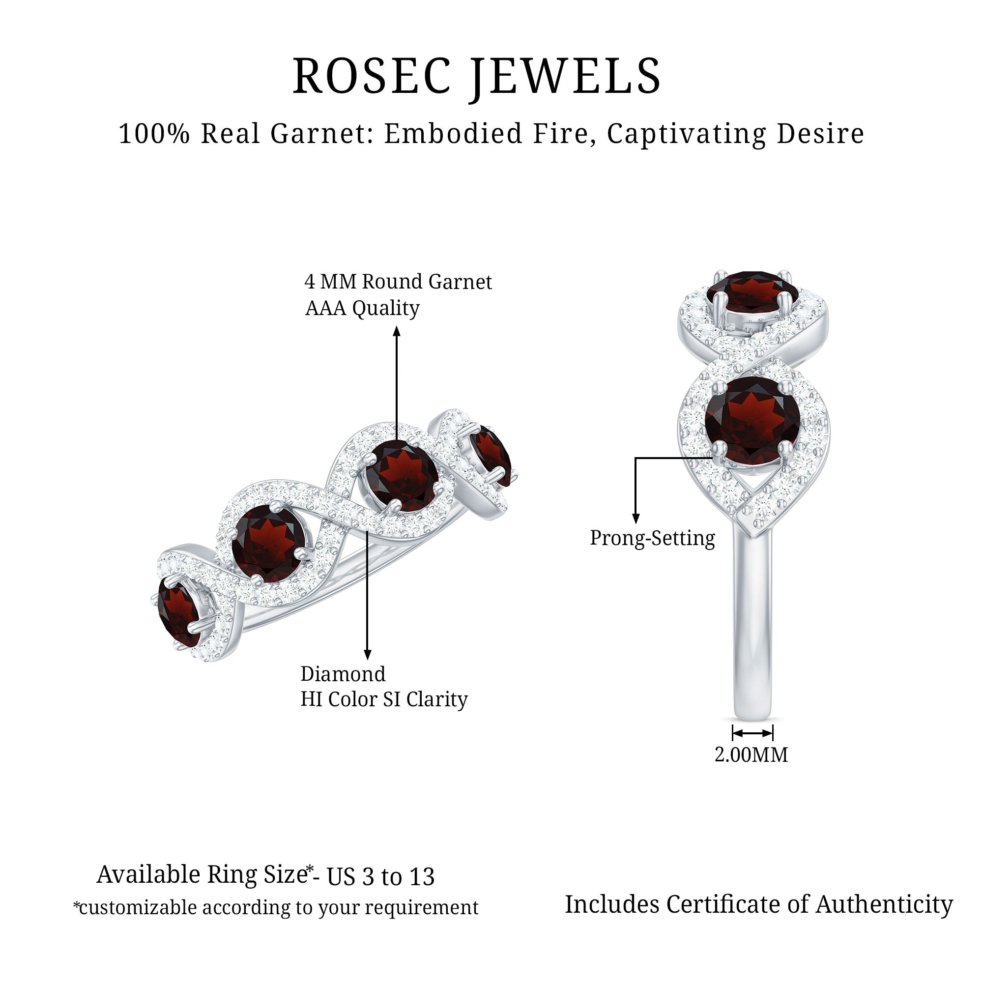 Natural Garnet Diamond Infinity Eternity Ring with Braided Shank