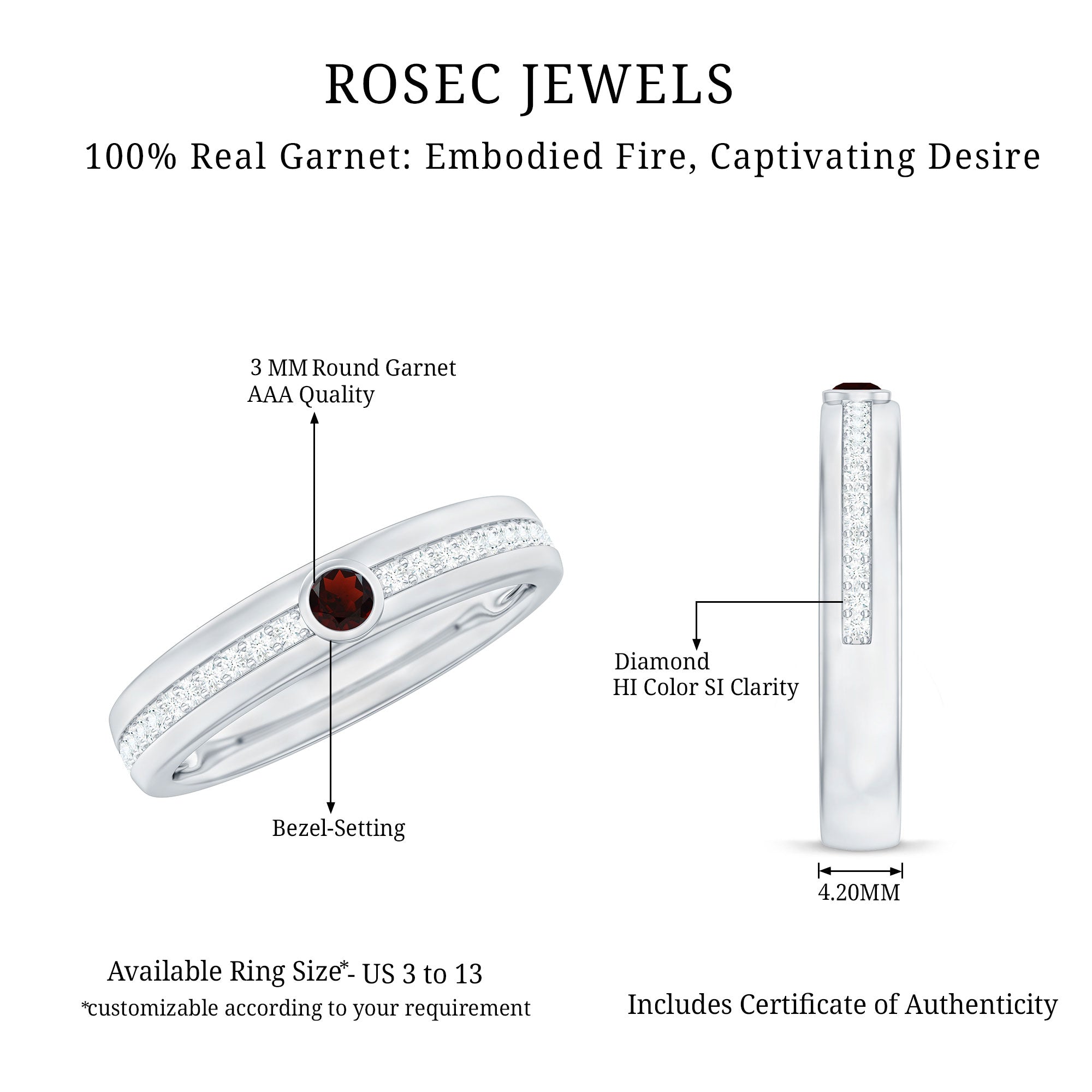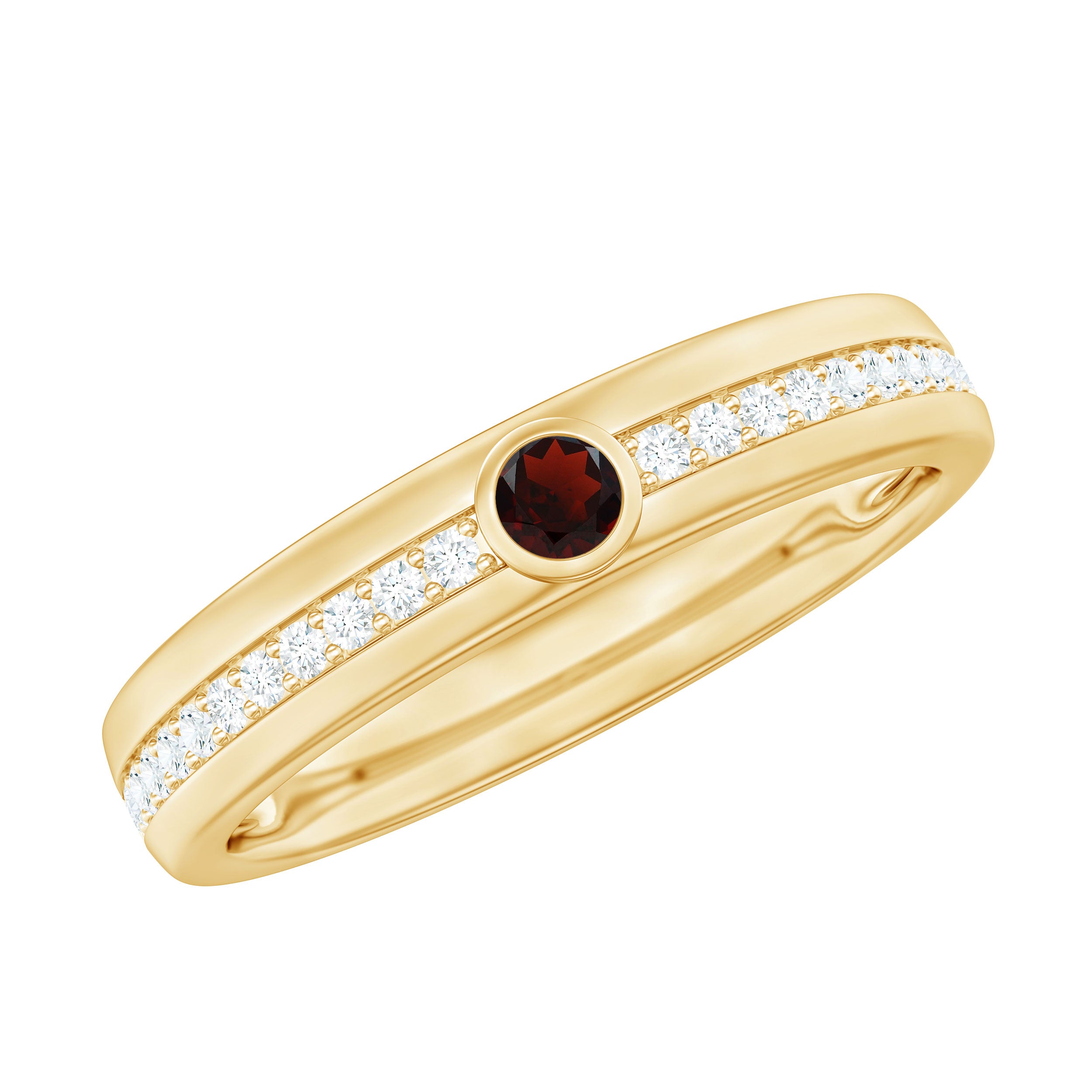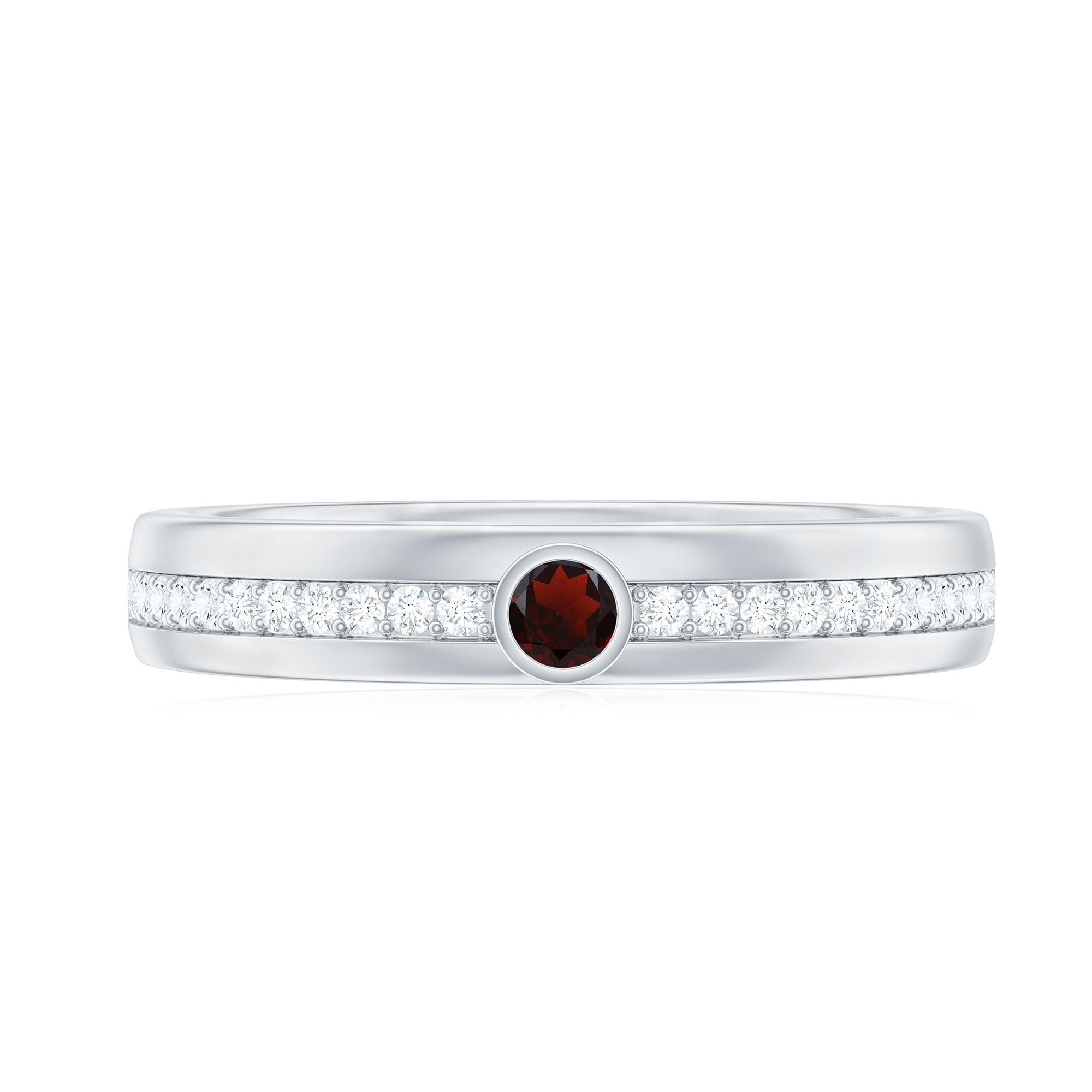 Embrace the beauty of lasting love with this Wide Wedding Band, thoughtfully crafted to celebrate moments that matter. At the center of this bold yet elegant design is a striking 3 mm Round Shape Garnet, glowing with a heartfelt red hue. Flanked by dainty Diamond stones, the center gem shines even brighter, creating a soft, romantic sparkle that moves gracefully across the wide band. The broader band adds a modern touch while still maintaining a timeless charm, making this Garnet Wedding Ring perfect for those who want a ring that feels both meaningful and uniquely stylish. Whether worn alone as a striking wedding band or paired with other rings to create a personalized stack, this Garnet Diamond Ring stands out with grace. Presented in a signature jewelry box and available in various ring sizes, this Red Garnet Ring is ready to be gifted as a beautiful symbol of eternal love. With its warm glow and elegance, this Bezel Set Wedding Band becomes a reminder of the love you carry every day.