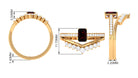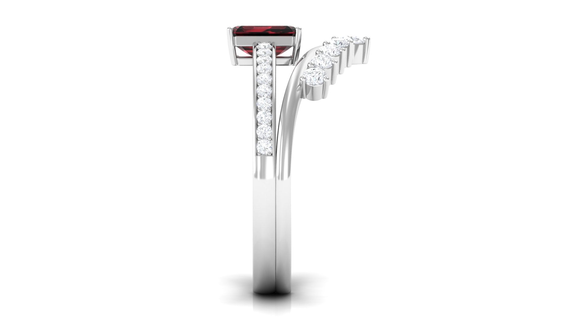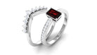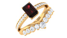 Natural Garnet Emerald Cut Engagement Ring With Diamond Wedding Band