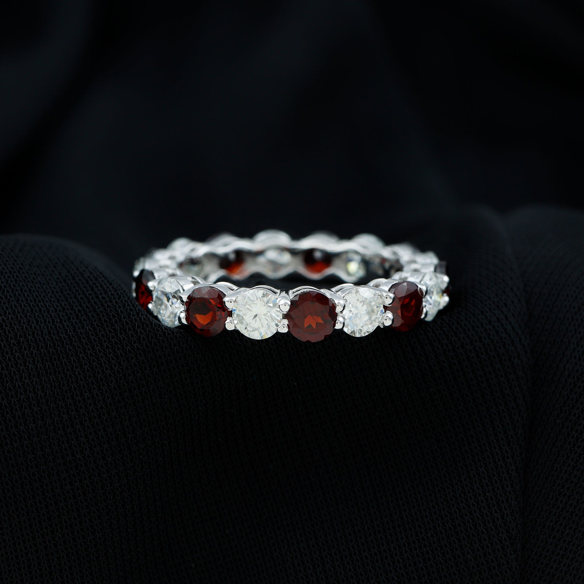 Natural Garnet Eternity Wedding Ring with Moissanite