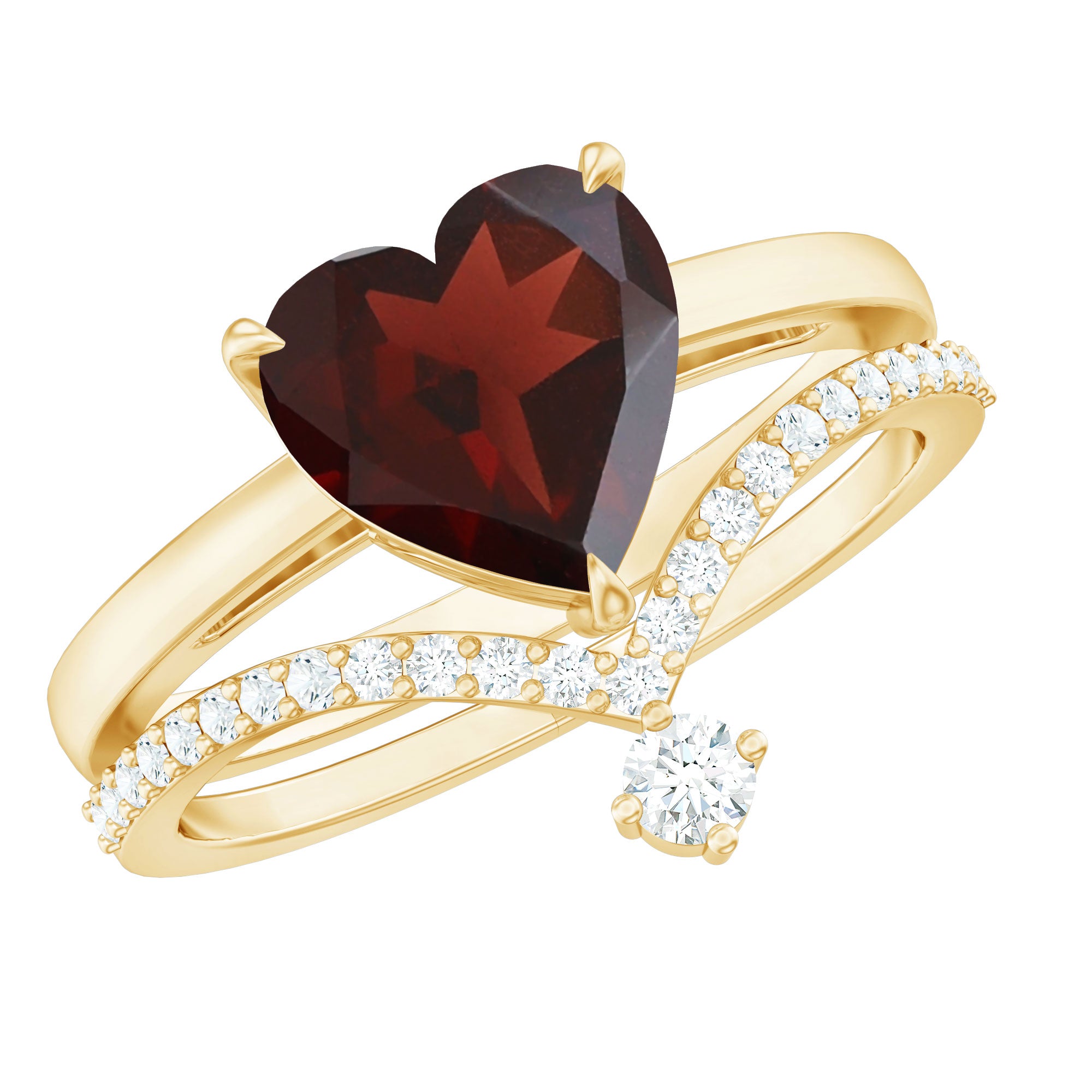 A token of love, passion and timeless commitment, this Wedding Bridal Ring Set is a stunning way to celebrate a special bond. The centerpiece of the Solitaire Engagement Ring is an 8 mm Heart Shape Garnet that glows with romantic red tones, capturing the essence of devotion and affection. Accompanying it, the Curved Wedding Band is delicately adorned with sparkling Diamond stones, enhancing the brilliance of the engagement ring and creating a harmonious, flowing design that symbolizes unity and shared journeys. This thoughtfully designed Heart Shaped Wedding Ring Set balances elegance with meaningful detail, making it perfect for couples who appreciate romance with a modern twist. The passionate hue of AAA Quality Garnet represents deep love and courage, while the HI-SI Quality Diamond stones reflect eternal commitment and cherished memories. Presented in a signature jewelry box and available in a variety of sizes, this Garnet Wedding Ring Set is ready to gift, ideal for engagements, anniversaries or as a heartfelt surprise for someone truly special. Romantic, meaningful and beautifully crafted, this Wedding Engagement Ring Set turns every moment into a celebration of love that will be treasured forever.