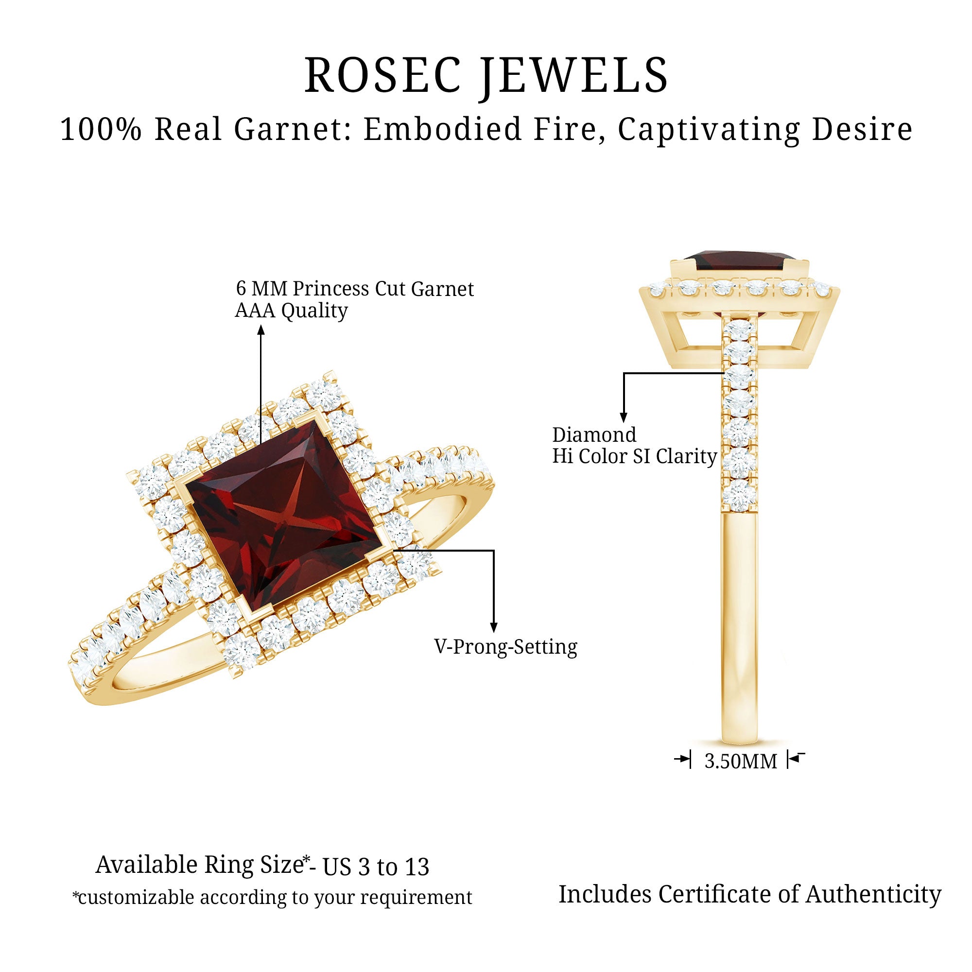 Natural Garnet Princess Cut Engagement Ring with Diamond Halo