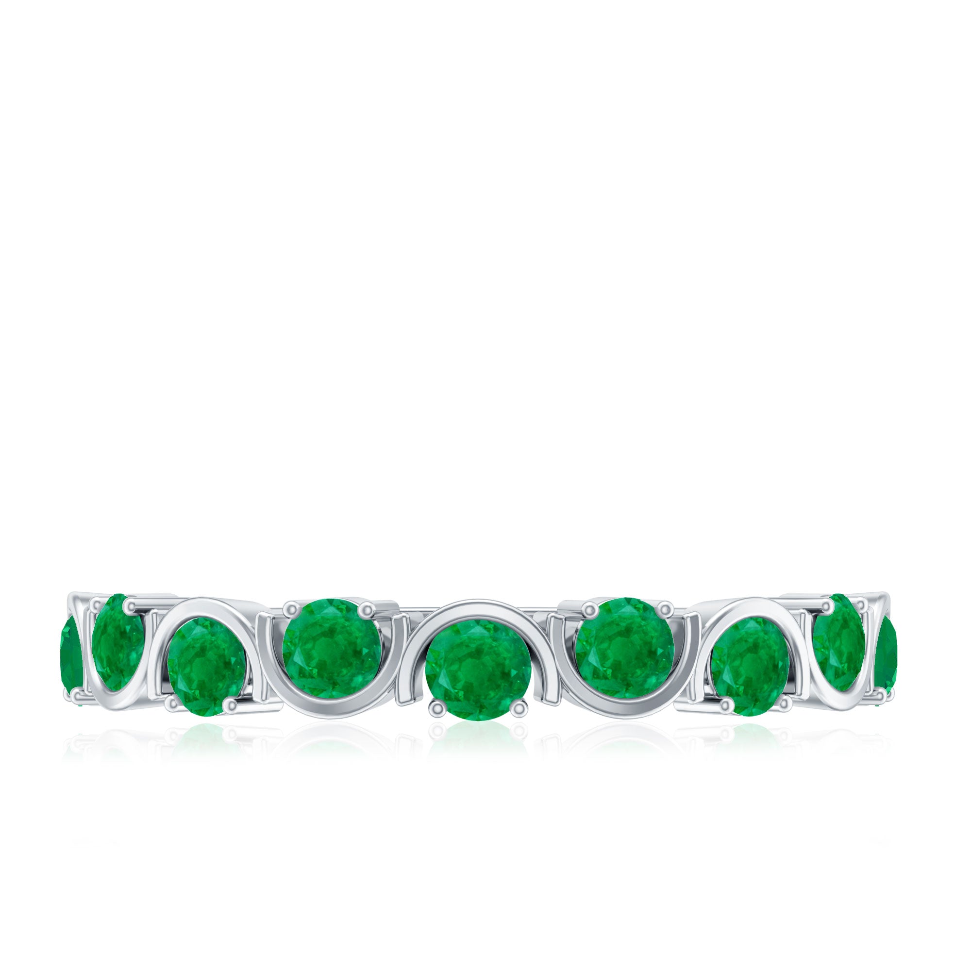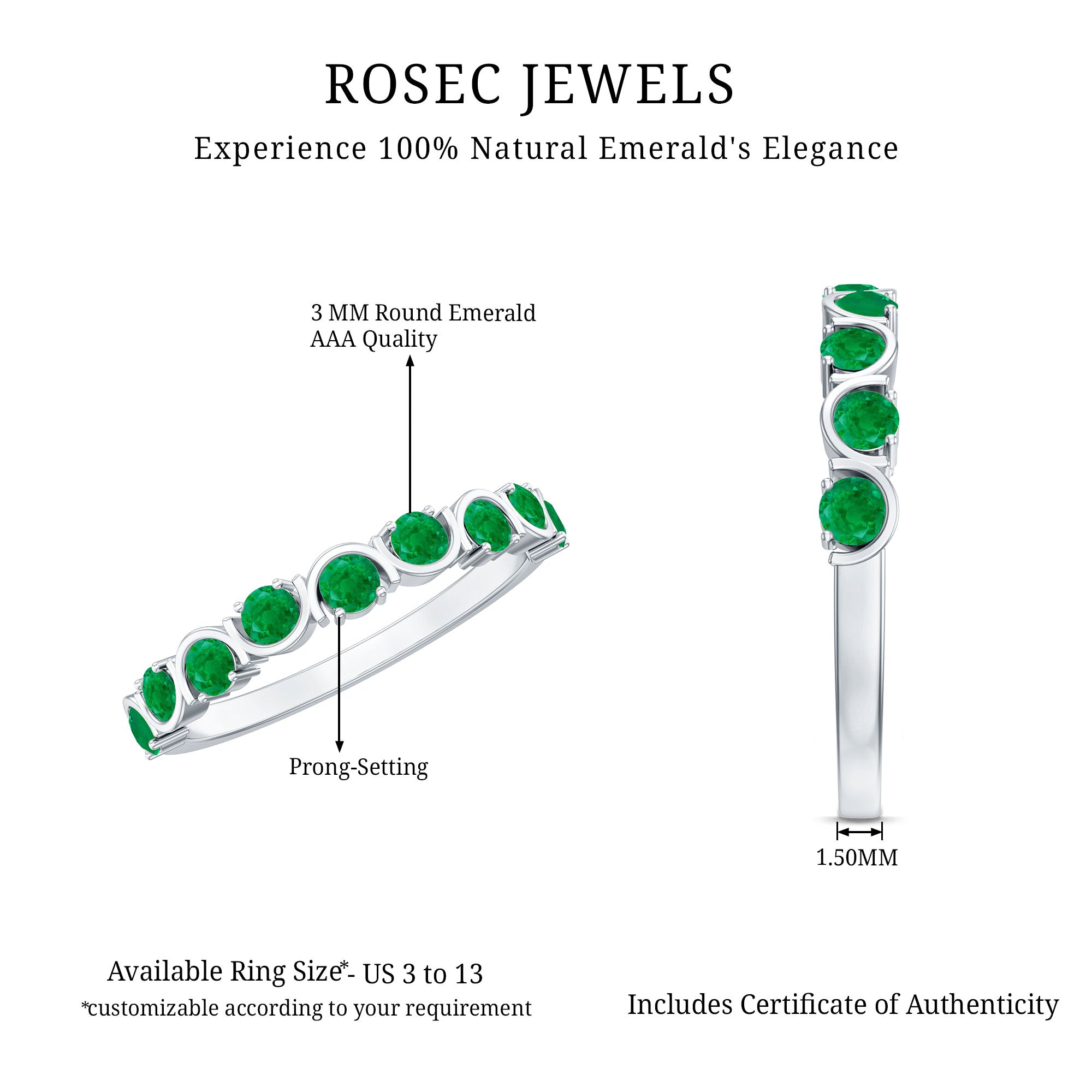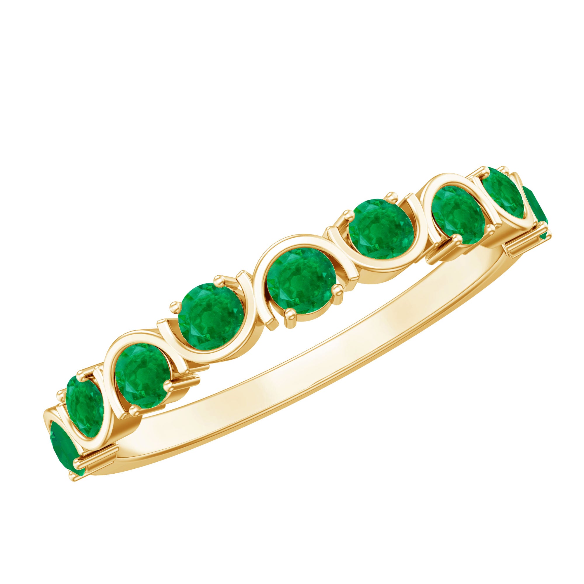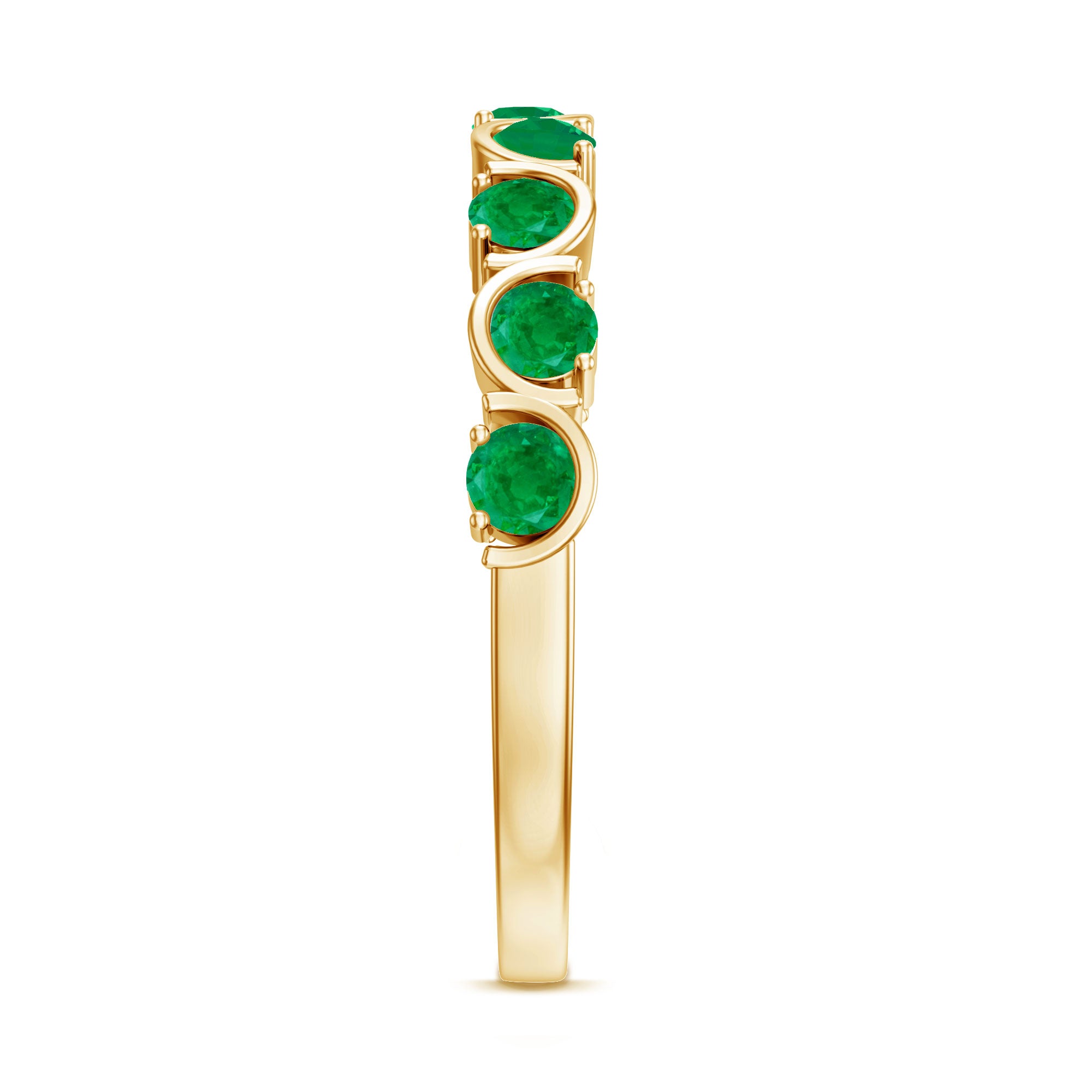 Elevate everyday elegance with this stunning Half Eternity Ring. Each vibrant 3 mm Round Shape Emerald is set in a unique pattern along half the band, making this Stackable Ring the perfect blend of meaningful and stylish. Designed to be worn alone for a subtle touch of elegance or stacked with your favorite rings for a personalized look, this Emerald Ring for Women is as versatile as it is timeless. The half eternity design delicately frames your finger, creating an elegant design that catches the light and the eye with every movement. This Emerald Green Ring is a symbol of growth, renewal and the endless cycle of love, perfectly embodying the spirit of the May birthstone. Available in a range of sizes to ensure the ideal fit, this Emerald Stackable Ring arrives in a chic jewelry box, ready to mark birthdays, anniversaries or simply the joy of everyday moments.
