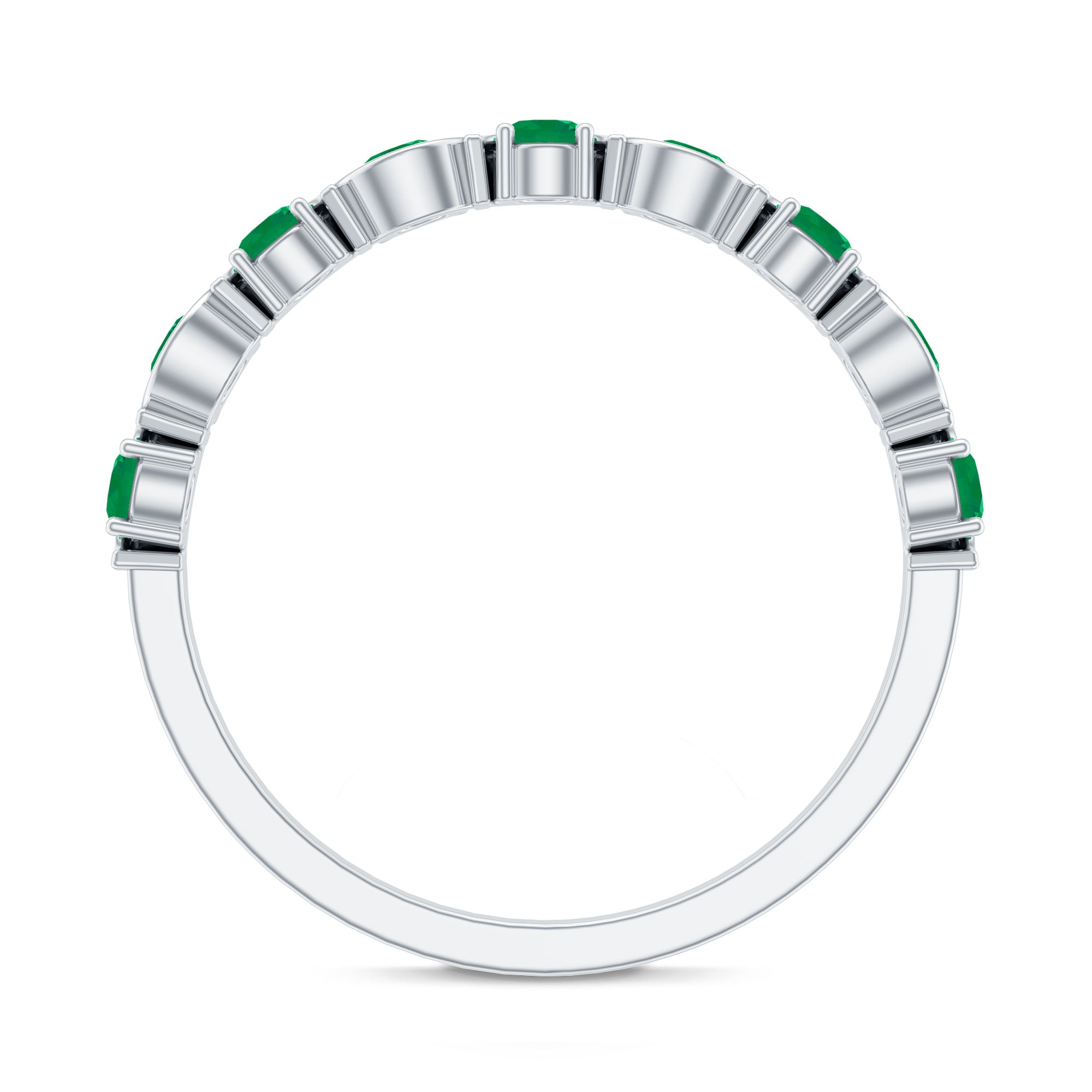 Natural Green Emerald Half Eternity Stackable Ring