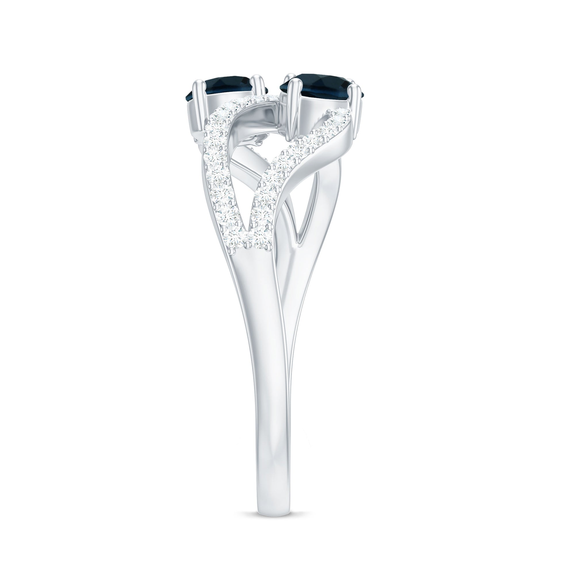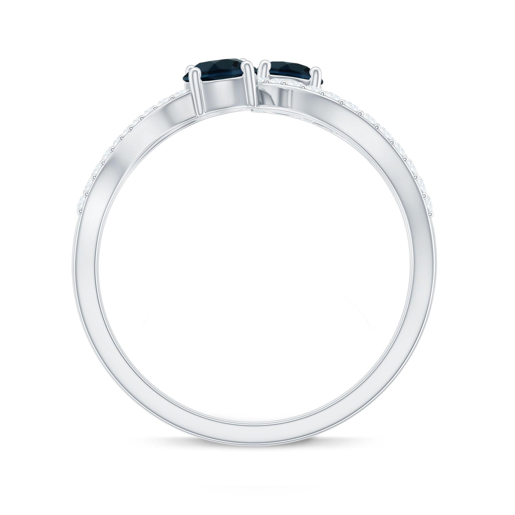 Natural London Blue Topaz 2 Stone Promise Ring with Diamond
