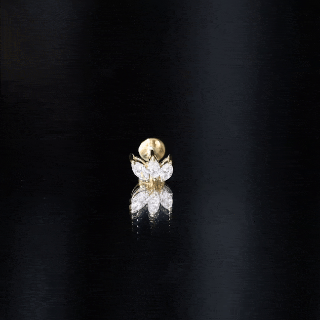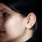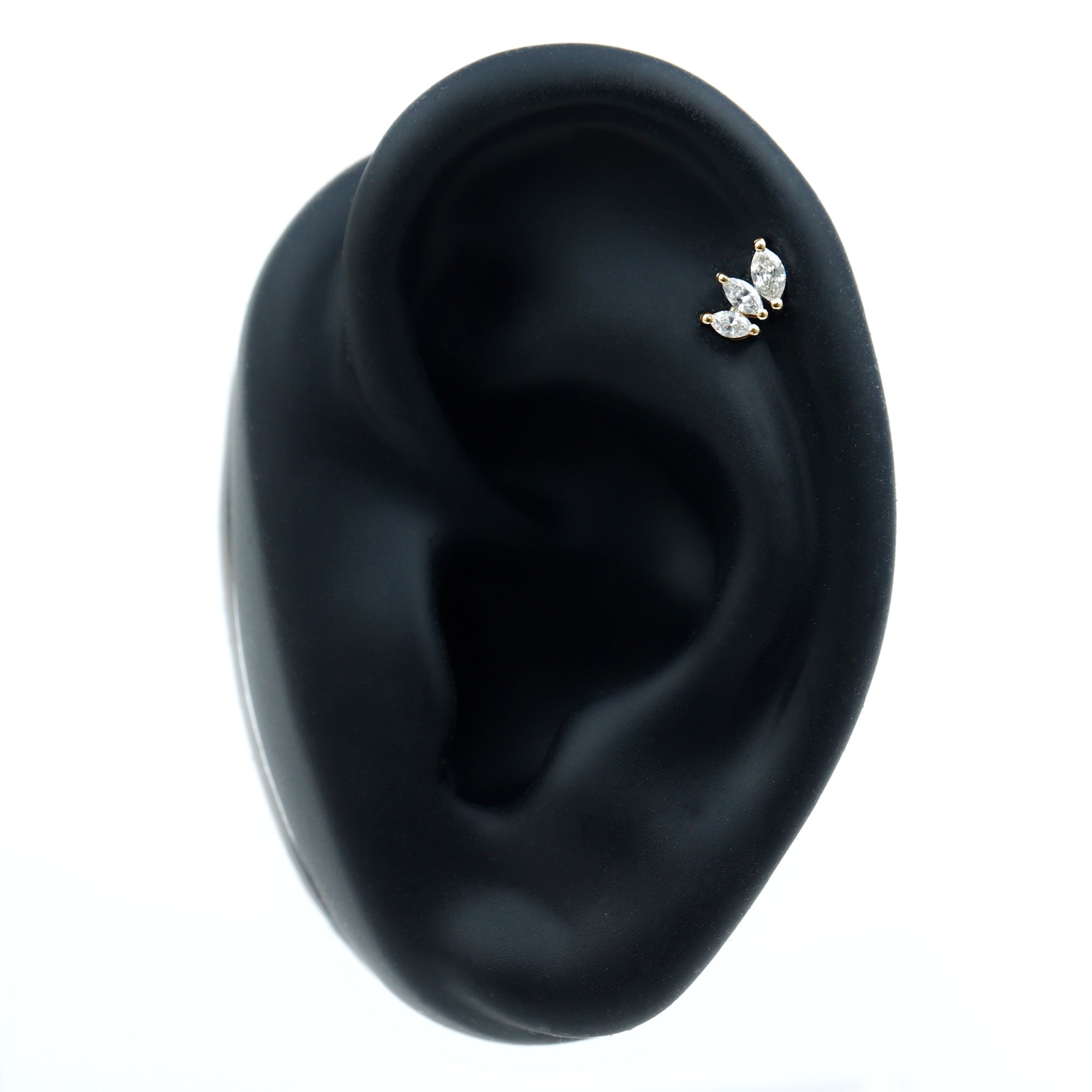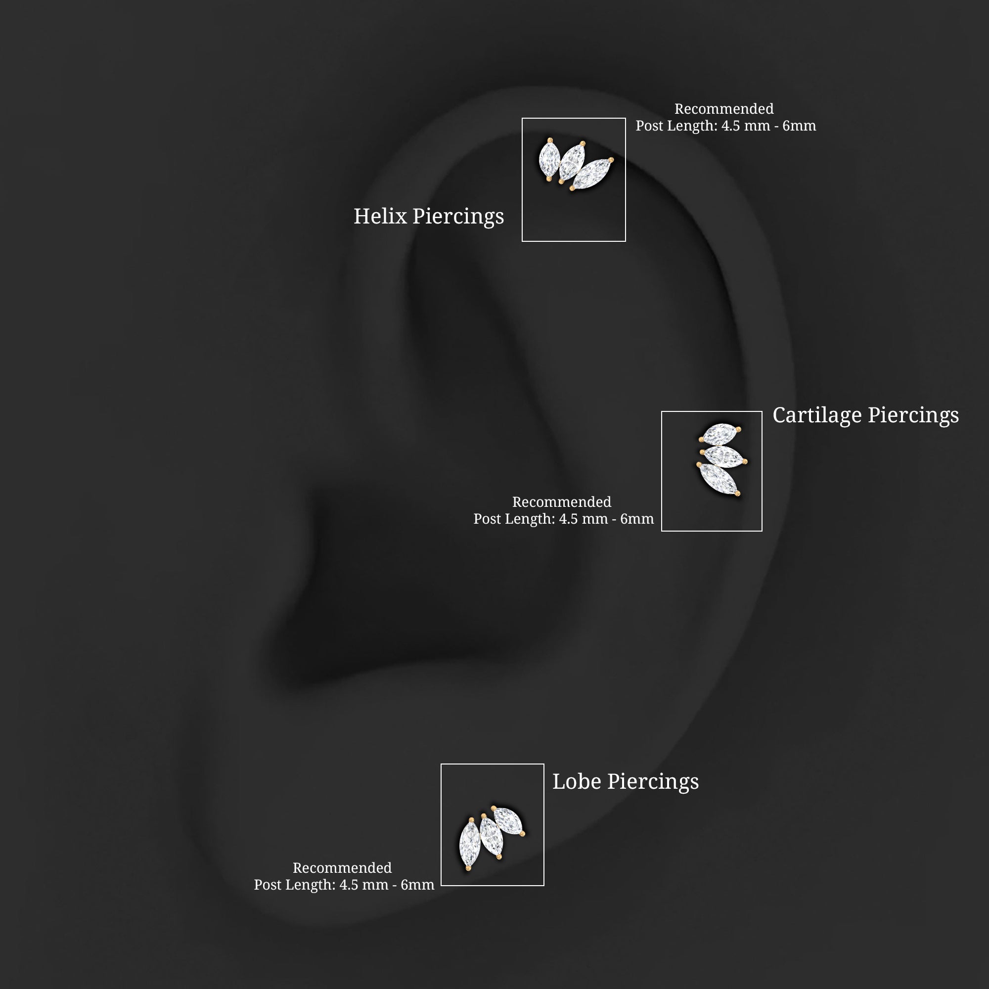 Elevate your ear game with the Diamond Helix Earring, a sleek and modern accessory designed to bring sparkle to your look. This striking piece features three marquise cut diamonds, expertly arranged in a captivating design and set in prong setting. Designed for maximum styling flexibility, this Three Stone Earring can be worn on multiple piercings, including the helix, cartilage, tragus, conch, or upper lobe. Its versatile design allows you to mix and match with other earrings, creating personalized combinations or statement ear stacks that reflect your unique style. The flat back closure ensures a secure and comfortable fit, keeping the Marquise Diamond Earring perfectly in place without irritation, ideal for all-day wear or special occasions. Crafted with precision and attention to detail, the Diamond Ear Piercing Earring combines elegance and contemporary flair in one compact piece. Whether you are looking to add a subtle sparkle to your everyday ensemble or want a standout piece for nights out, this piece delivers style, sophistication, and versatility.