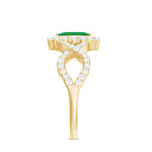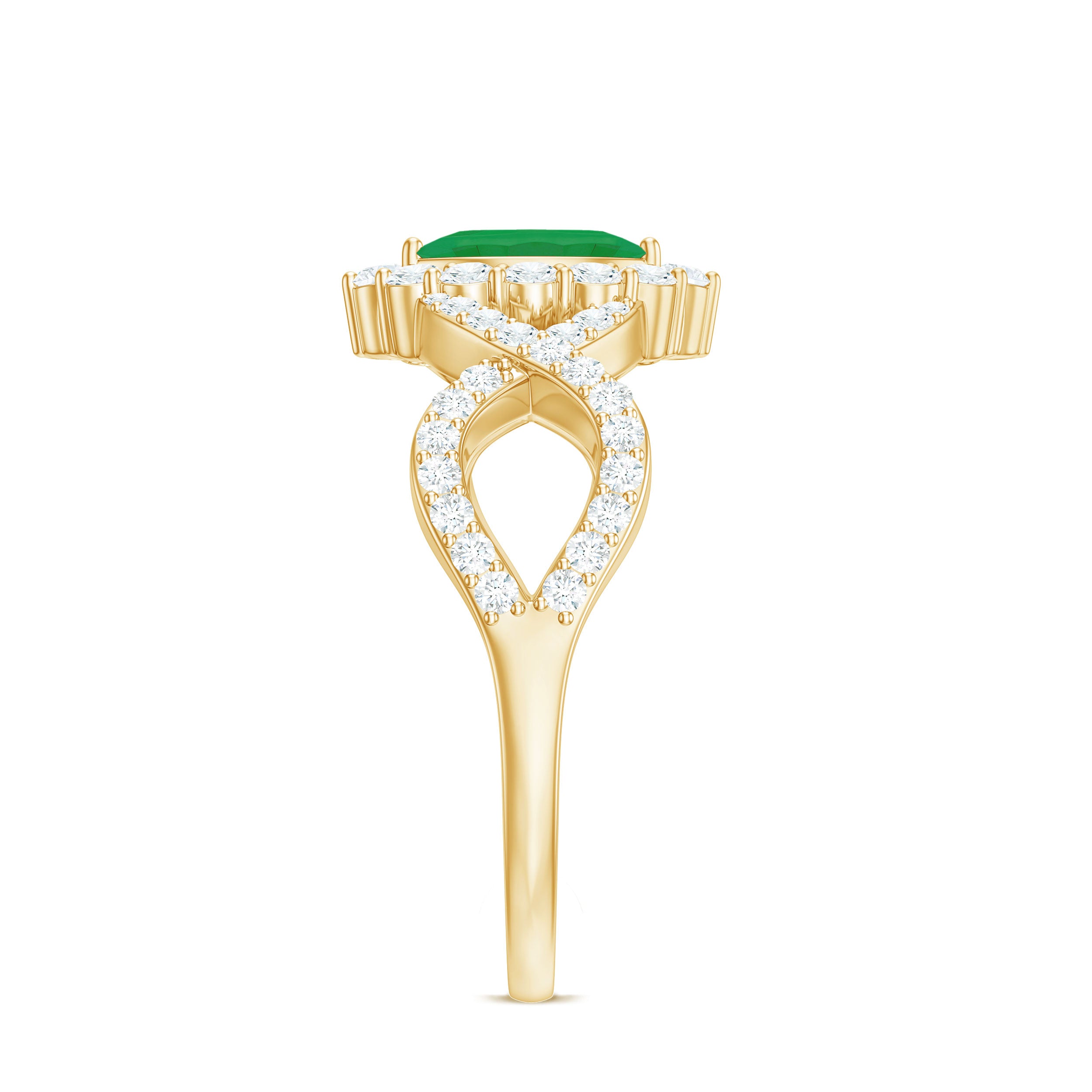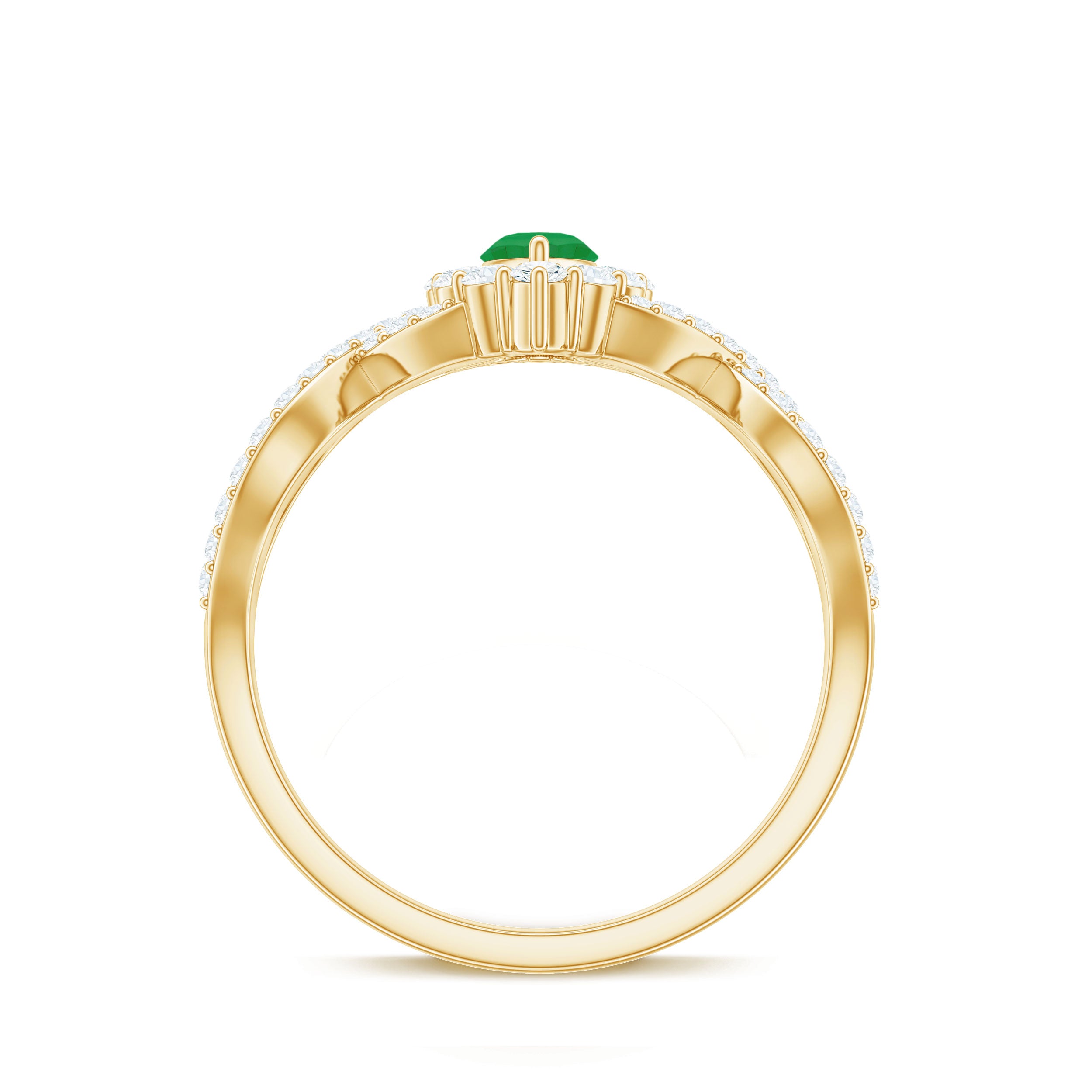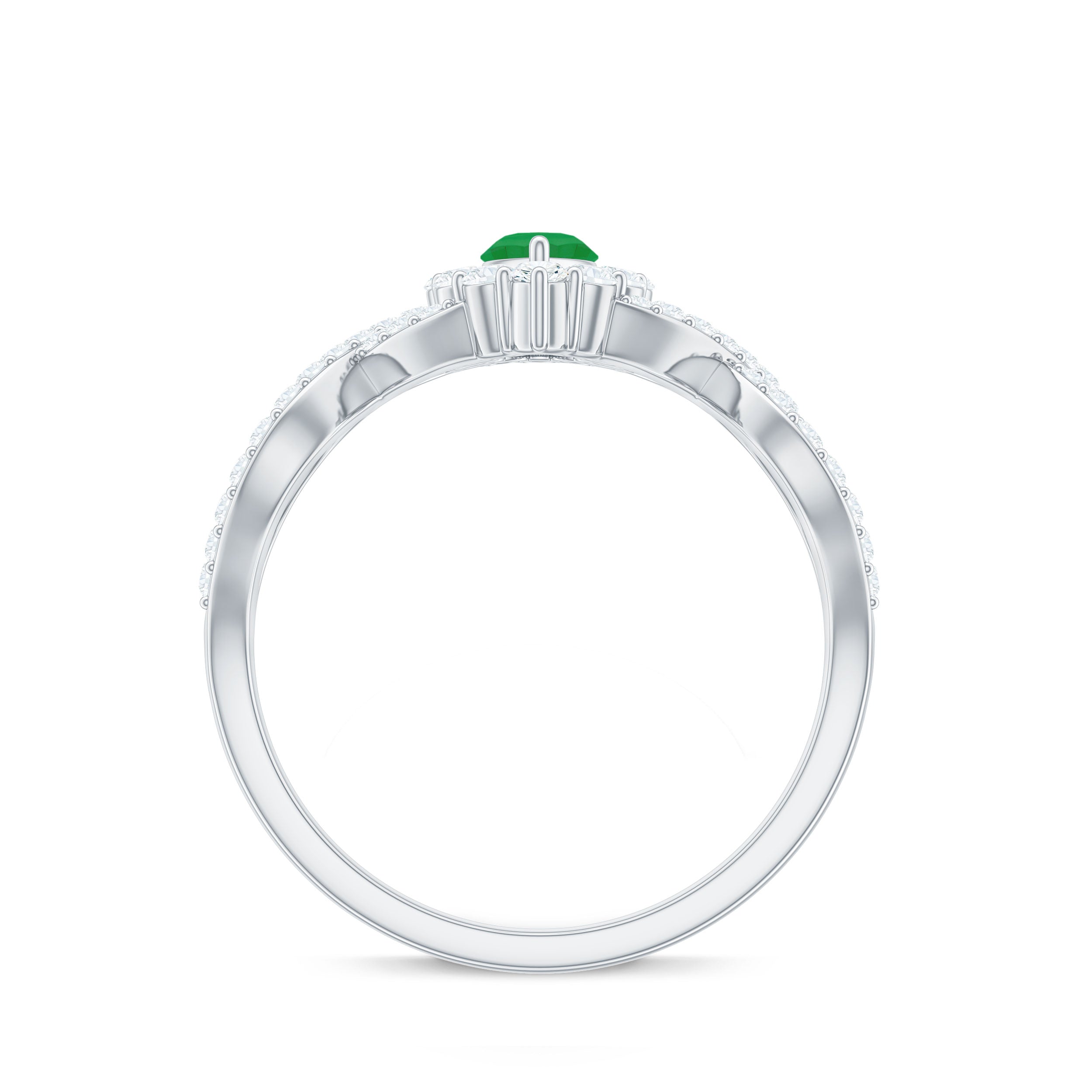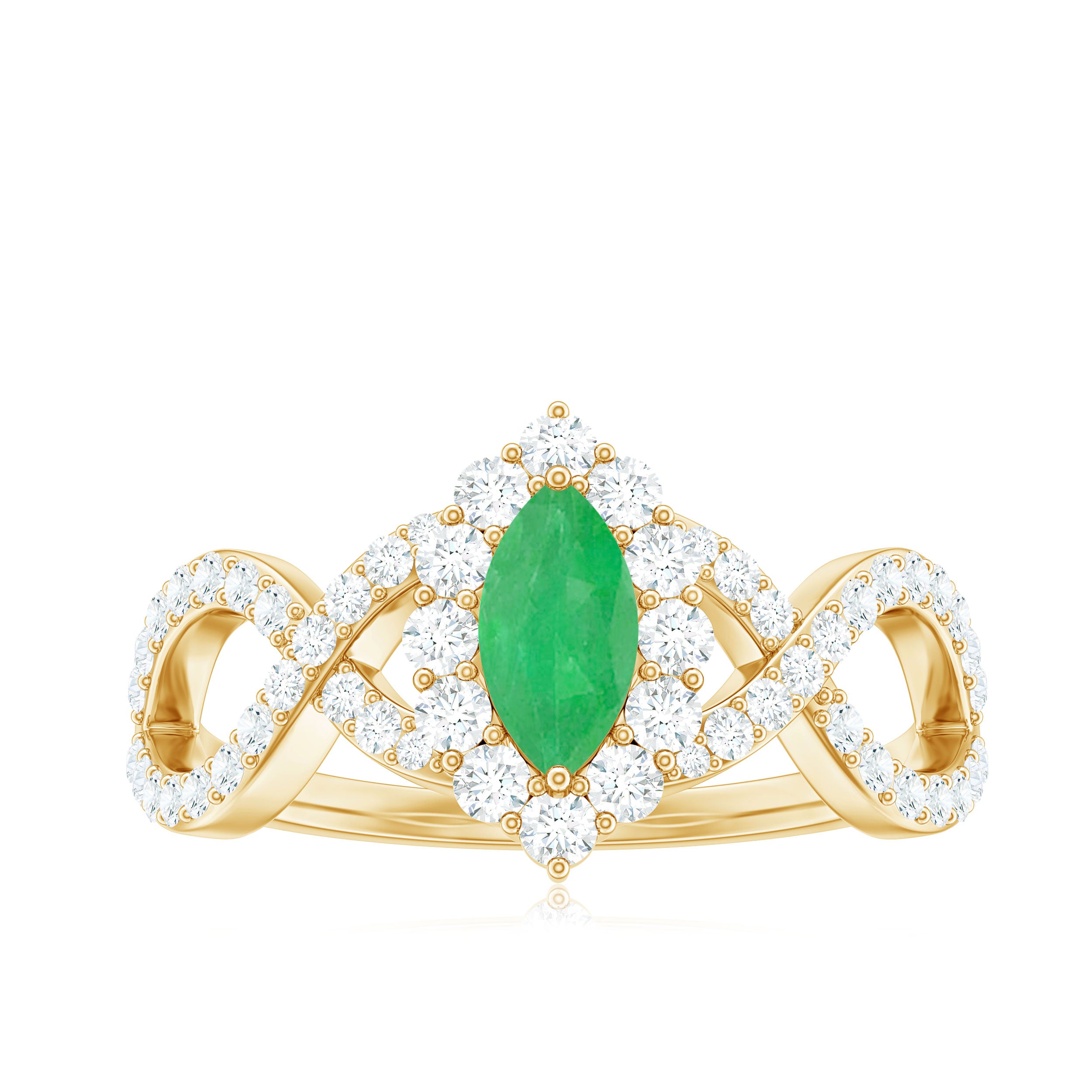 Natural Marquise Emerald Diamond Halo Engagement Ring with Crossover Shank