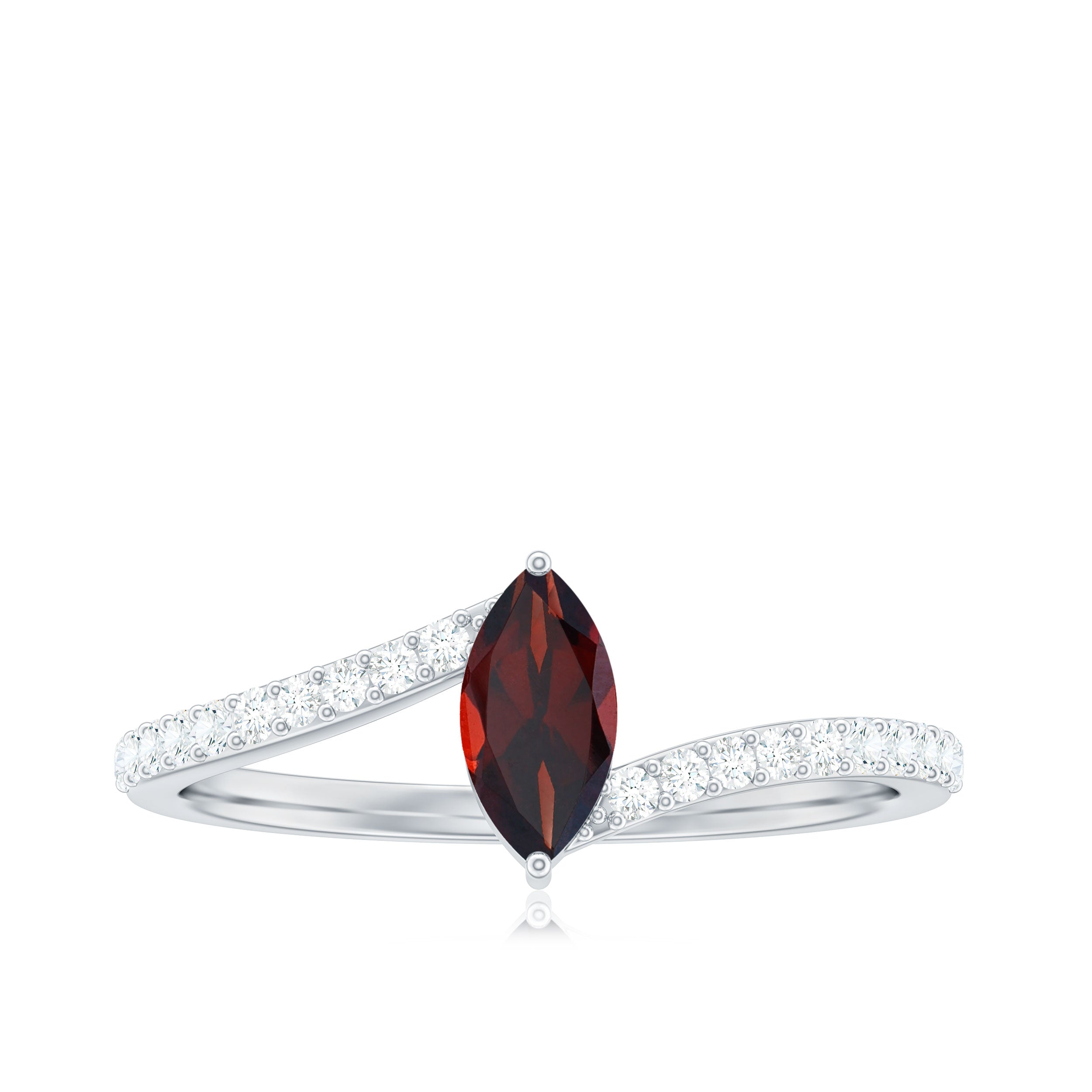 Natural Marquise Garnet Promise Ring with Diamond Bypass Shank