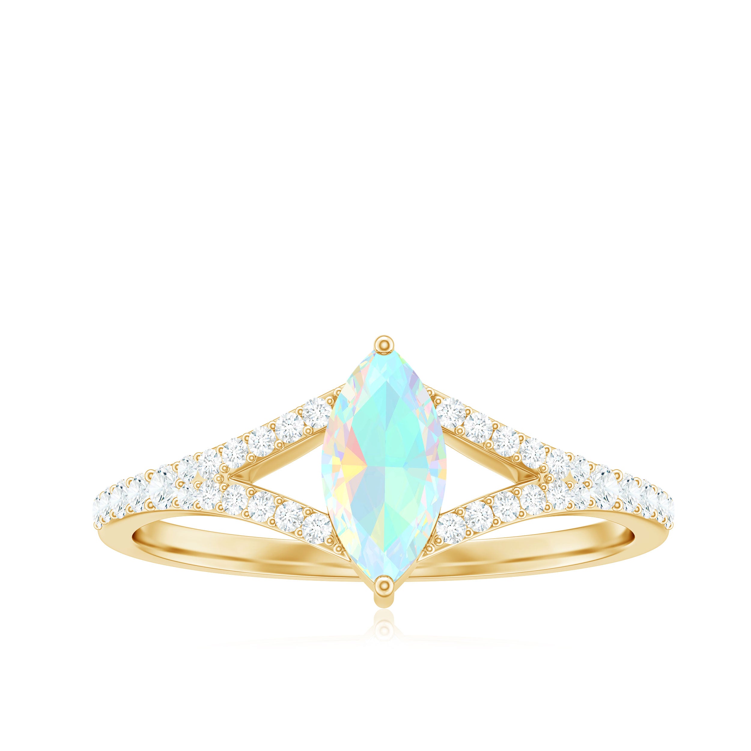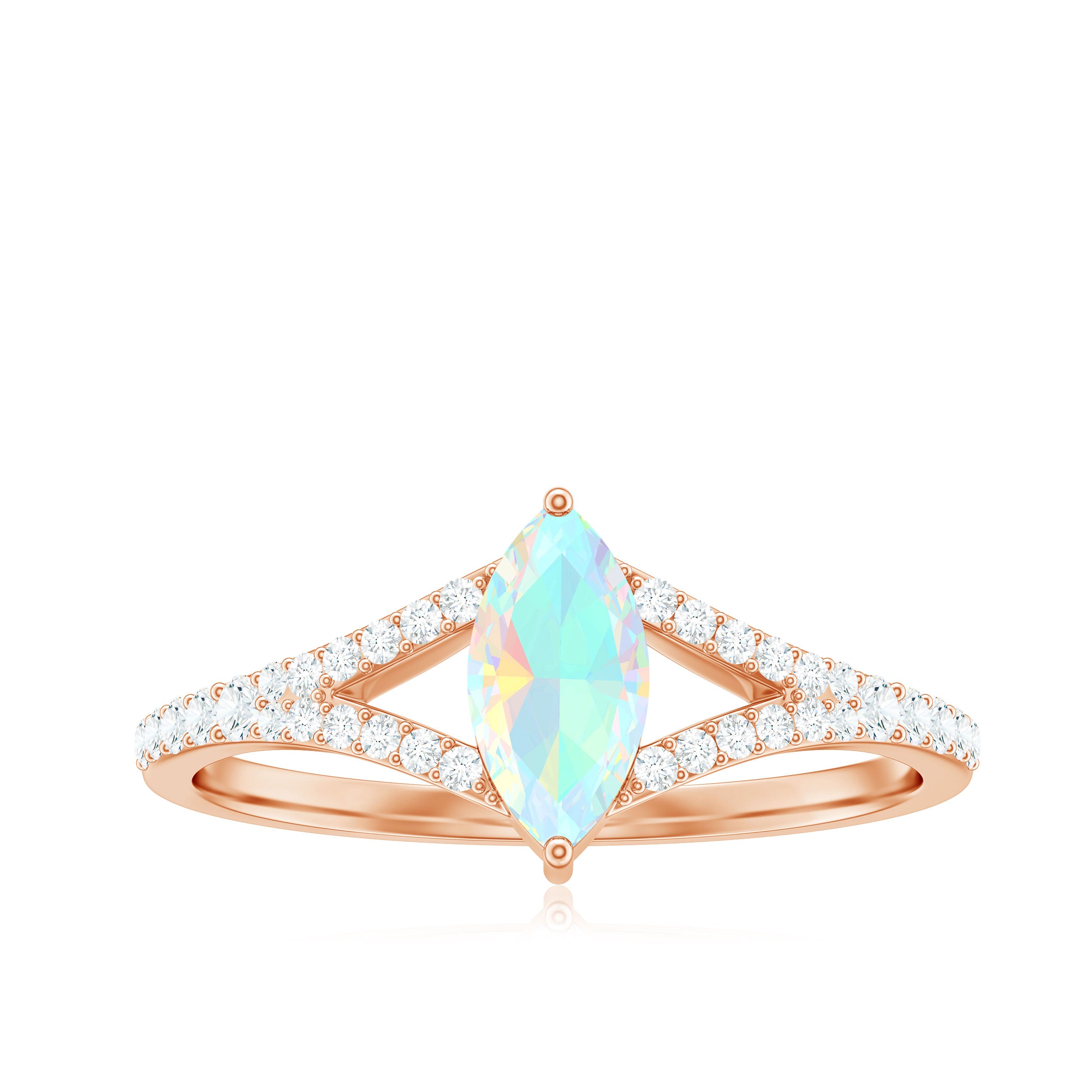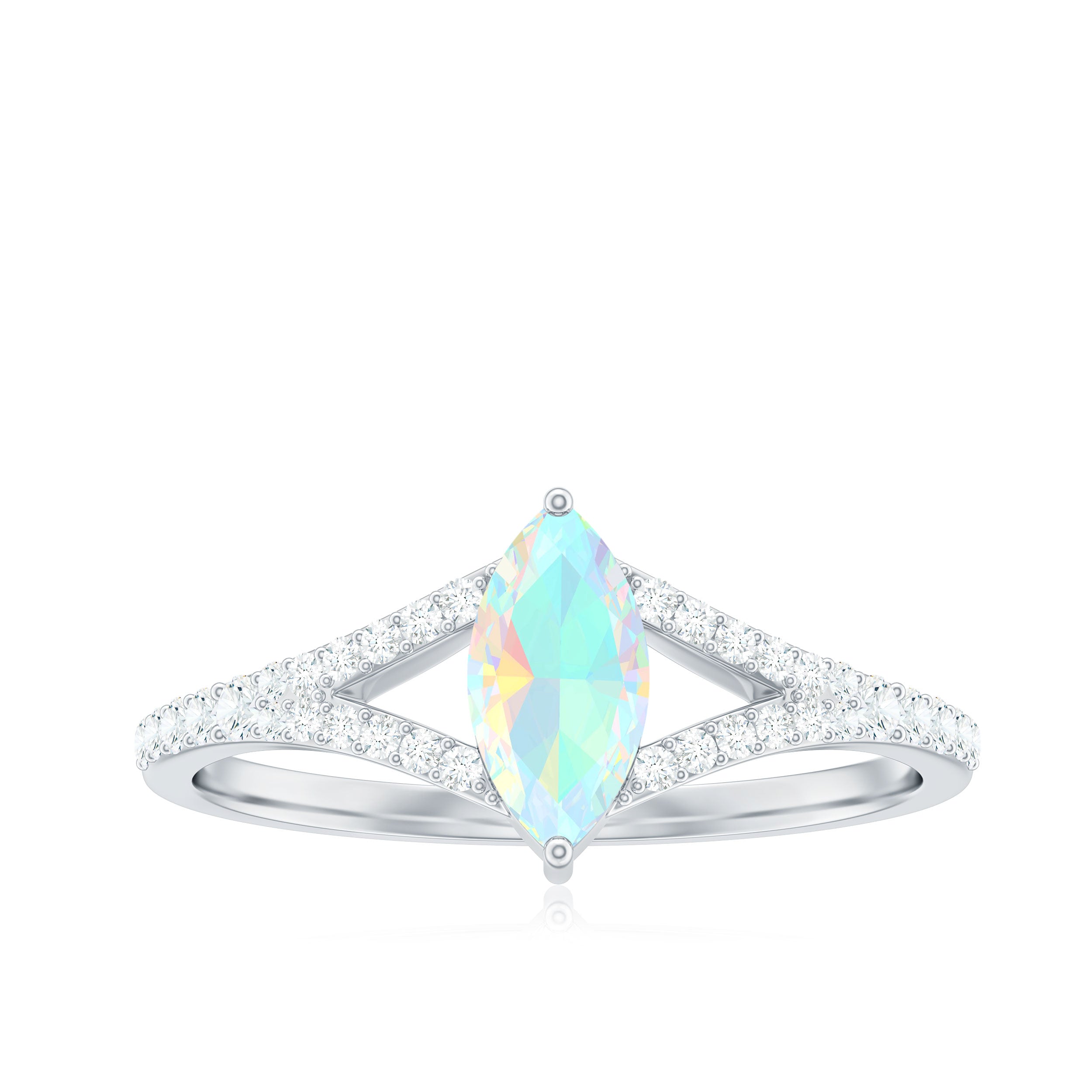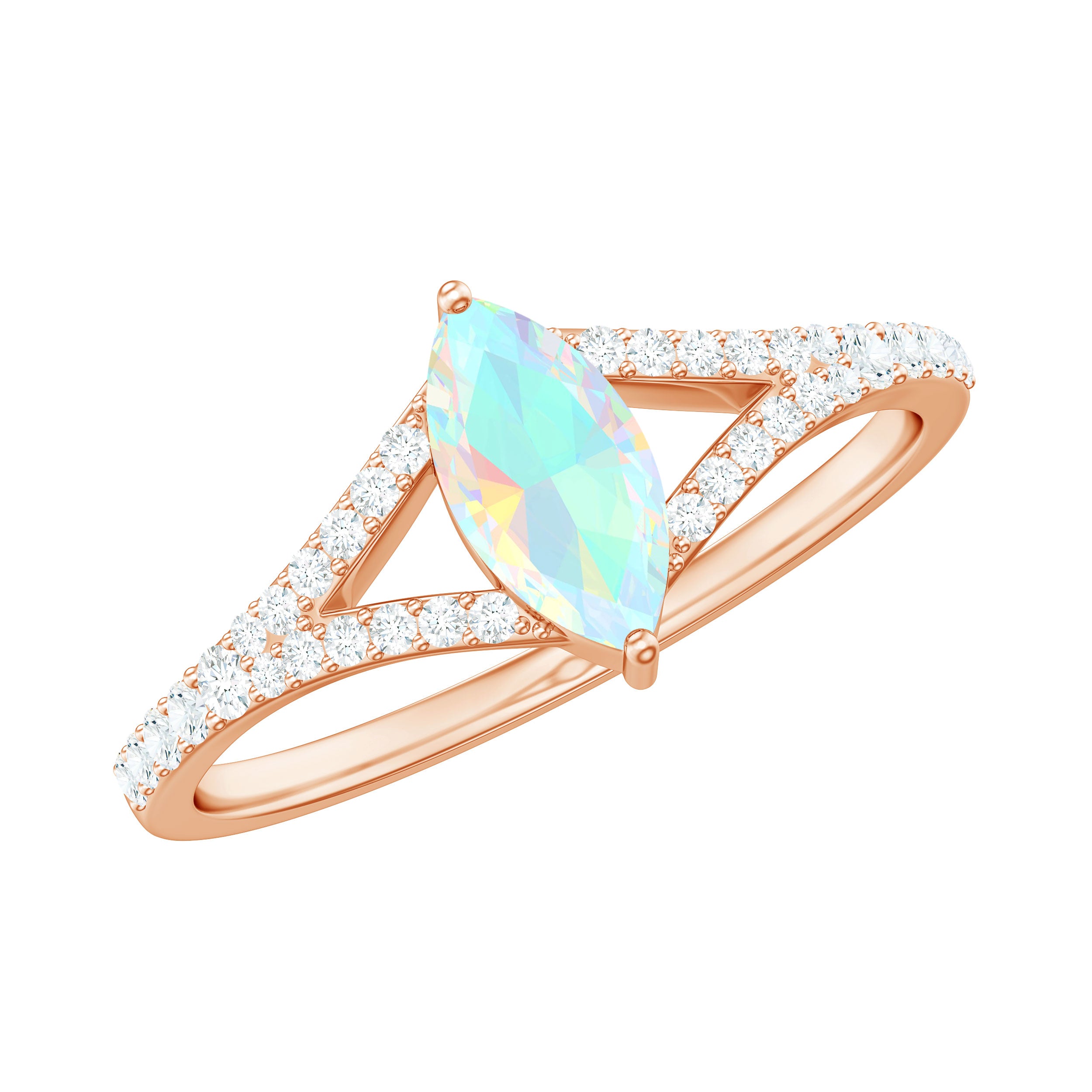 Natural Opal Marquise Engagement Ring with Diamond Split Shank