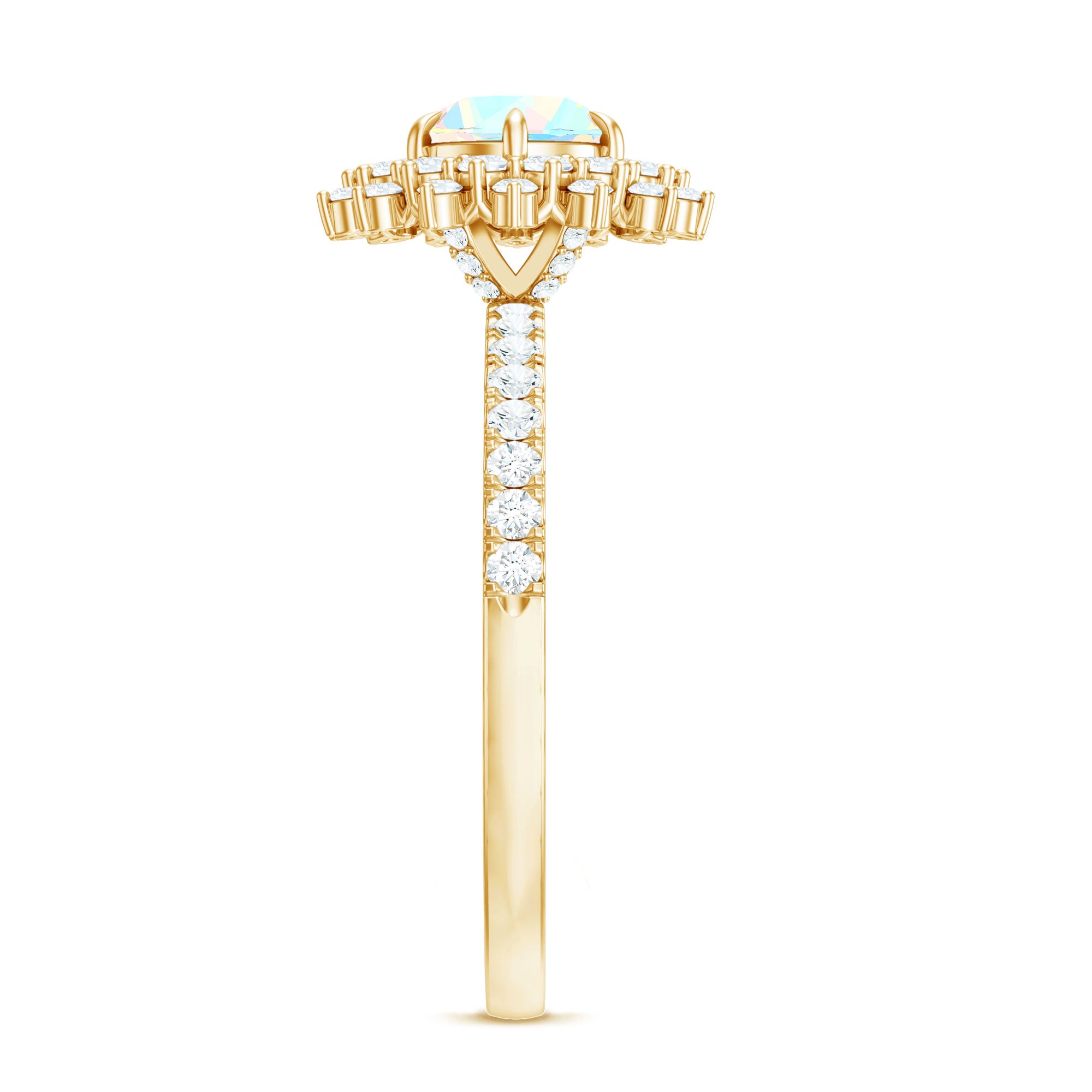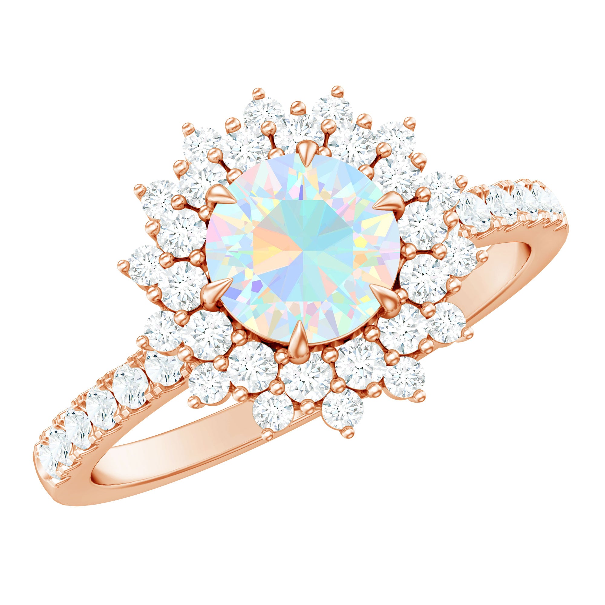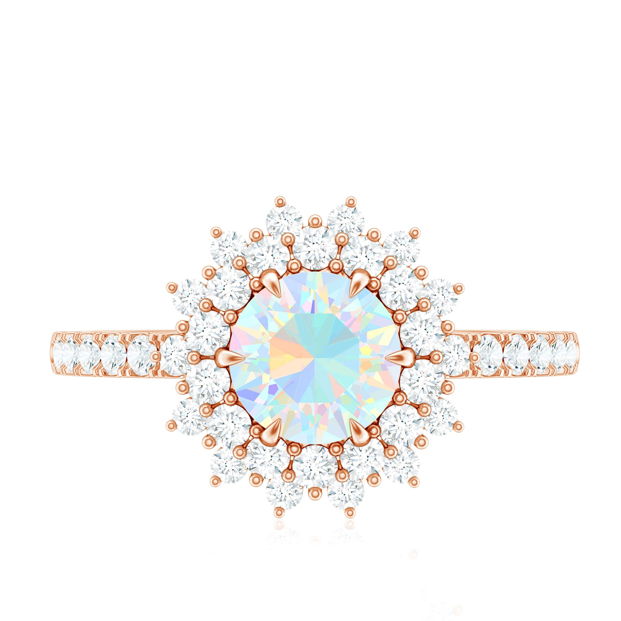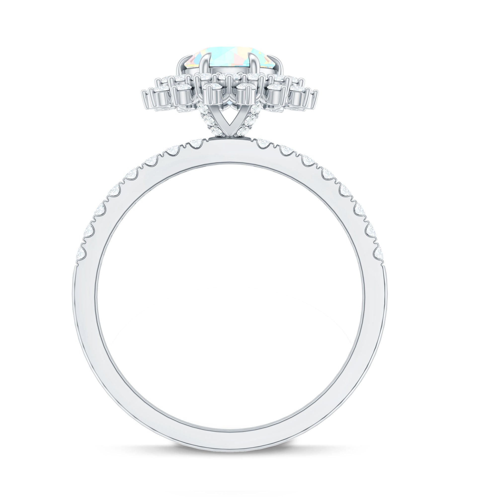 Natural Opalescent Circle Engagement Ring with Double Halo