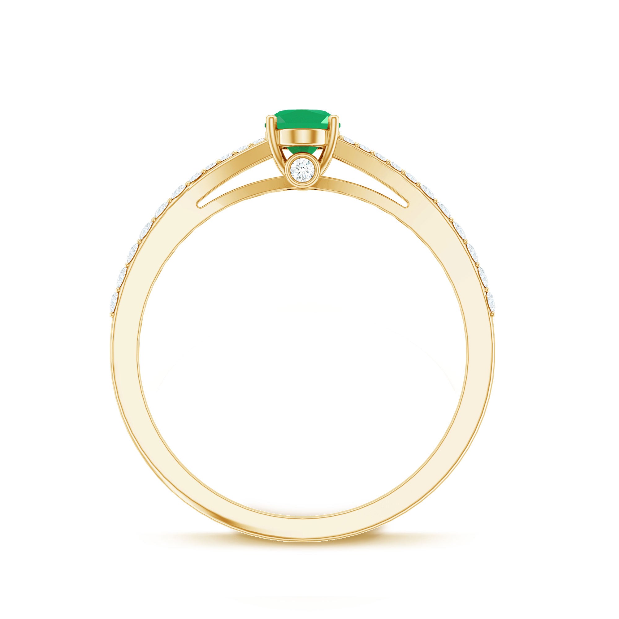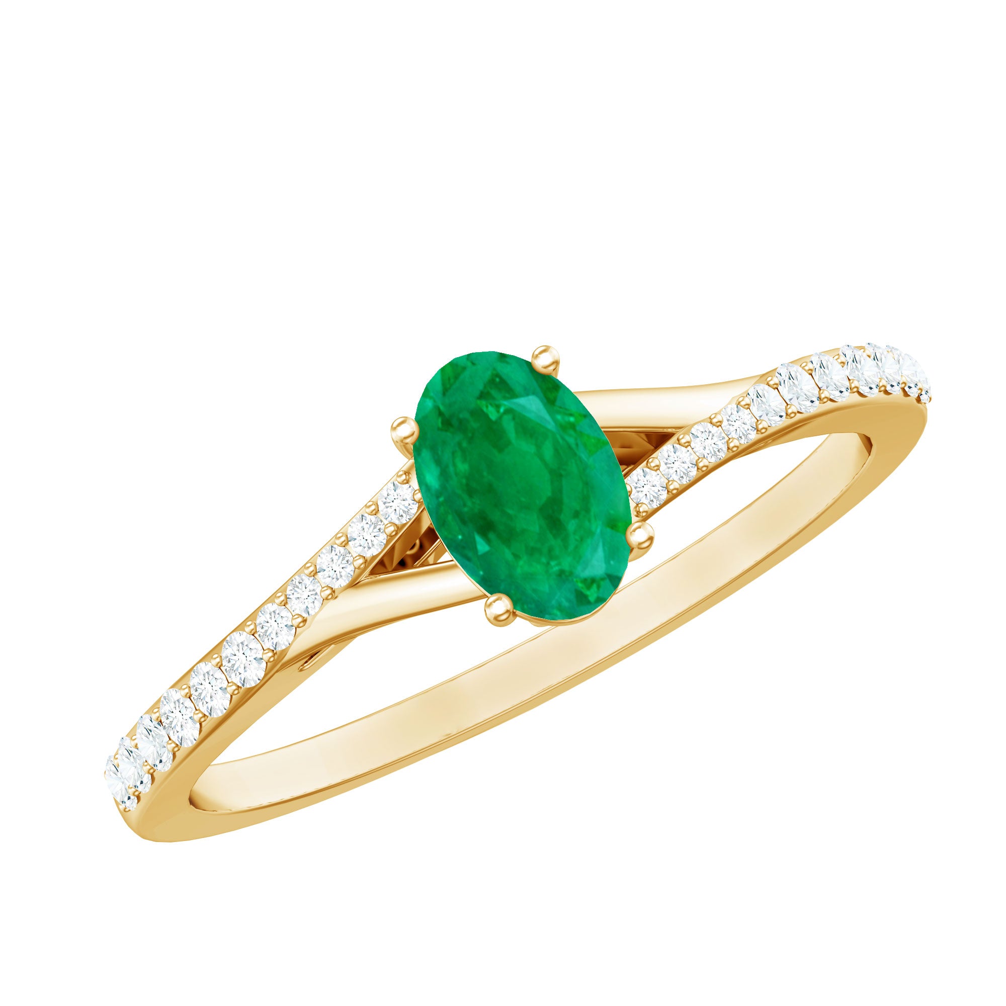 Natural Oval Emerald Promise Ring with Diamond Split Shank