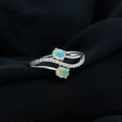 Natural Oval Ethiopian Opal Diamond Toi Et Moi Engagement Ring with Bypass Shank