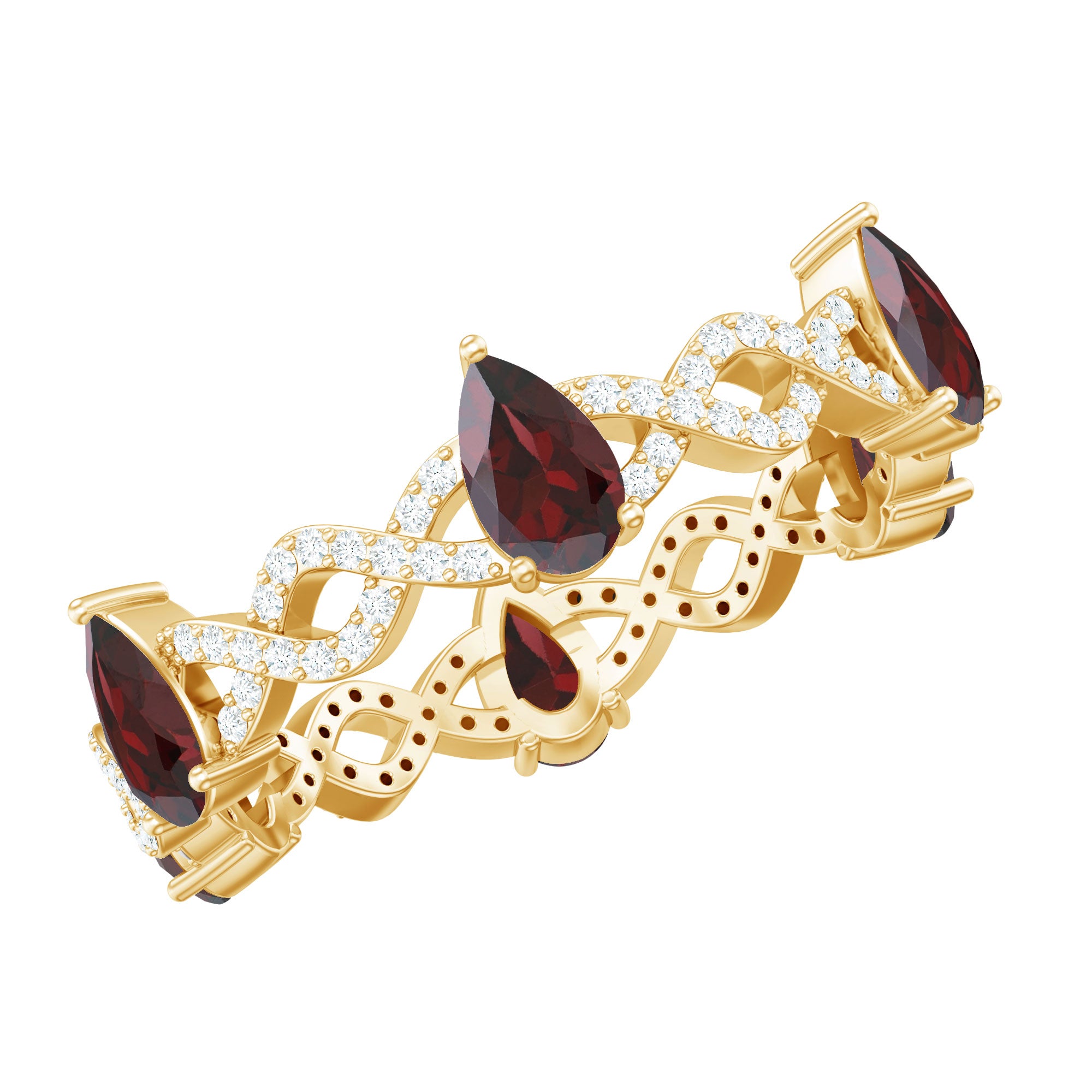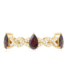 Natural Pear Shape Garnet Diamond Eternity Ring with Crossover Shank